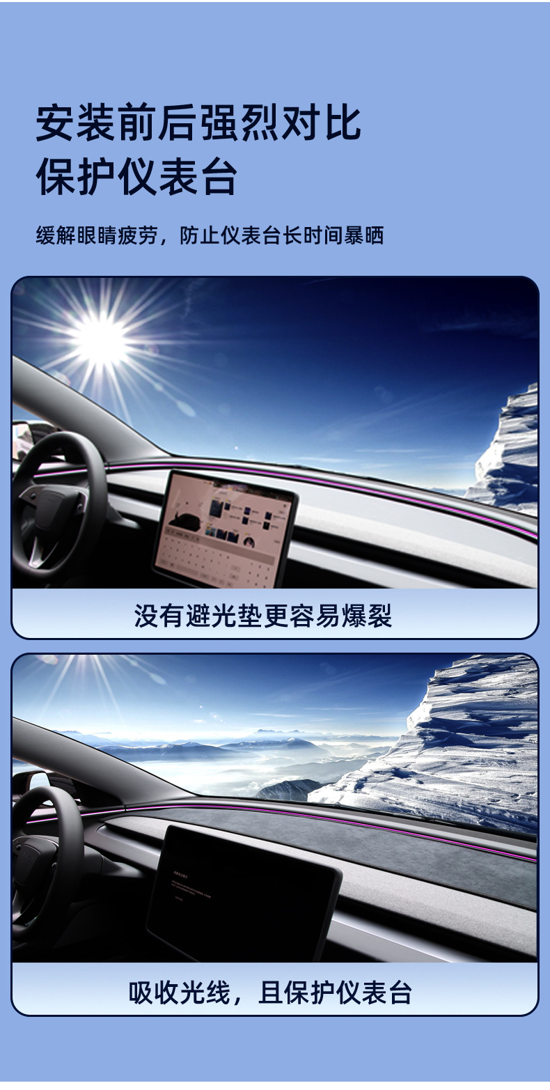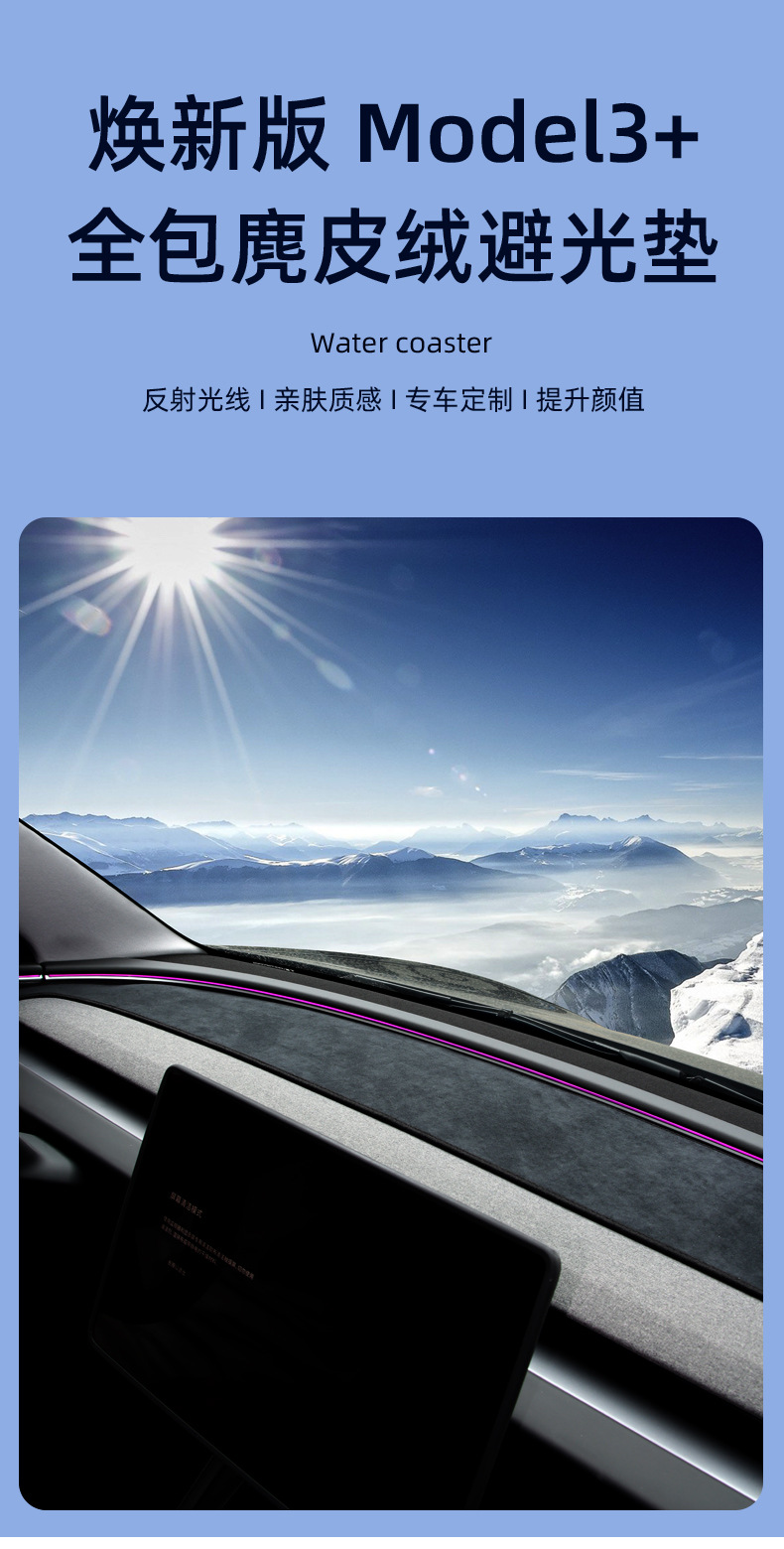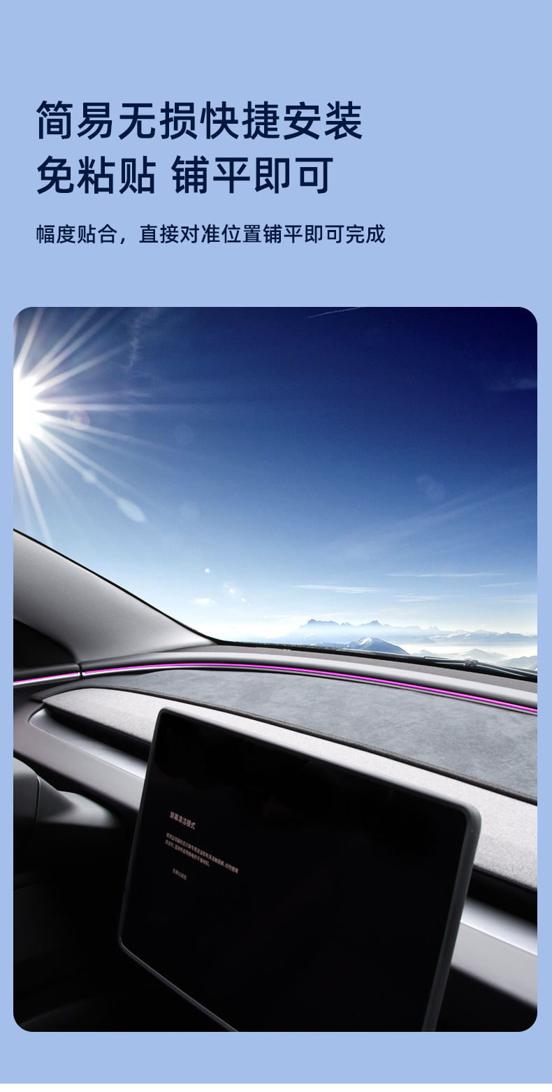 Обновленная версия светонепроницаемого коврика приборной панели Model Y [замша]; Обновленная версия светонепроницаемого коврика приборной панели Model 3 [замша]; Обновленная версия светонепроницаемого коврика заднего стекла Model 3 [замша]
