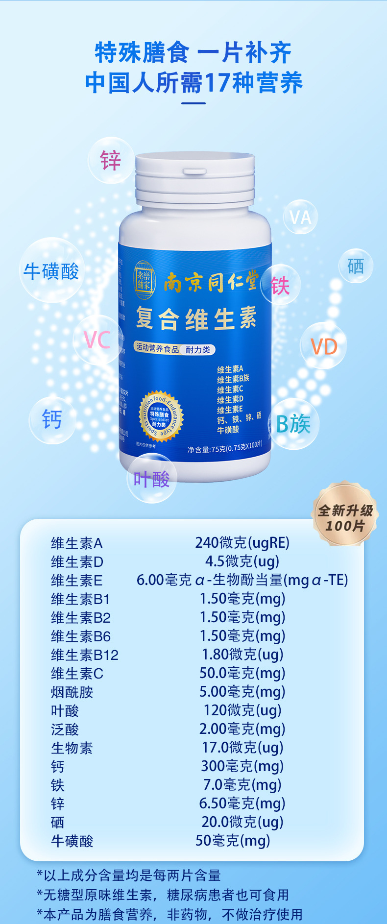 Нанкин Tongrentang соединение Поливитамины B витамин C витамин A b2b6 никотинамид ве кальция цинка Селена таблетки VD