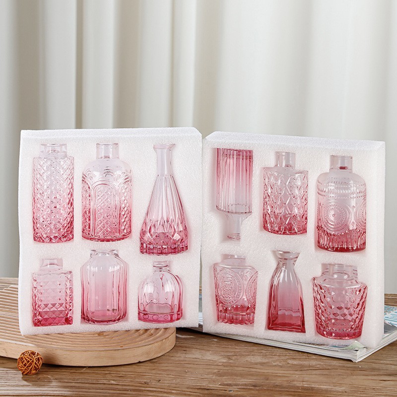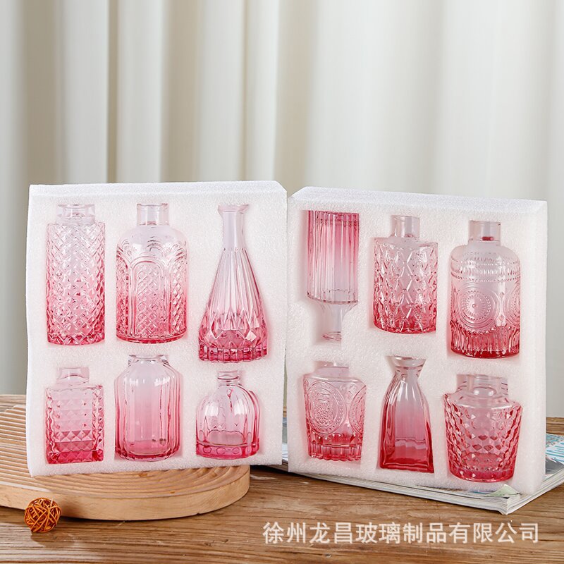 Трансграничный европейский стиль небольшой ваза набор высокого уровня чувственный рельеф цветной домашний салон украшение мини-стеклянная цветочная ваза