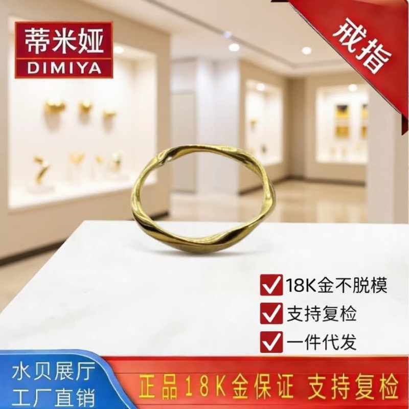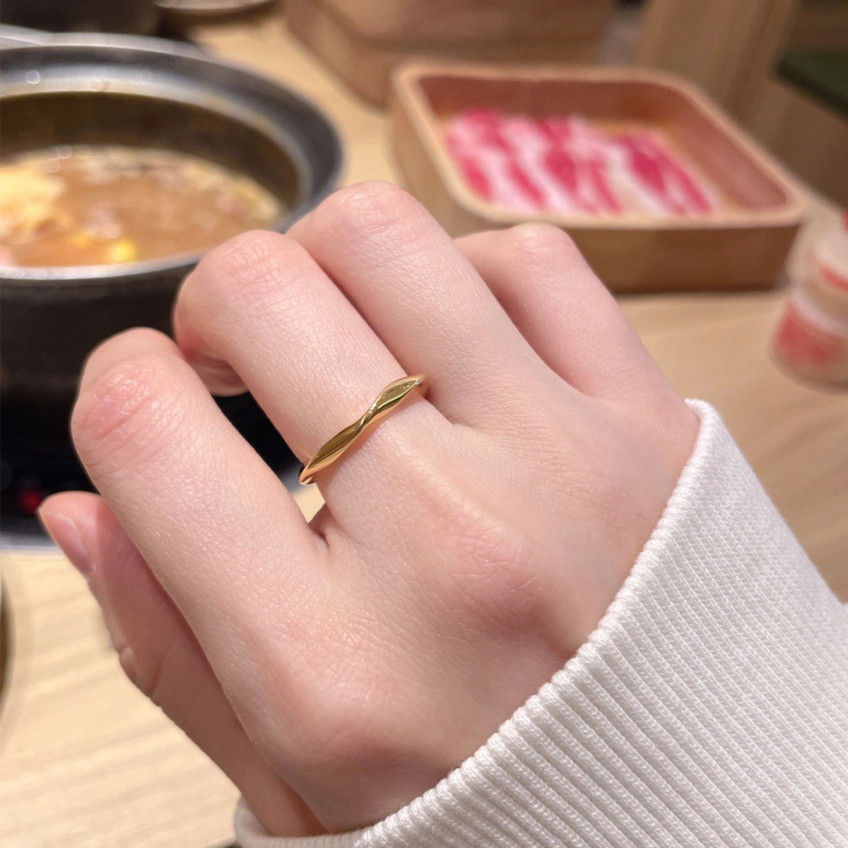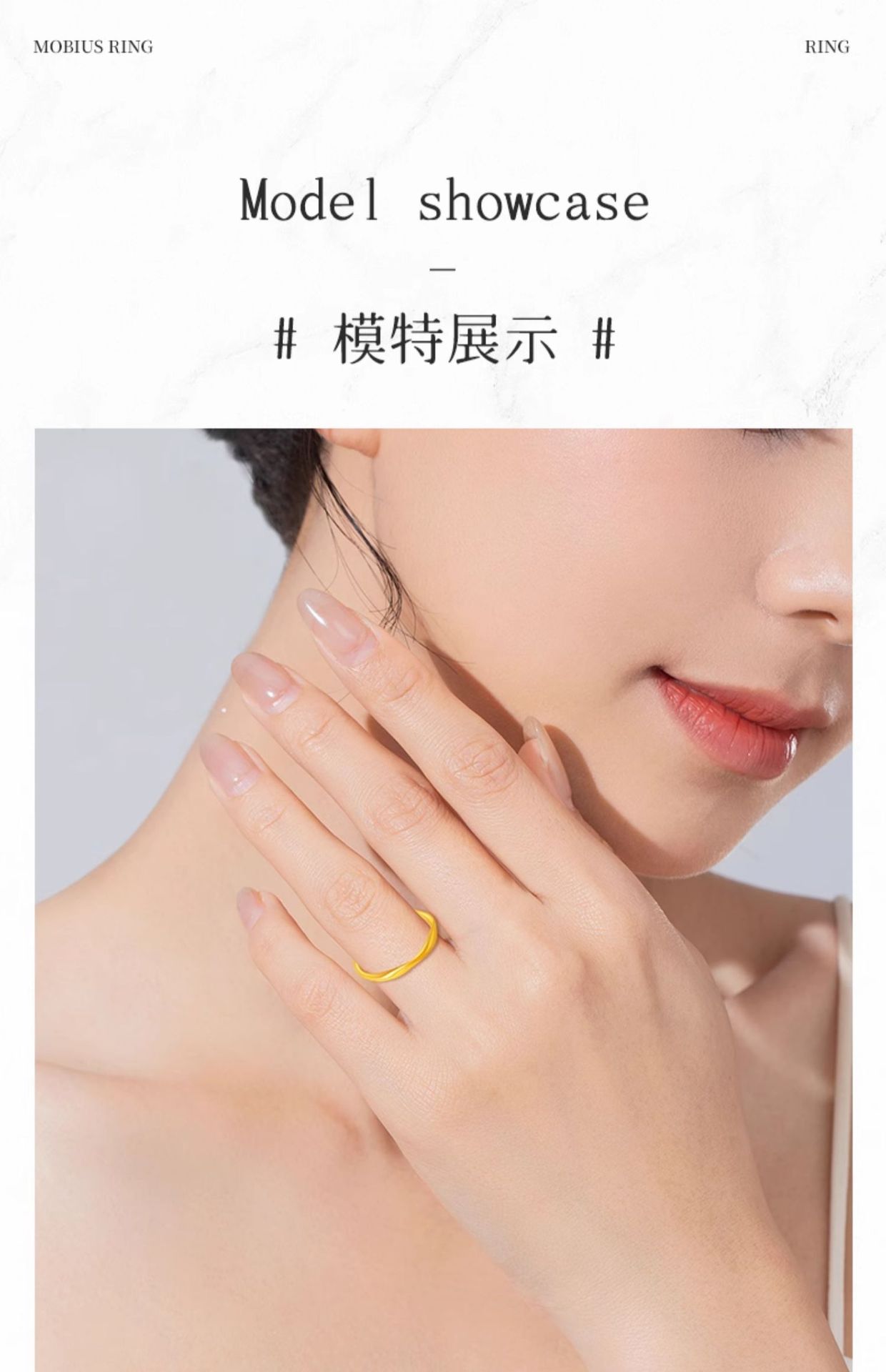 Золотое кольцо Мёбиуса из золота 18 карат (AU750), неразъемное, цельное, парное, простое, с бриллиантом, от Shuibei.