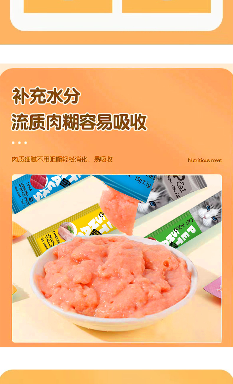 Трансграничные горячие продажи, английские закуски для домашних животных, кошачьи полоски, упаковка мокрого питания, 15 г, полоски для кошек, закуски, питательные полоски, корм для домашних животных, оптовая продажа