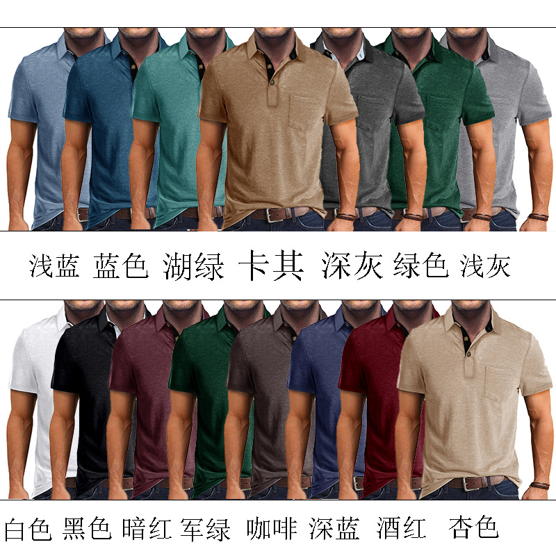 2024 летняя Европейская и американская мужская футболка с короткими рукавами и лацканами, мужская рубашка-поло для внешней торговли, трансграничный топ-поло оптом