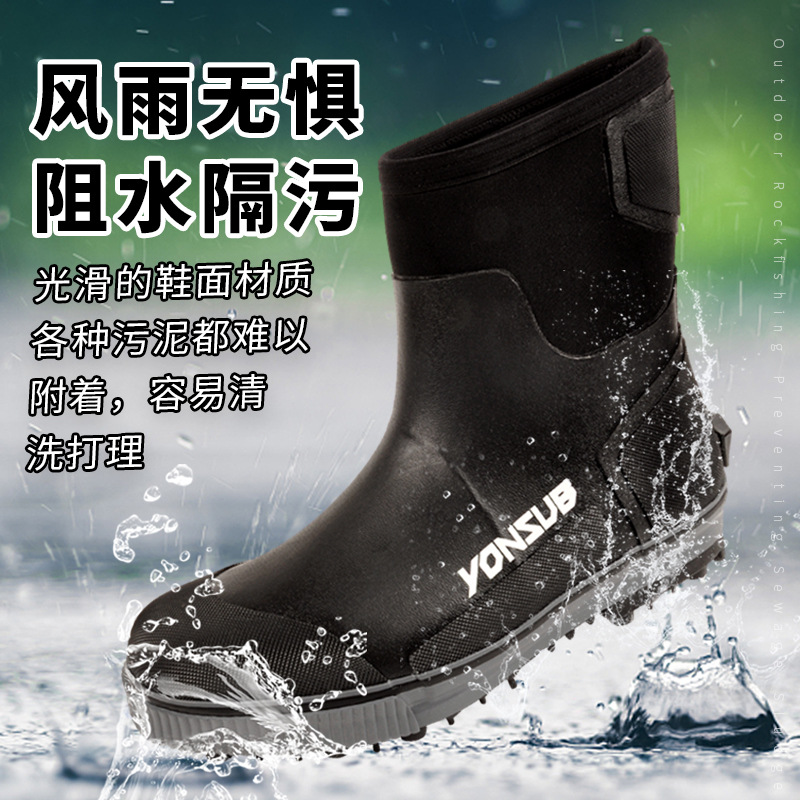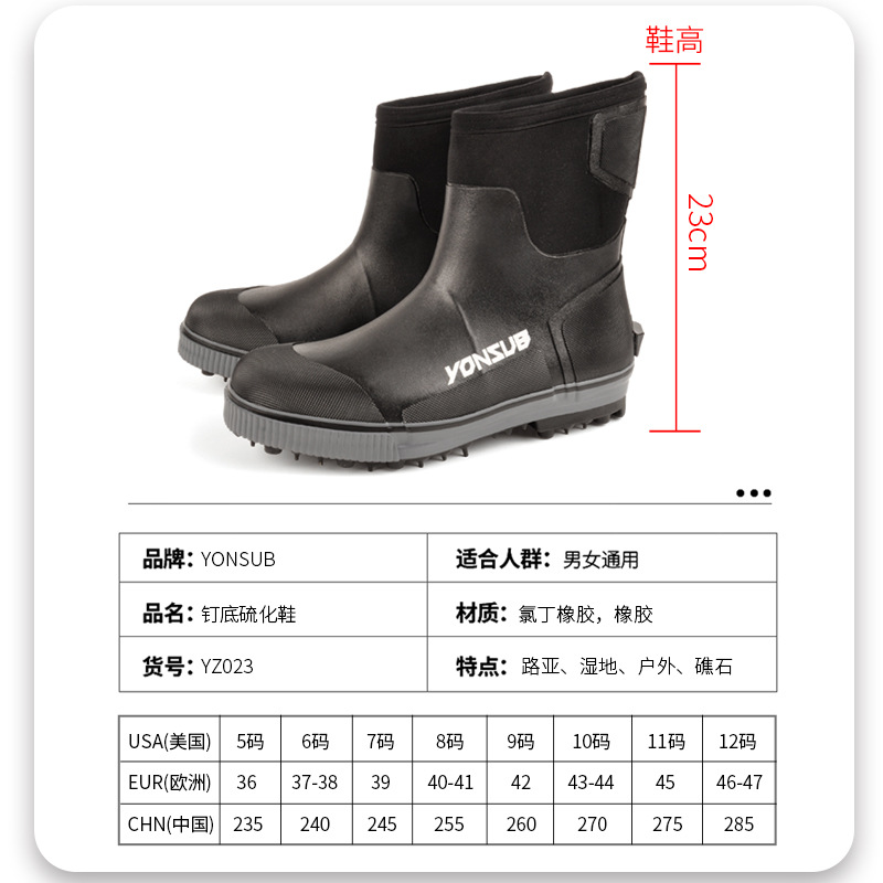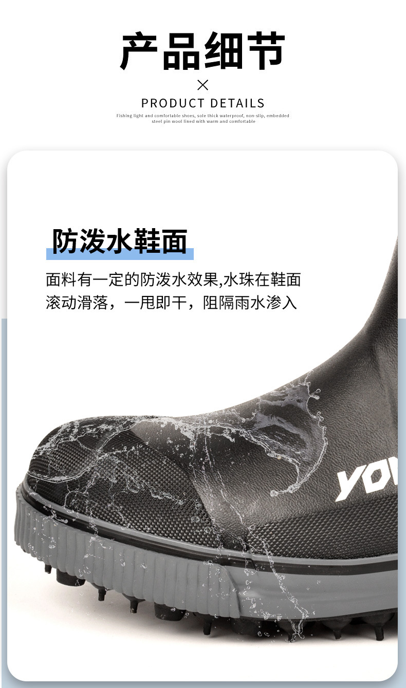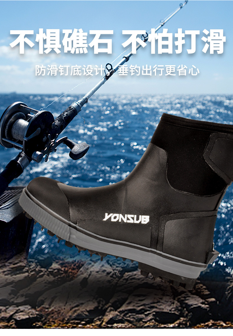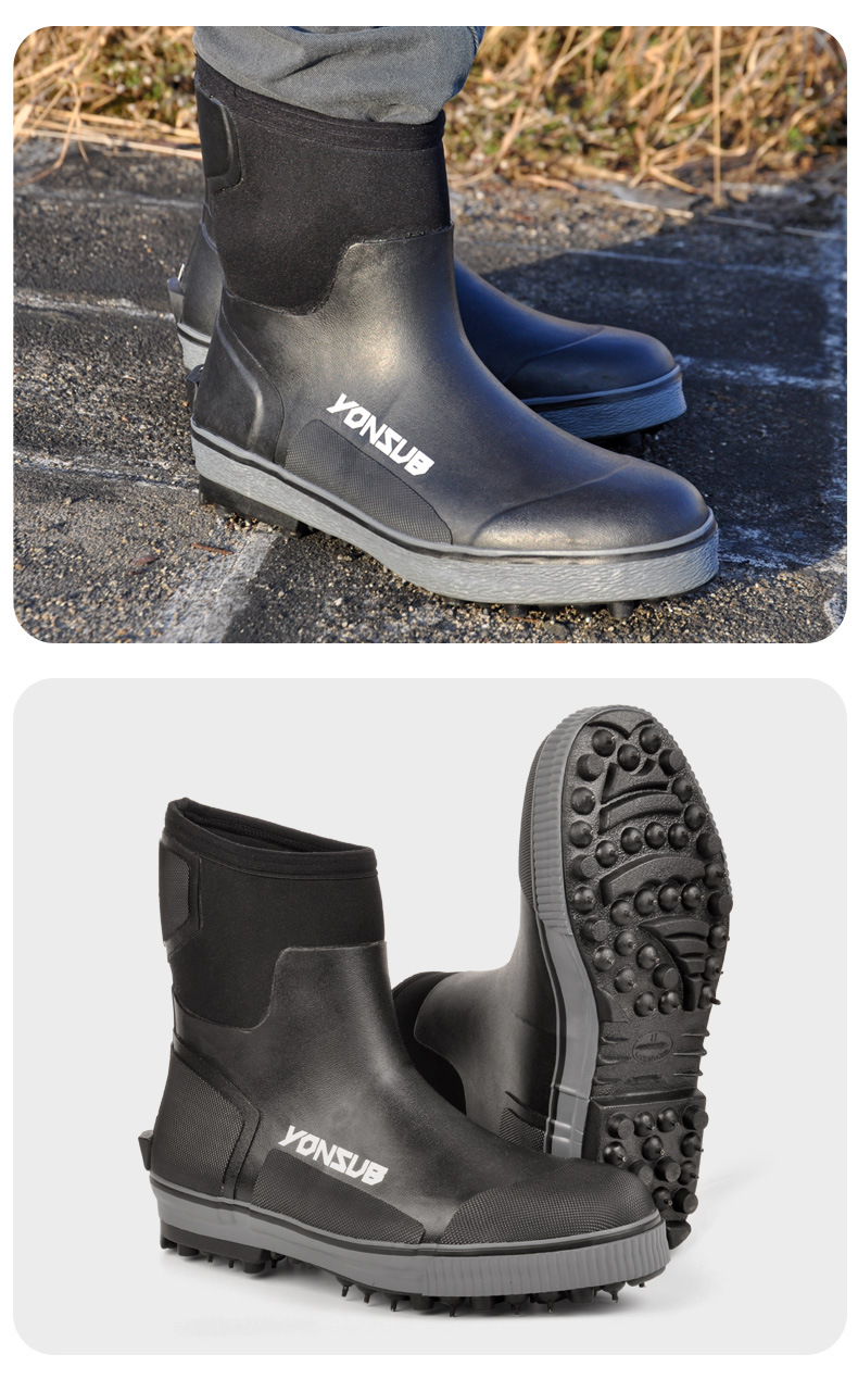 户外海钓鞋溯溪防滑带钢钉冰钓雪地礁石登礁防水野外花园农场靴