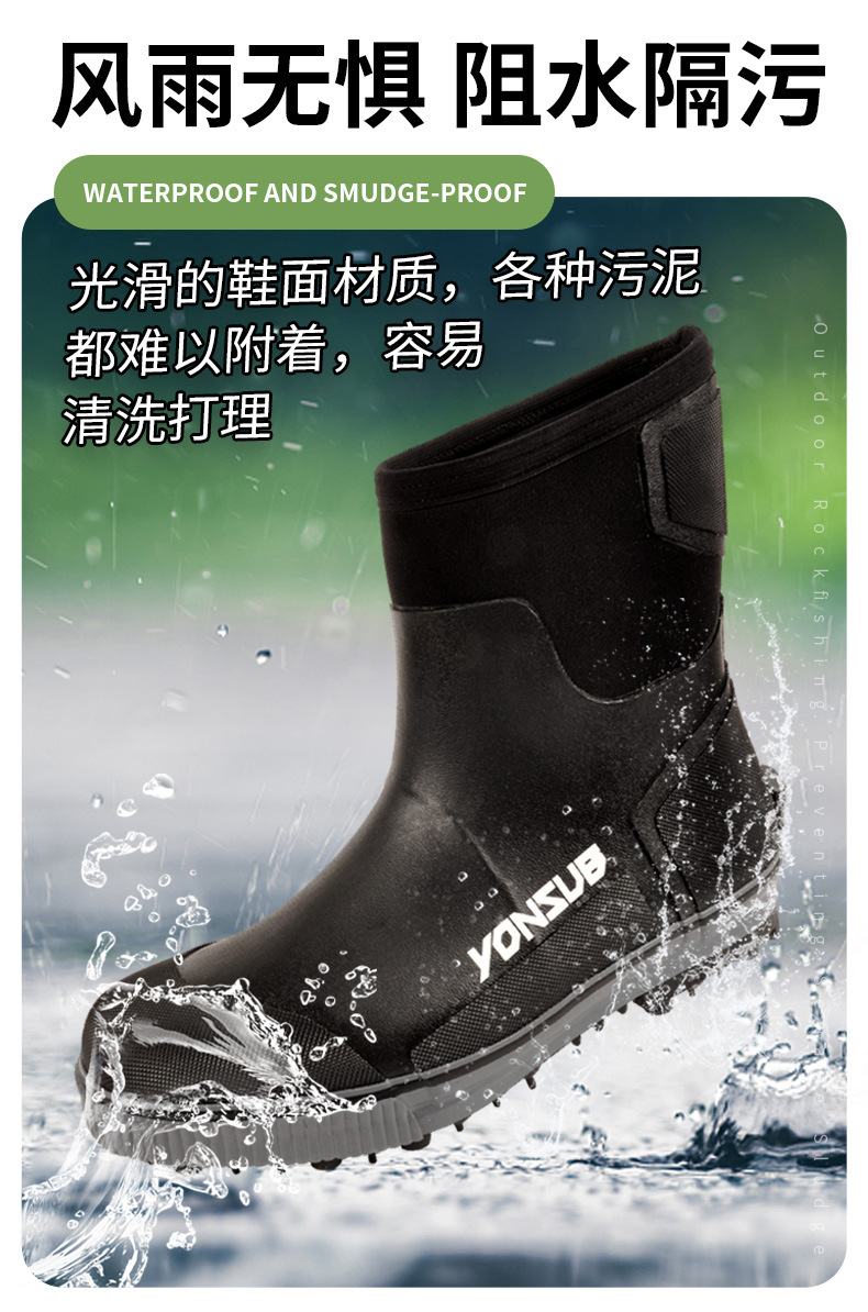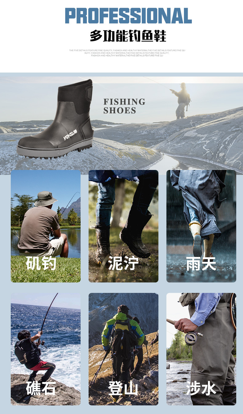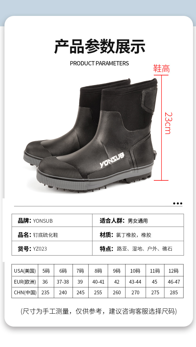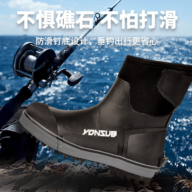 户外海钓鞋溯溪防滑带钢钉冰钓雪地礁石登礁防水野外花园农场靴