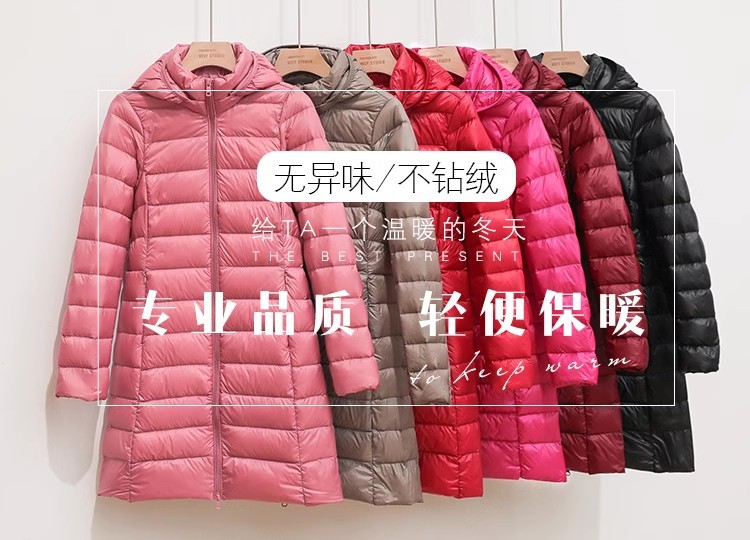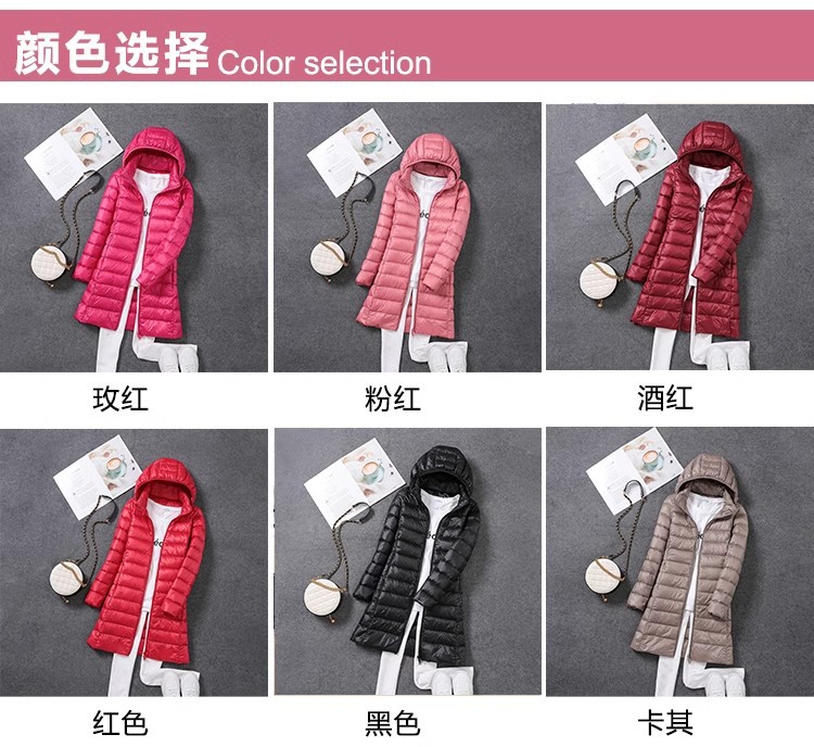 Новый легкий пуховик Cross-border 2024 для женщин, корейская версия белого утиного пуха средней длины, легкое утягивающее пальто со съемным капюшоном.