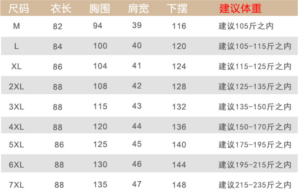 S; M; L; XL; XXL; XXXL; 4XL; 5XL; 6XL; 7XL