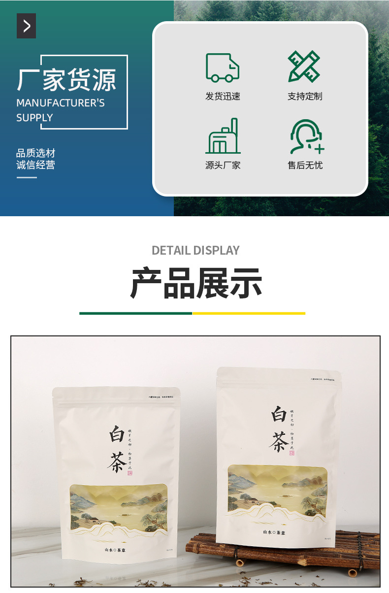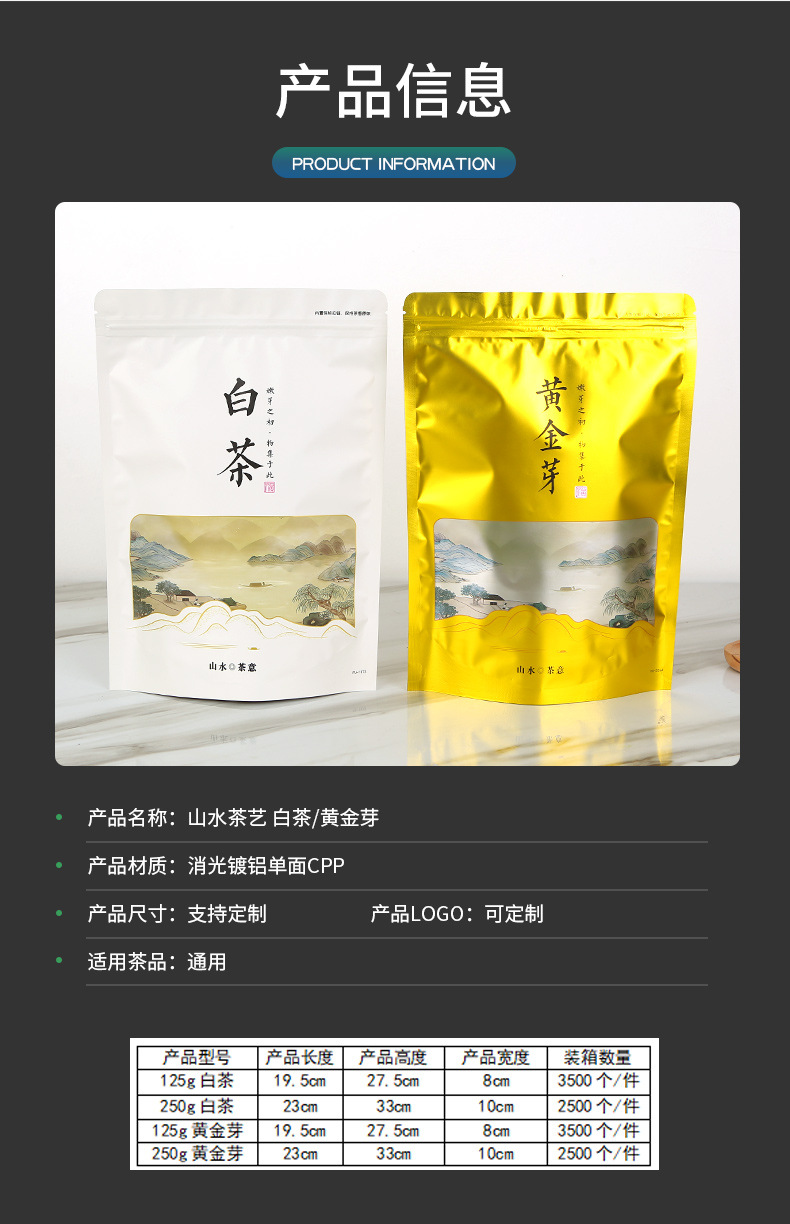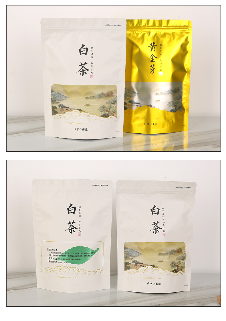 Выбранный Ландшафтный чайный арт White Tea Gold Bud Универсальный упаковочный пакет, заводской в наличии, с прямыми волосами, алюминиевым покрытием, самостоящий герметичный пакет