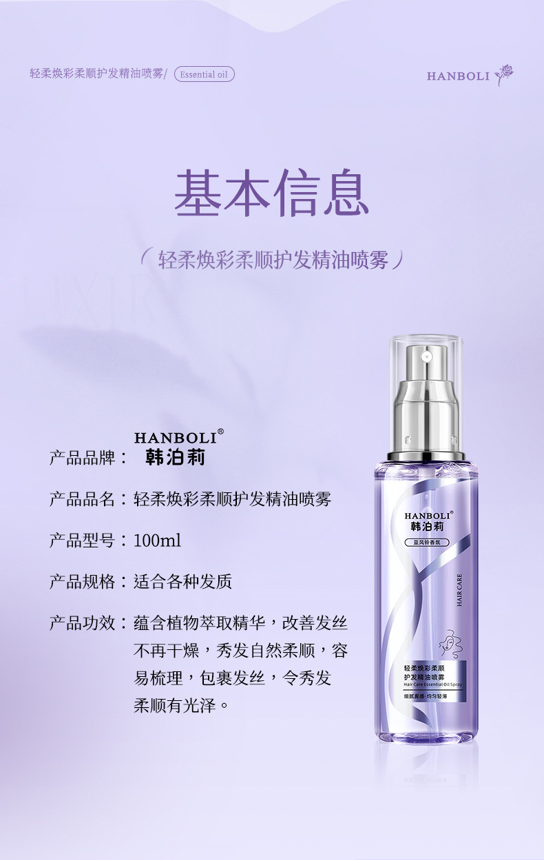 HANBOLI Han Boli синий колокольчик спрей с эфирным маслом для улучшения сухости и завивания один спрей мягкий антистатический спрей