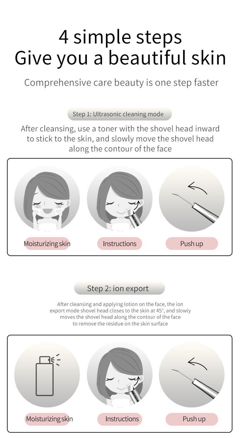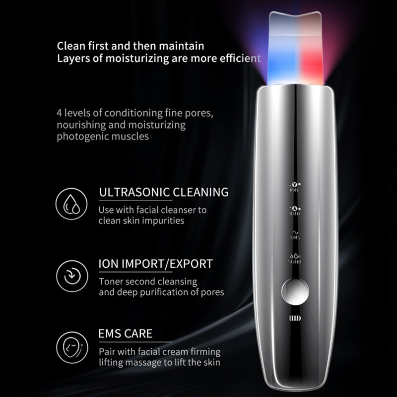 Ультразвуковой микротоковый прибор для лифтинга и очищения кожи, электрический очиститель пор от черных точек, LED-удалитель омертвевшей кожи.