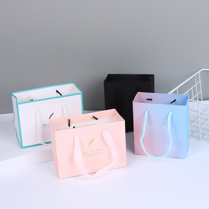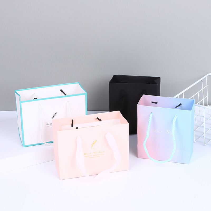 Подарочный бумажный пакет для сумок, подарочный пакет для упаковки одежды, однотонный градиентный праздничный подарочный пакет, сумка-компаньон из воловьей кожи