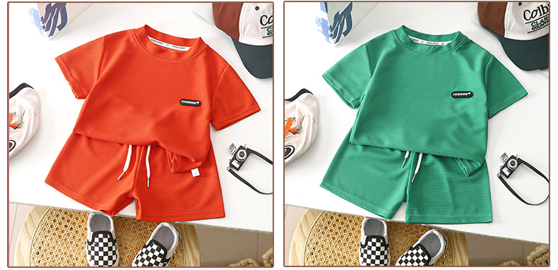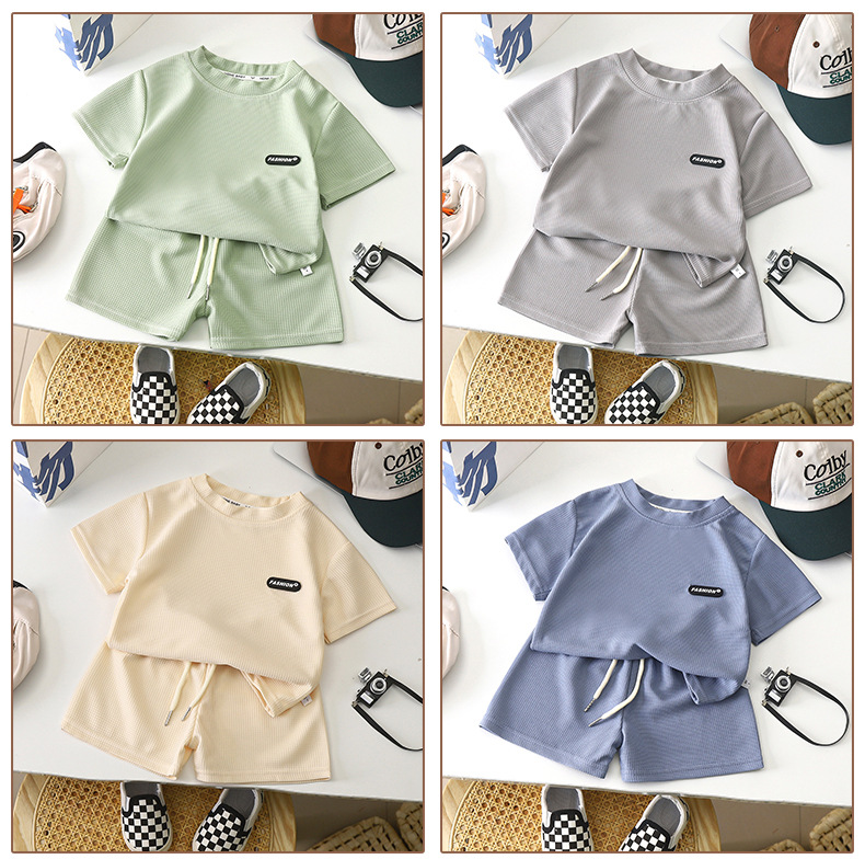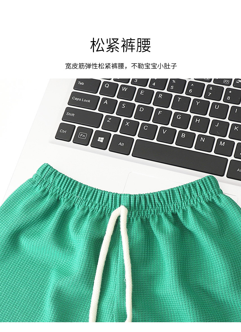 Новая детская одежда, летний детский повседневный костюм, свободная одежда для мальчиков, вафельный детский летний костюм с короткими рукавами, оптом