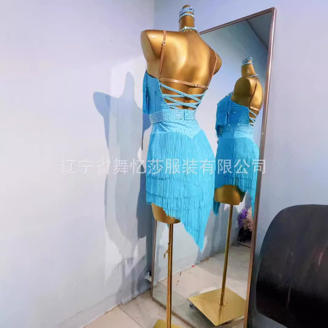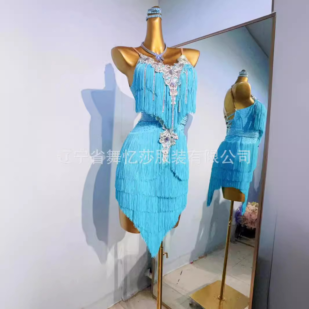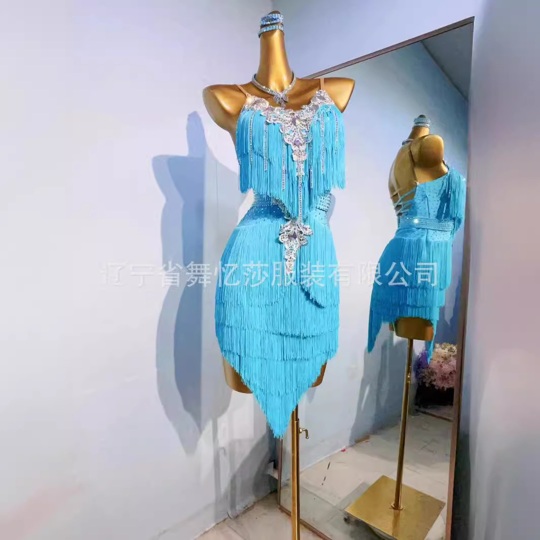 Юбка с кисточками и блестками с глубоким V-образным вырезом, юбка для латинских танцев, одежда для танцевальных соревнований, одежда для взрослых, одежда для латинских выступлений, одежда для групповых выступлений на сцене