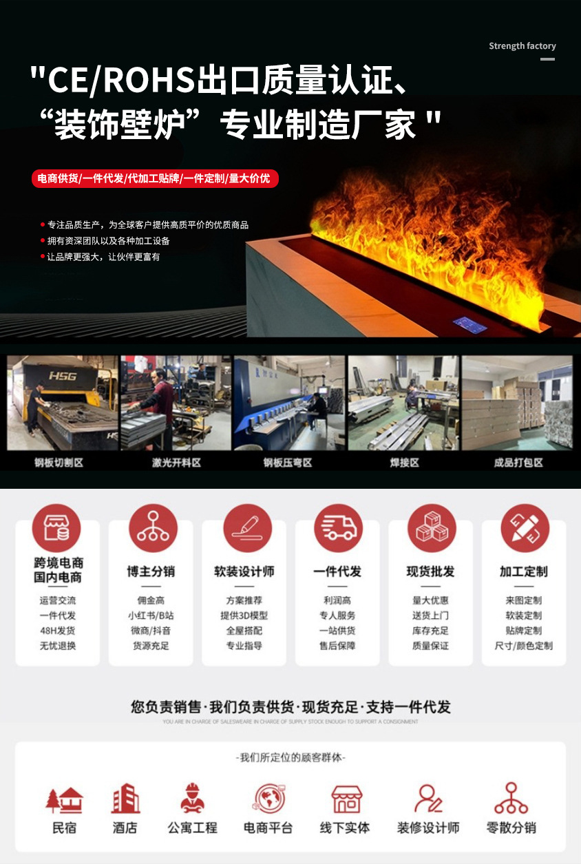 Европейские и американские эксклюзивные поставки нержавеющих атомизирующих каминов для гостевых домов и вилл, со встроенным имитированным пламенем и 4D-атомизацией.