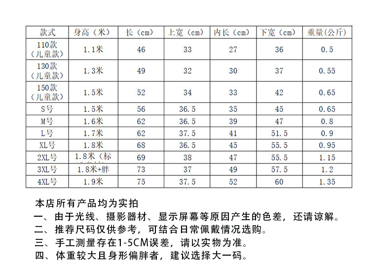 110 стилей [подходит для детей ростом 1.1m см]; 130 стилей [подходит для детей ростом 1.3m метра]; 150 стилей [подходит для детей ростом 1.5m]]; S [Подходит для взрослых ростом 1.5m см]; M【Подходит для взрослых ростом 1.6m】; L【Подходит для взрослых ростом 1.7m】; XL [подходит для взрослого роста 1.8m см]; Размер 2XL [подходит для взрослых со стандартным ростом 1,8]; Размер 3XL [Подходит для взрослых ростом от 1.8m лет и выше]; Размер 4XL [подходит для роста 1.9m взрослых]