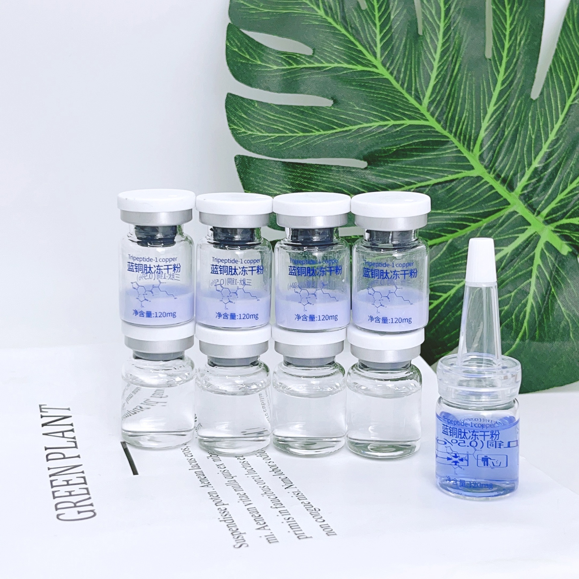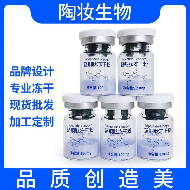 0,5% содержание в 5 мл лиофилизированном порошке из голубого медного пептида эффективно улучшает чувствительность кожи, и этот тип лиофилизированного порошка используется в косметических салонах.