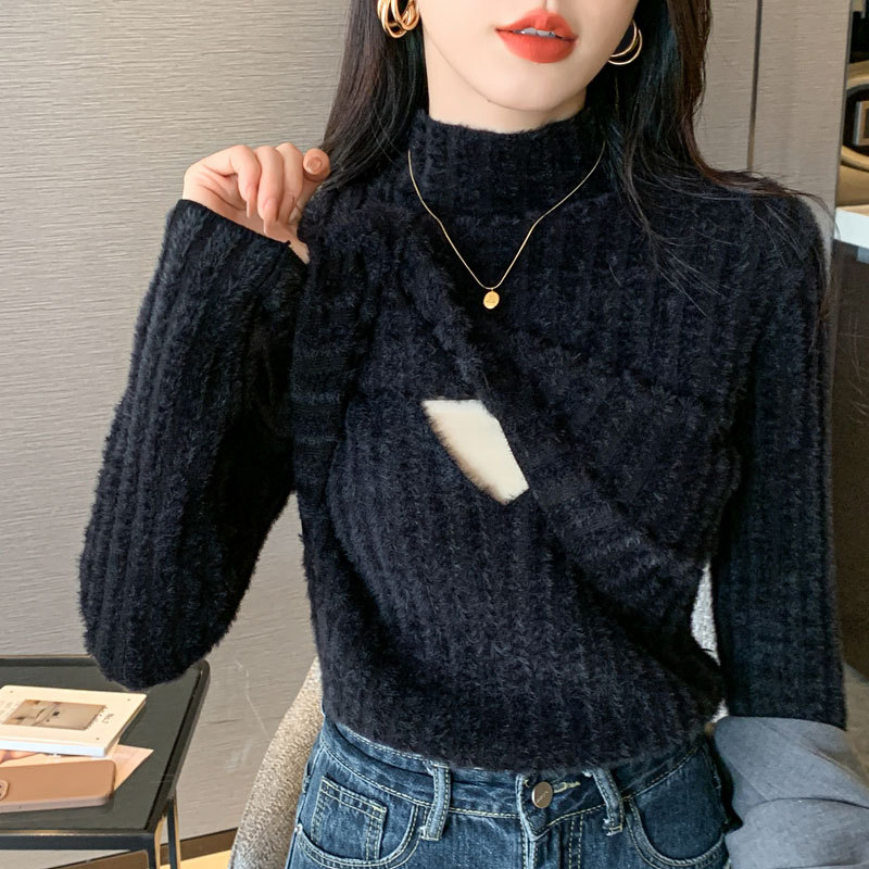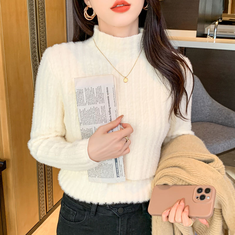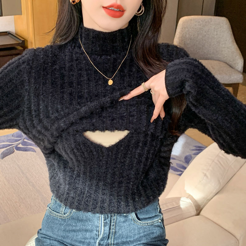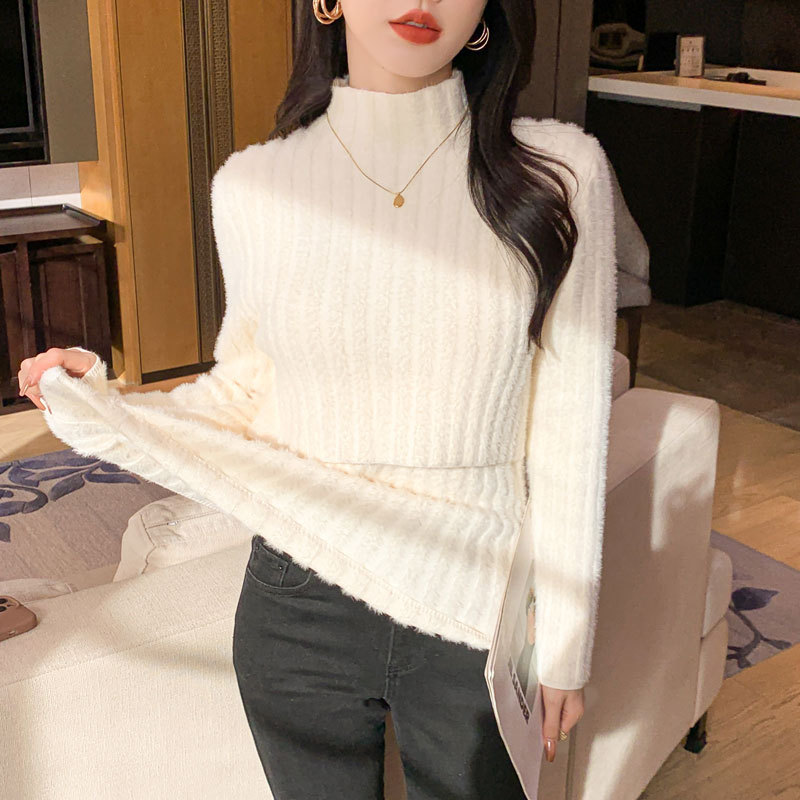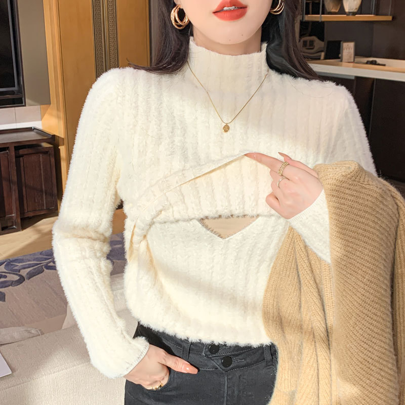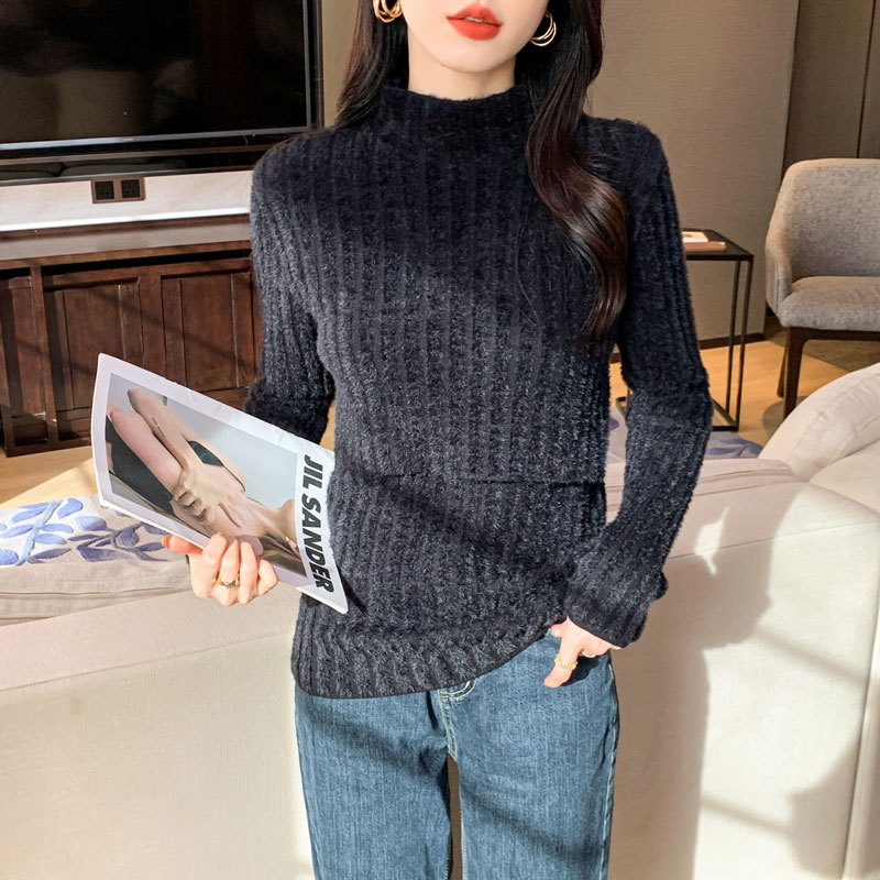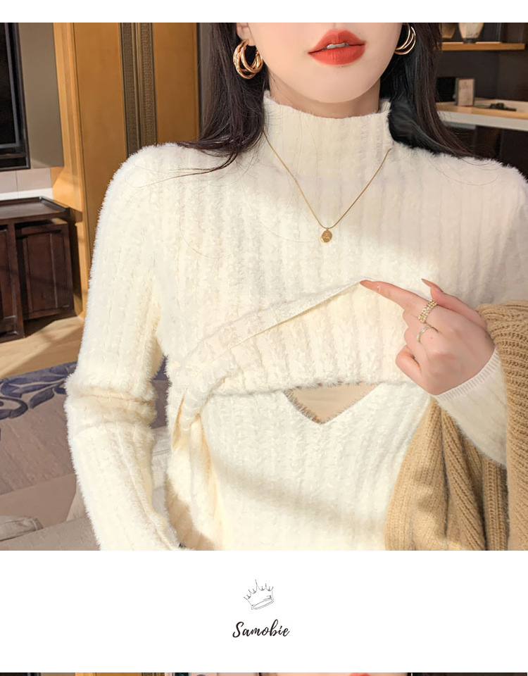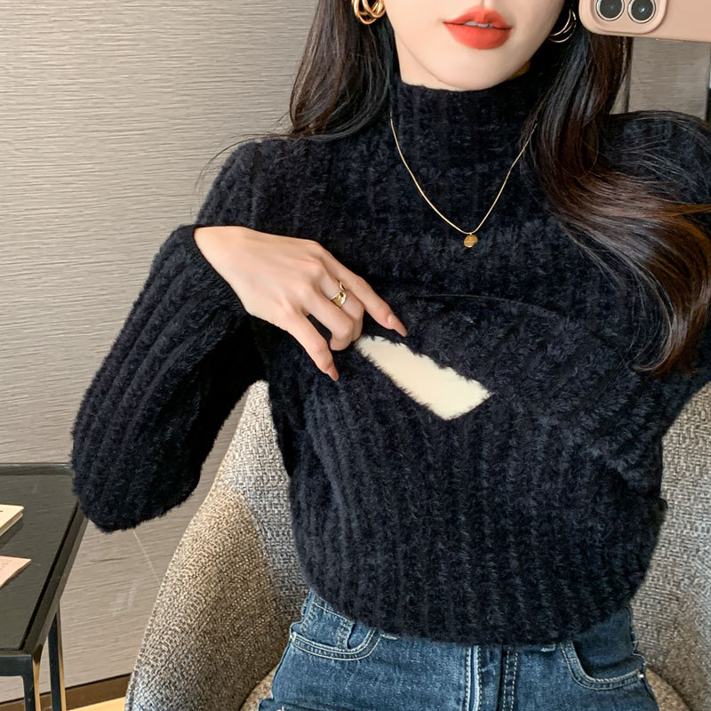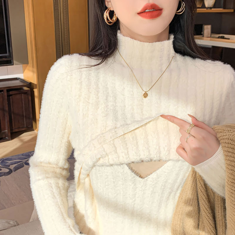 Настоящий снимок в наличии Осенне-зимний утолщенный свитер для кормления на флисовой подкладке, послеродовой уход, теплая водолазка, нижняя одежда для кормления