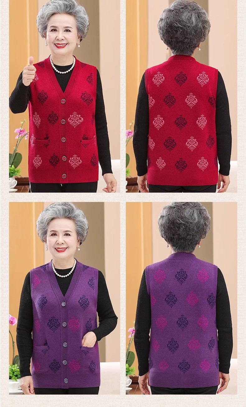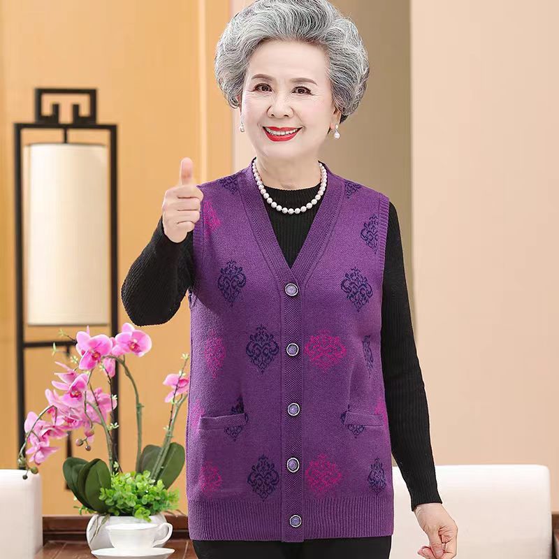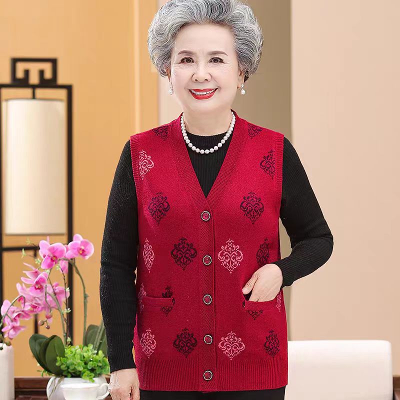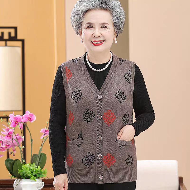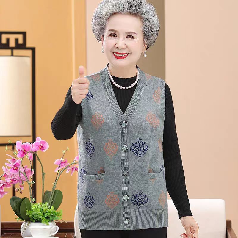 Старинный Женский Осенний вязаный жилет, бабушкиное пальто с V-образным вырезом, 7080-летний маминый жилет, жилет