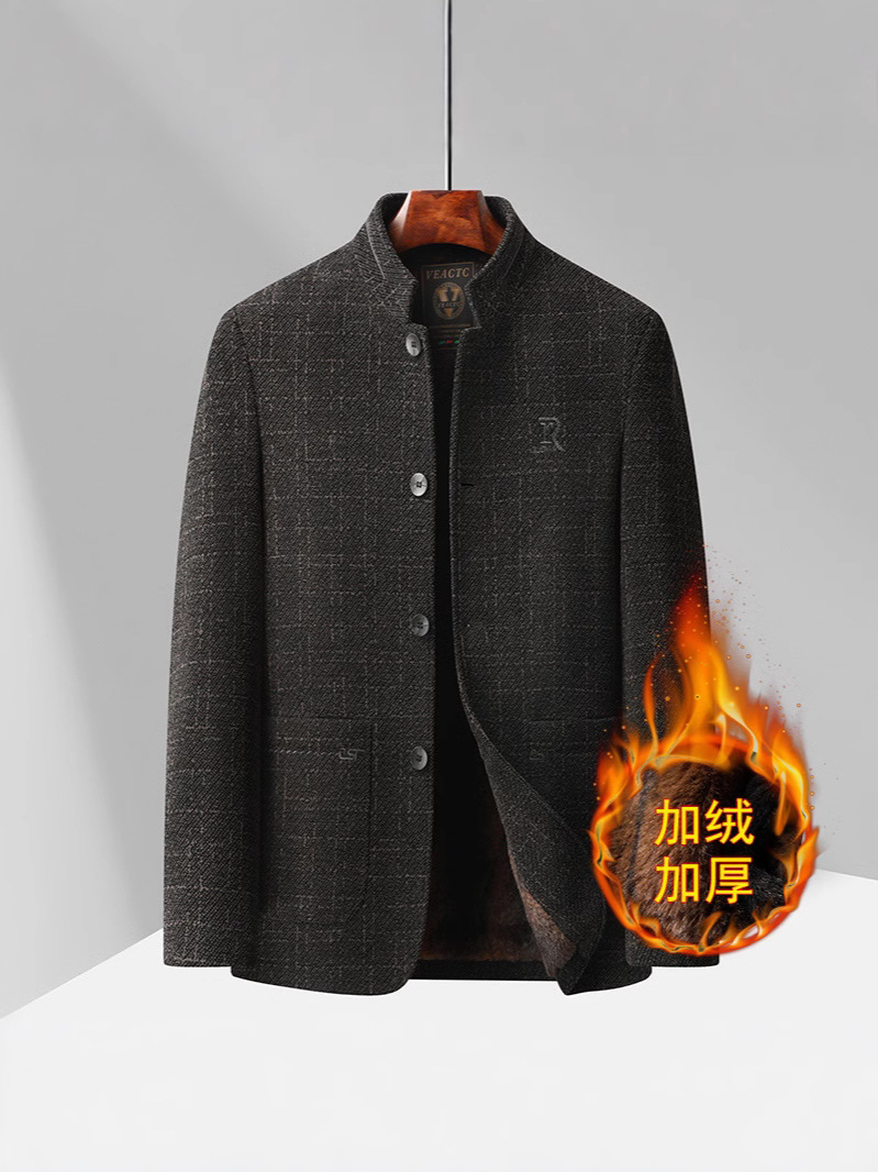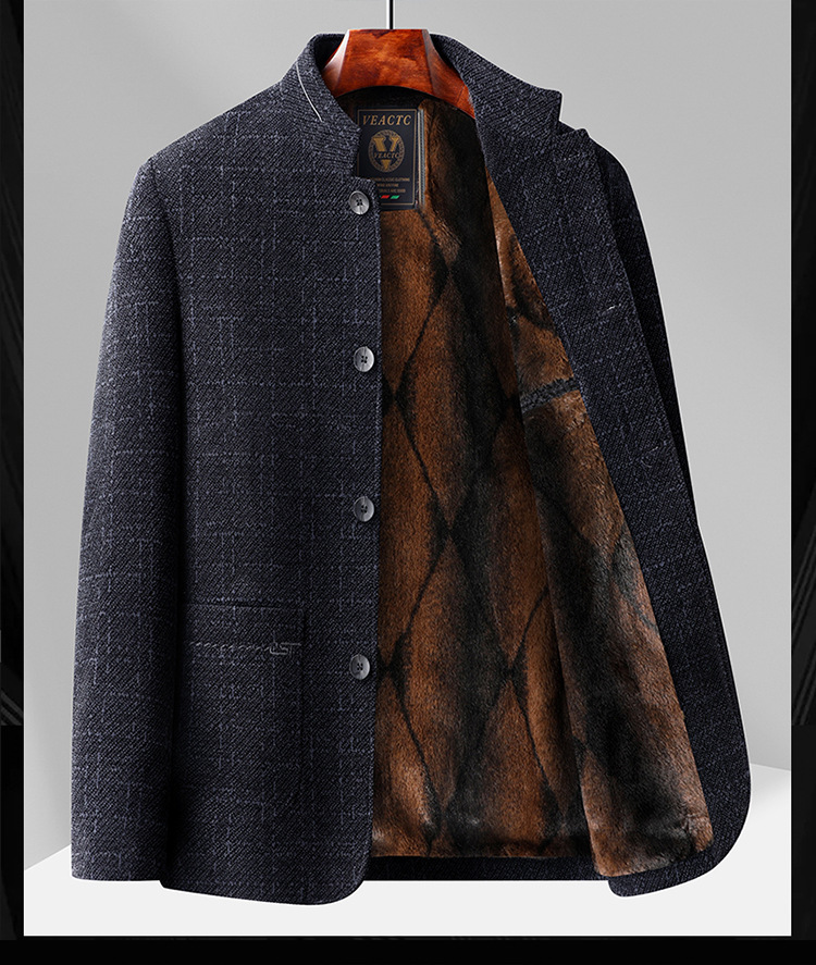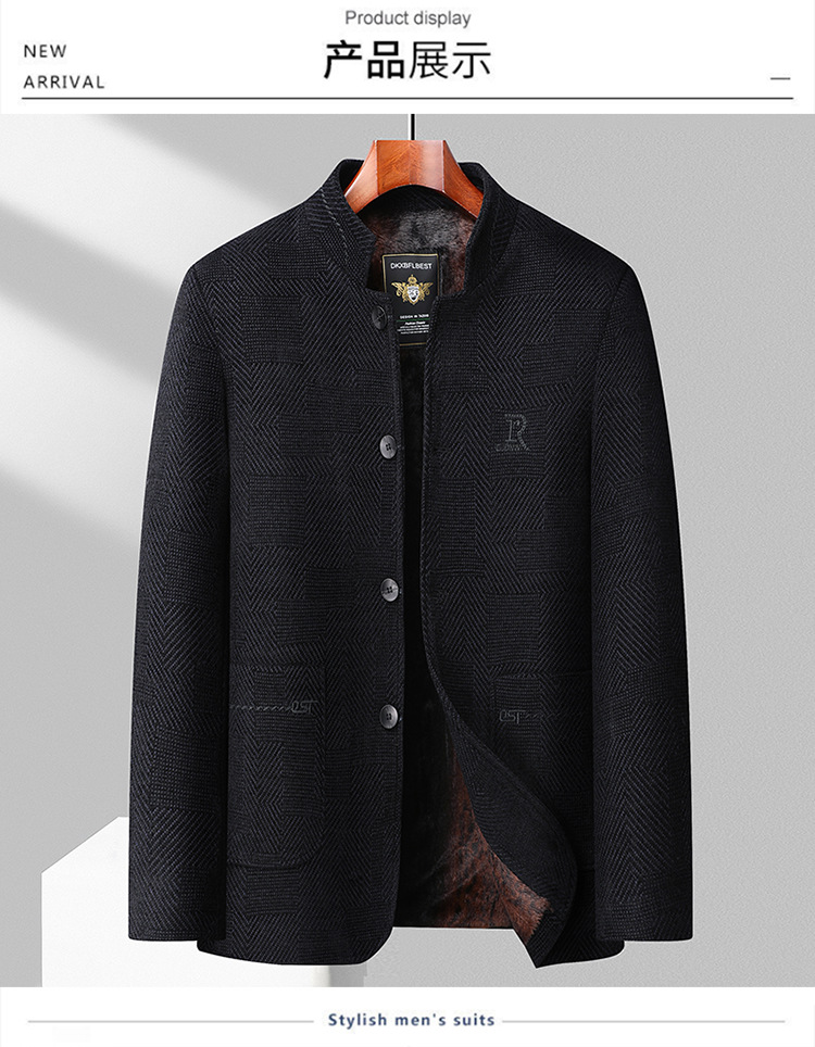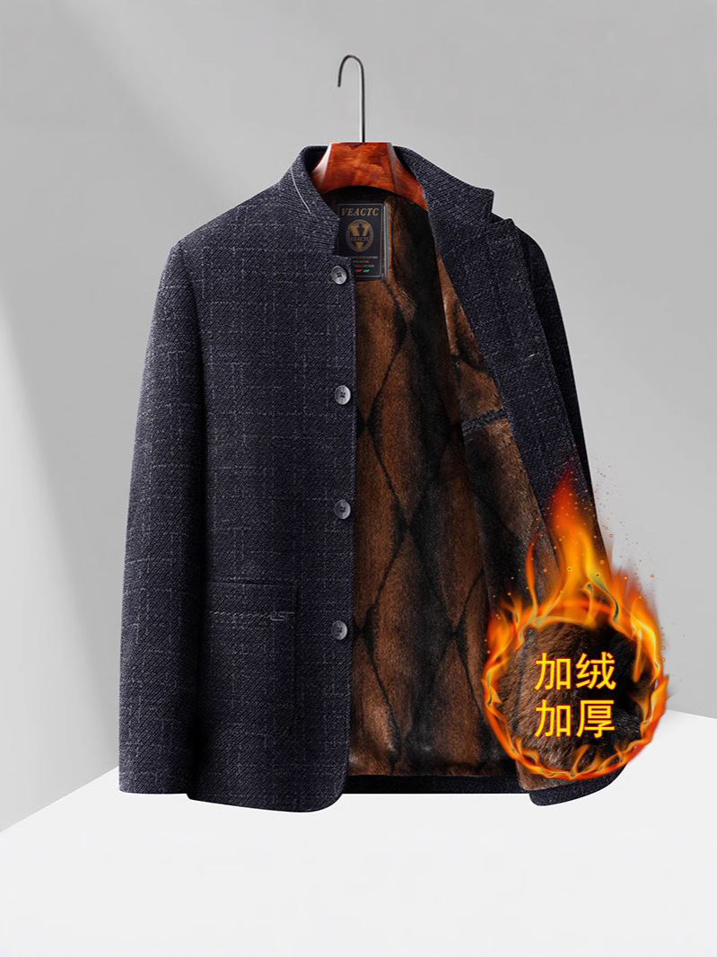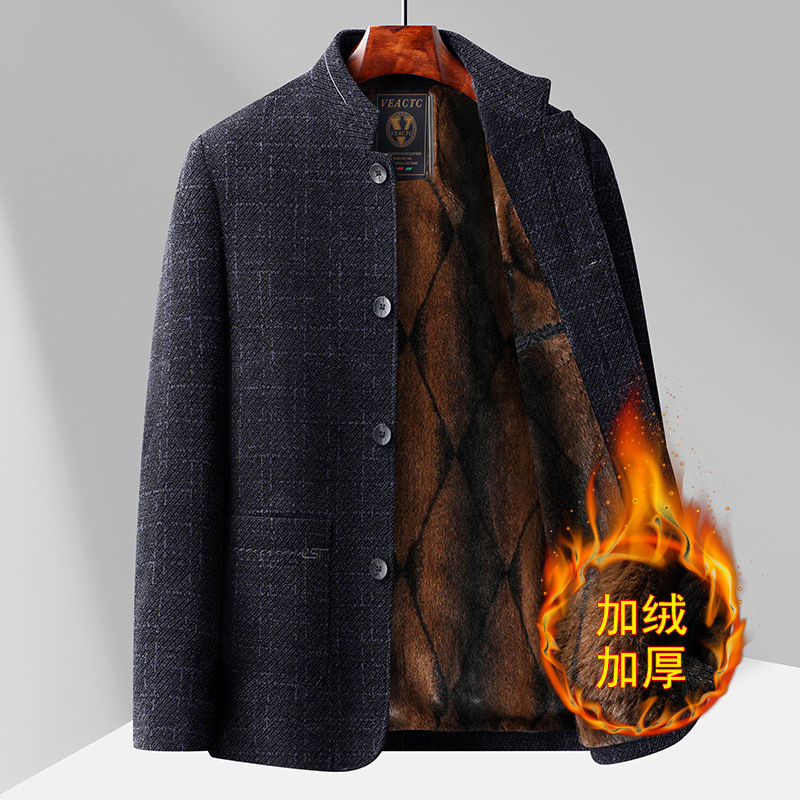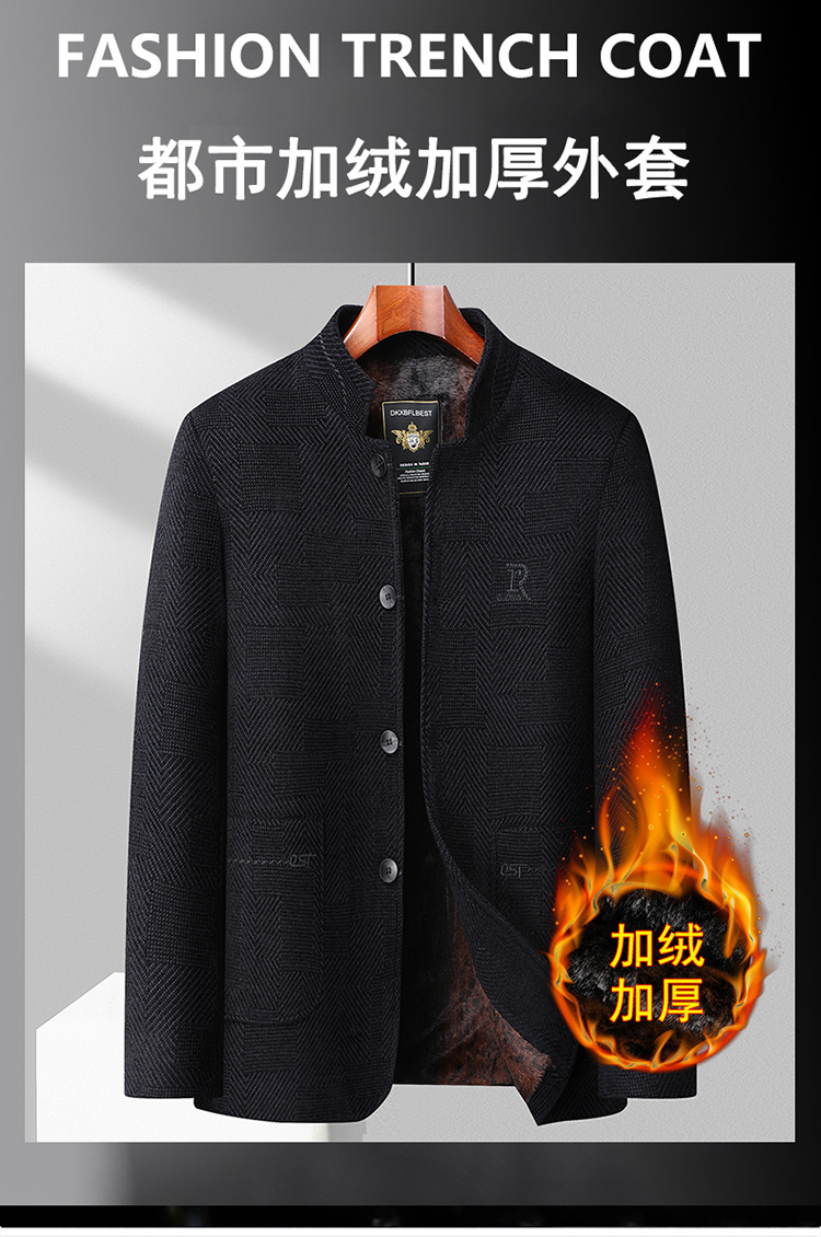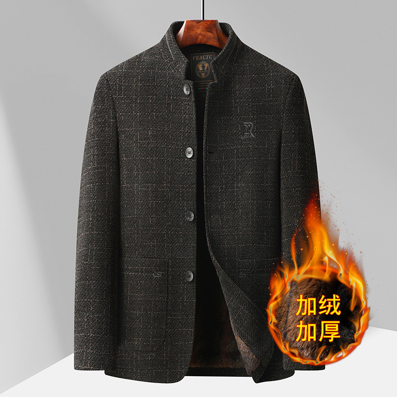 Мужское короткое пальто из синели на флисовой подкладке с воротником-стойкой, толстое мужское утолщенное пальто из Чжуншаня с четырехбортным однобортным воротником-стойкой