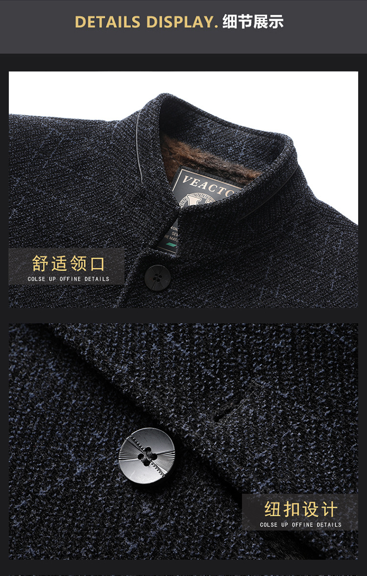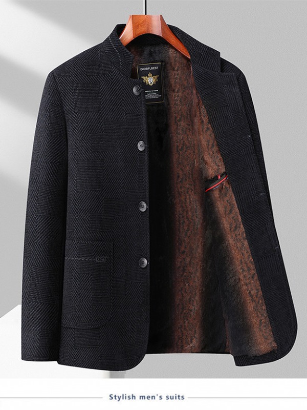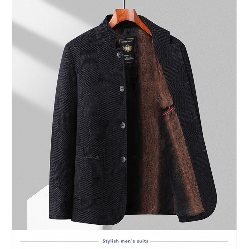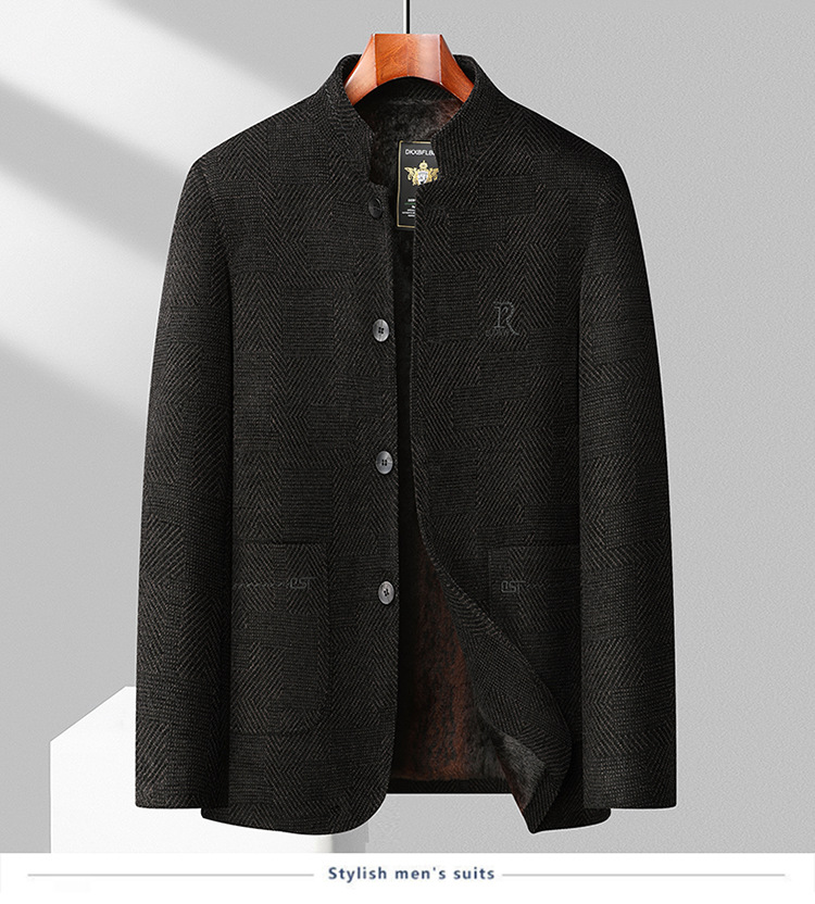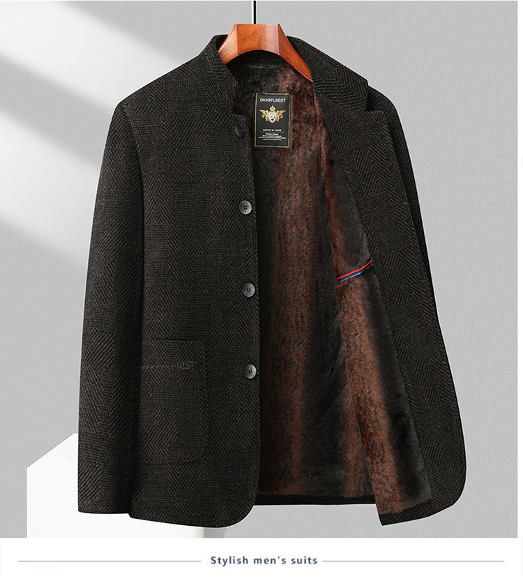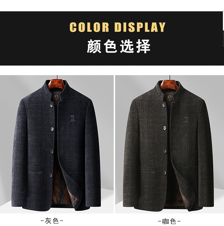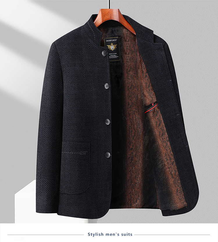Мужское короткое пальто из синели на флисовой подкладке с воротником-стойкой, толстое мужское утолщенное пальто из Чжуншаня с четырехбортным однобортным воротником-стойкой