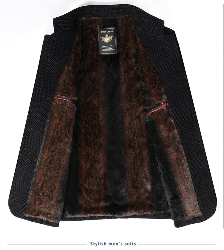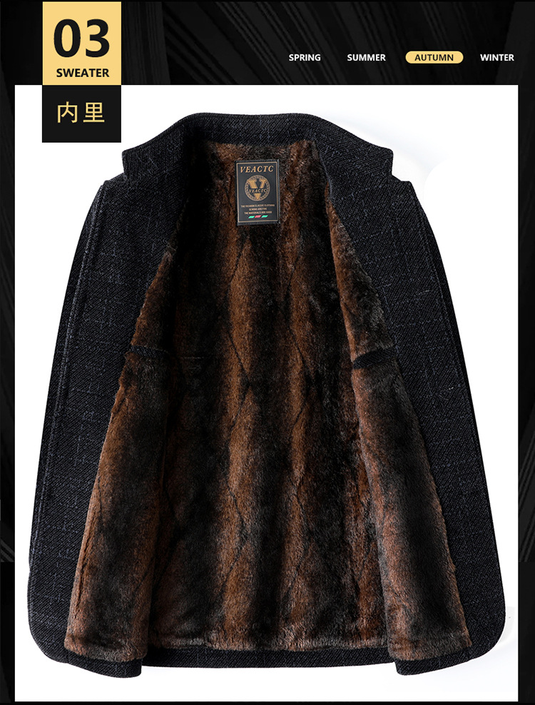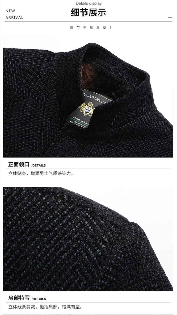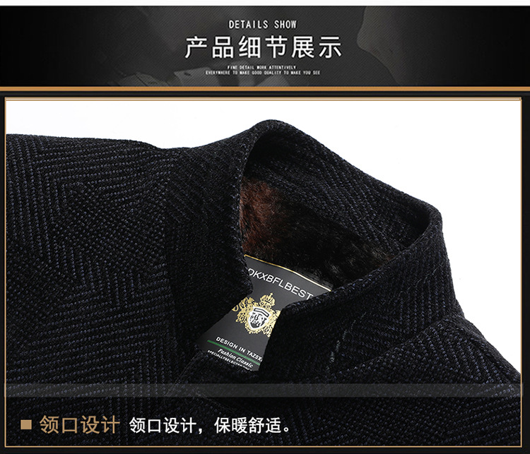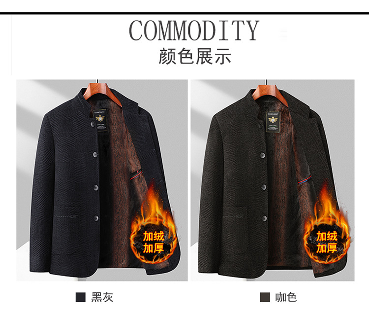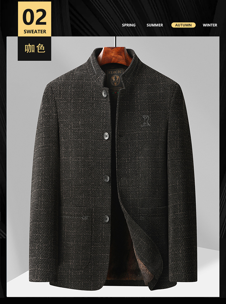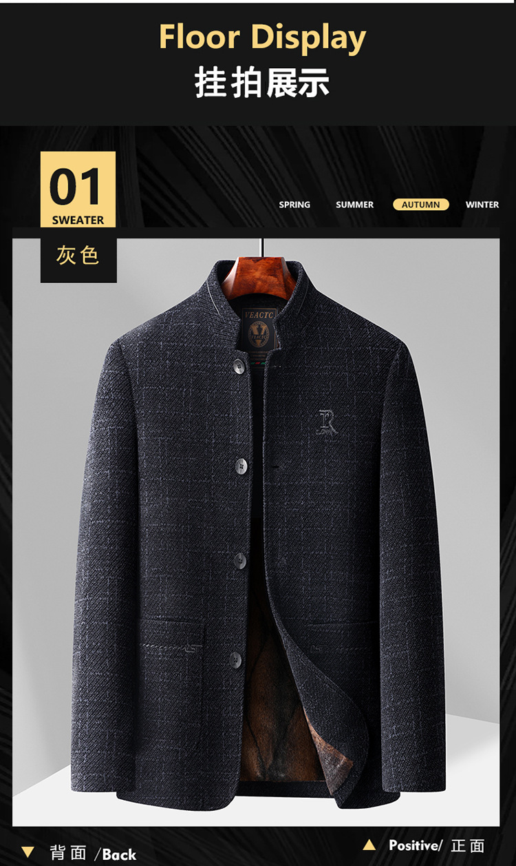 Мужское короткое пальто из синели на флисовой подкладке с воротником-стойкой, толстое мужское утолщенное пальто из Чжуншаня с четырехбортным однобортным воротником-стойкой