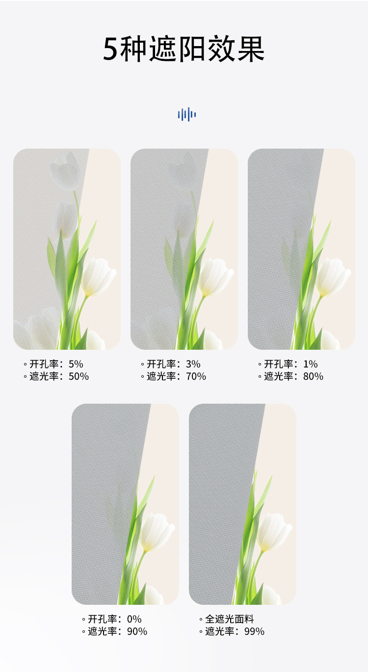 1% открытое отверстие, 3% открытое отверстие, 5% открытое отверстие, 0% открытое отверстие, полное затемнение, полупрозрачность, частичное затемнение