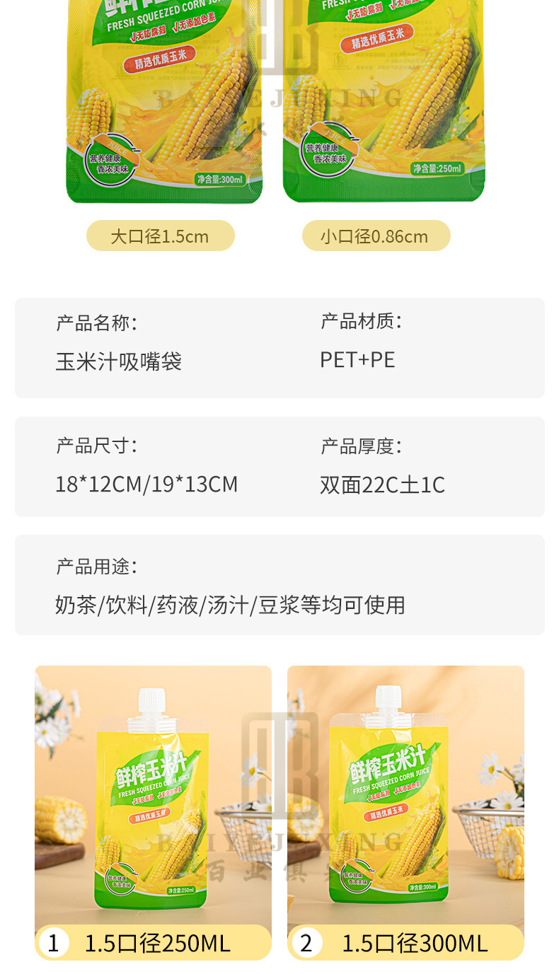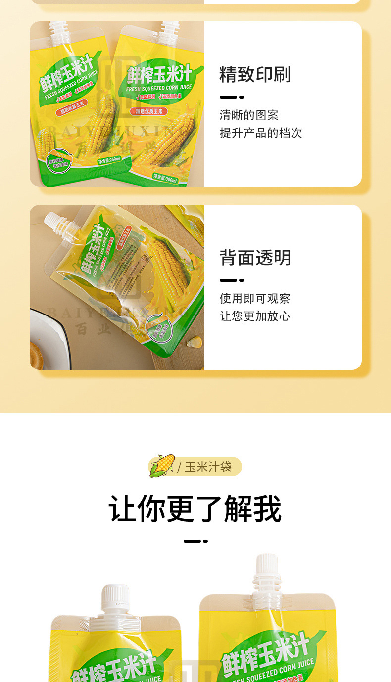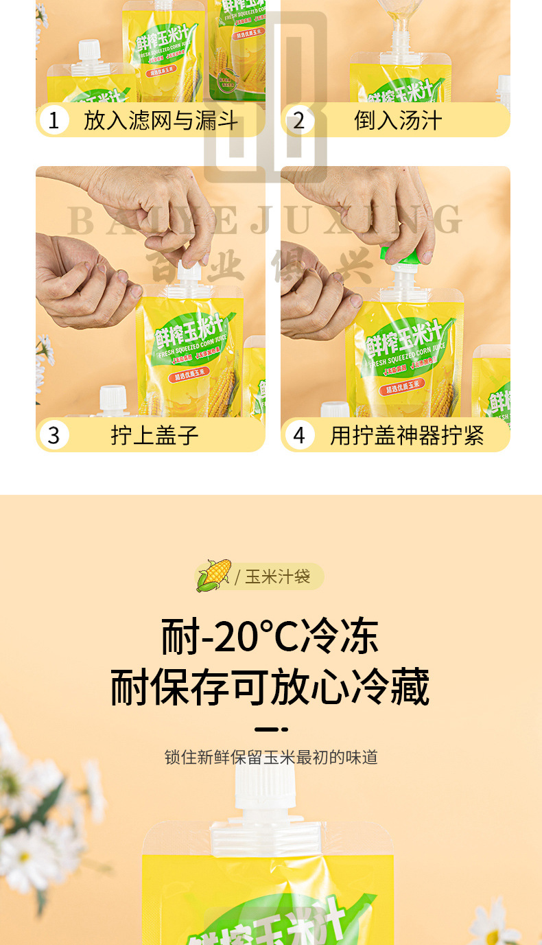 Кукурузный сок упаковка мешок одноразовые свежий кукурузный сок специальная упаковка мешок завтрак высокая температура прозрачная насадка мешок коммерческий