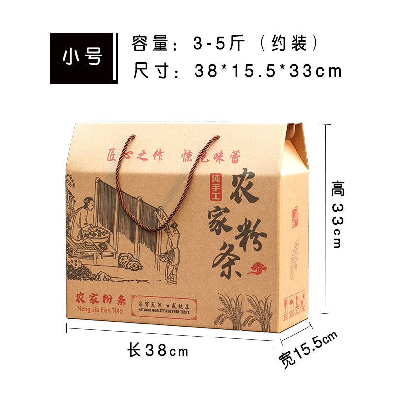 Vermicelli-маленький размер (приблизительно 1.5-2.5kg) (размер: 38*15,5*33 см)*3 слоя гофрированного*желтого; Vermicelli - большой размер (приблизительно 4-5kg (размер: 45*20*34 см)*3 слоя гофрированного*желтого