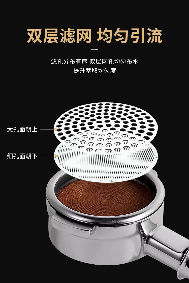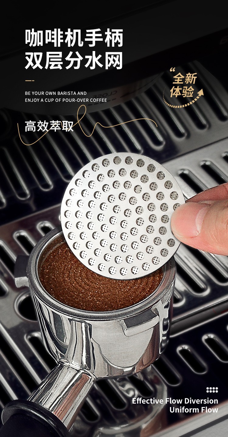 Сетка для распределения кофейной воды, двухслойный фильтр, ручка для кофемашины для эспрессо, спеченный лист, сетка для вторичной распределения воды, лист для равномерной экстракции