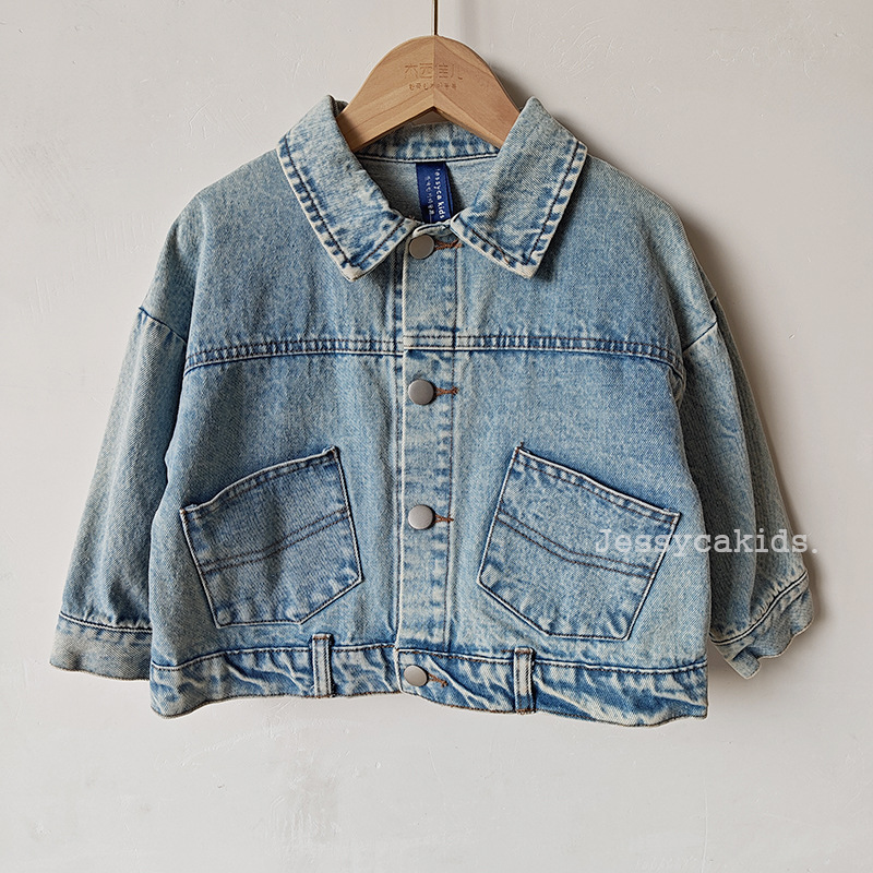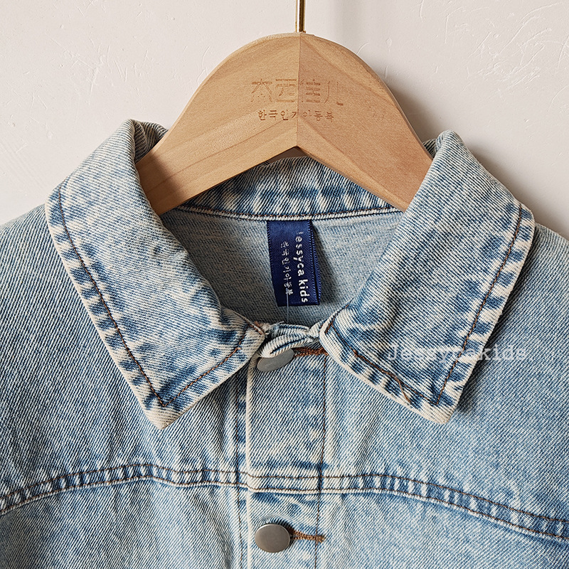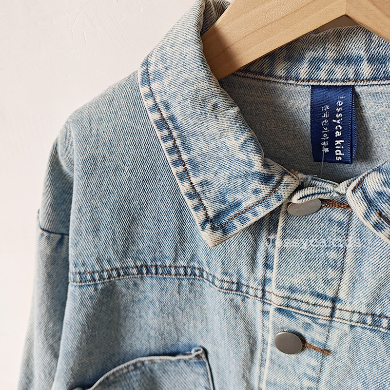 Детская одежда в корейском стиле: осенняя модная джинсовая куртка, ретро-джинсовка с эффектом потертости для мальчиков и девочек, топы для малышей и детей младшего возраста