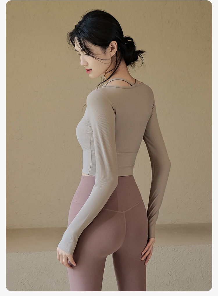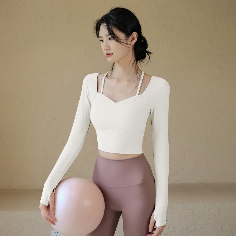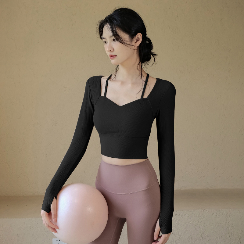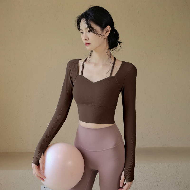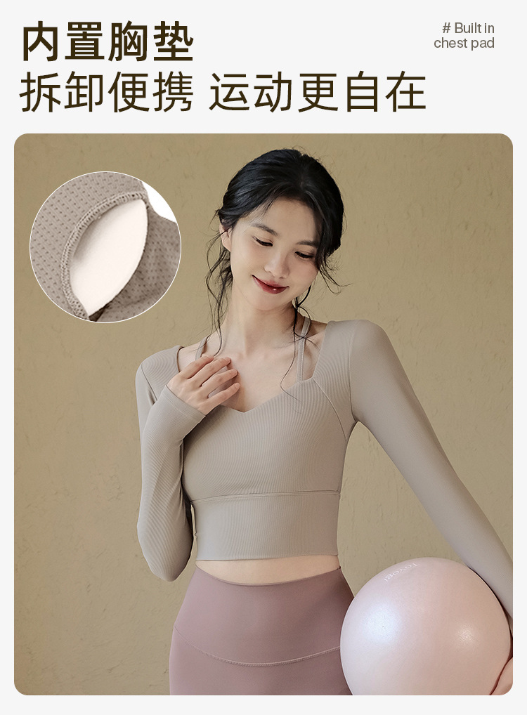 Одежда для йоги для девочек с нагрудной накладкой, Женская осенне-зимняя темперамент для похудения, Пилатес, тренировочный облегающий топ с длинными рукавами, спортивная одежда xl