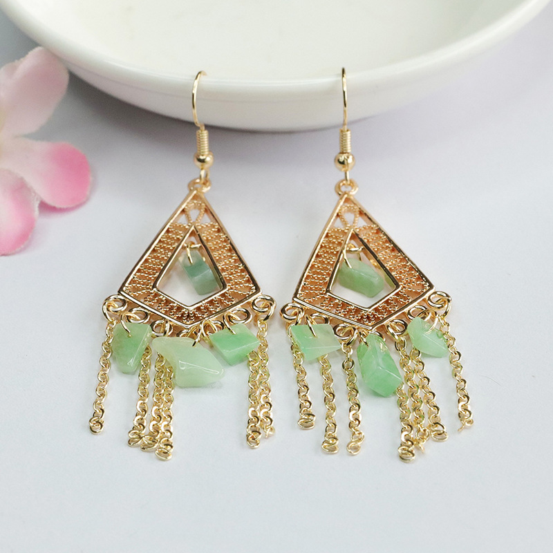 Yiyu Natural Мьянма А товары Изумрудный фруктовый зеленый серьги с геометрическими ушными крючками для женщин оптом FC3120902