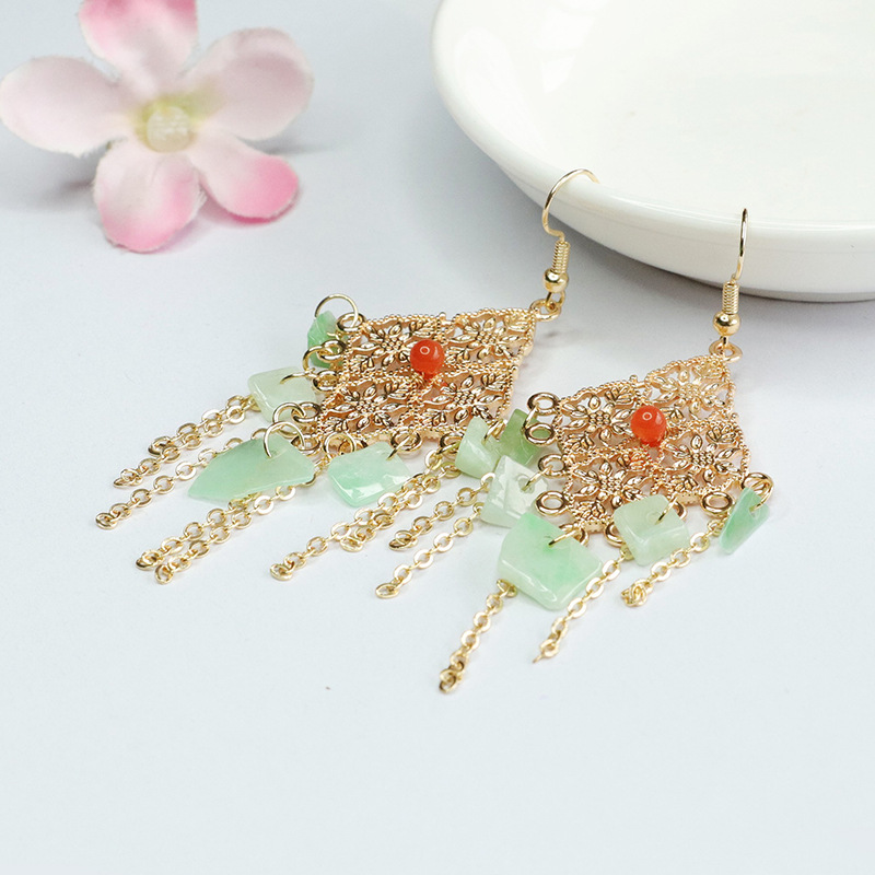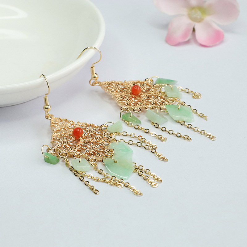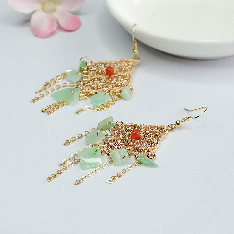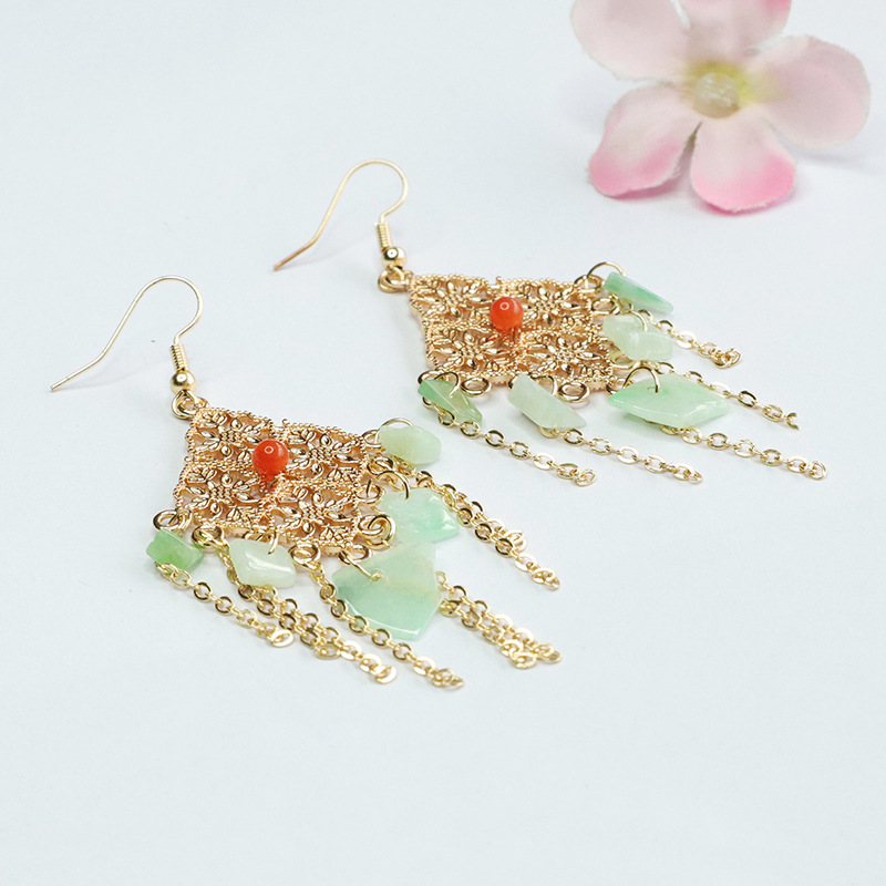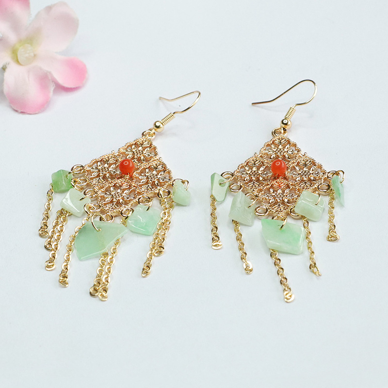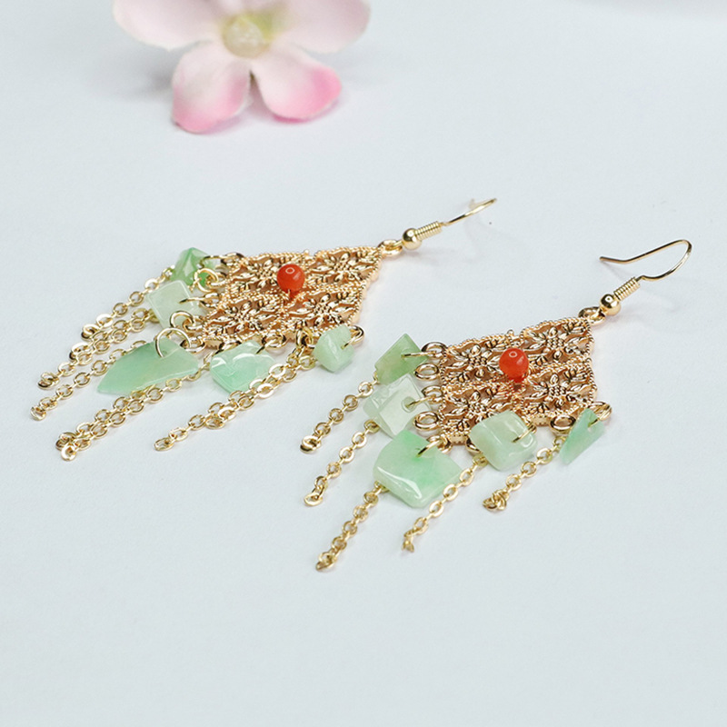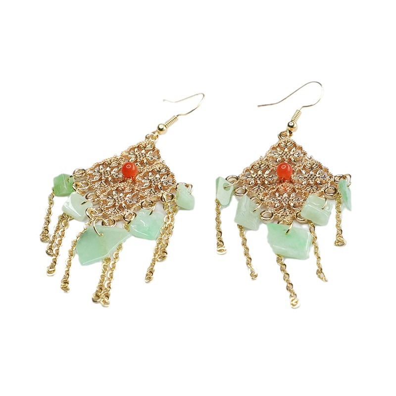 Серьги в форме фруктового зеленого нефрита с ромбами (FC3120907)