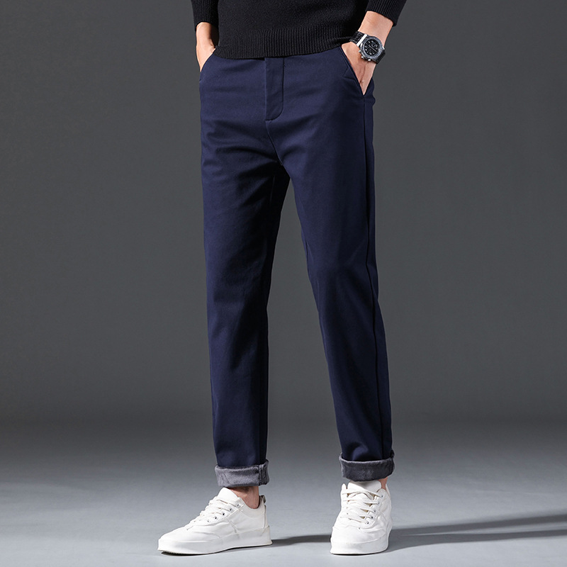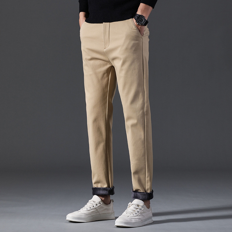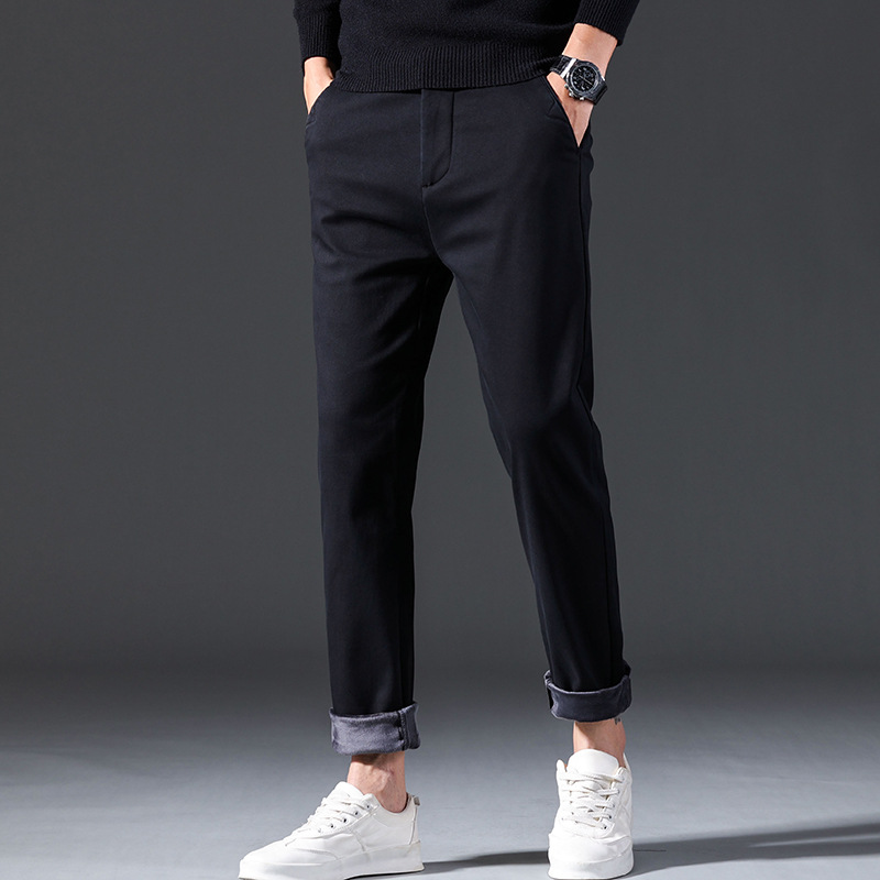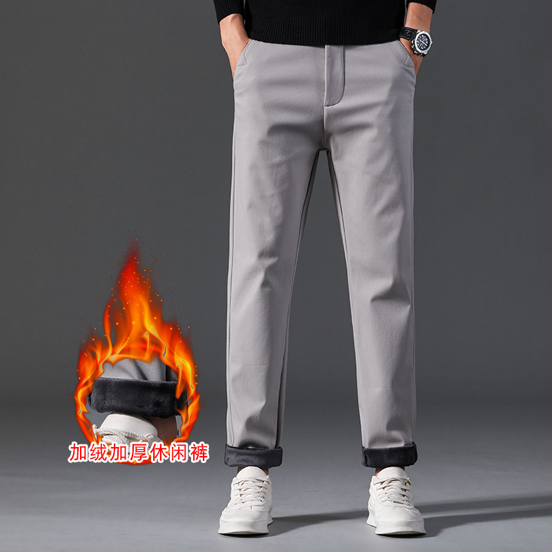 Повседневные брюки, мужские Модные мужские повседневные длинные брюки в Корейском стиле, мужские зимние прямые эластичные толстые теплые брюки с флисовой подкладкой