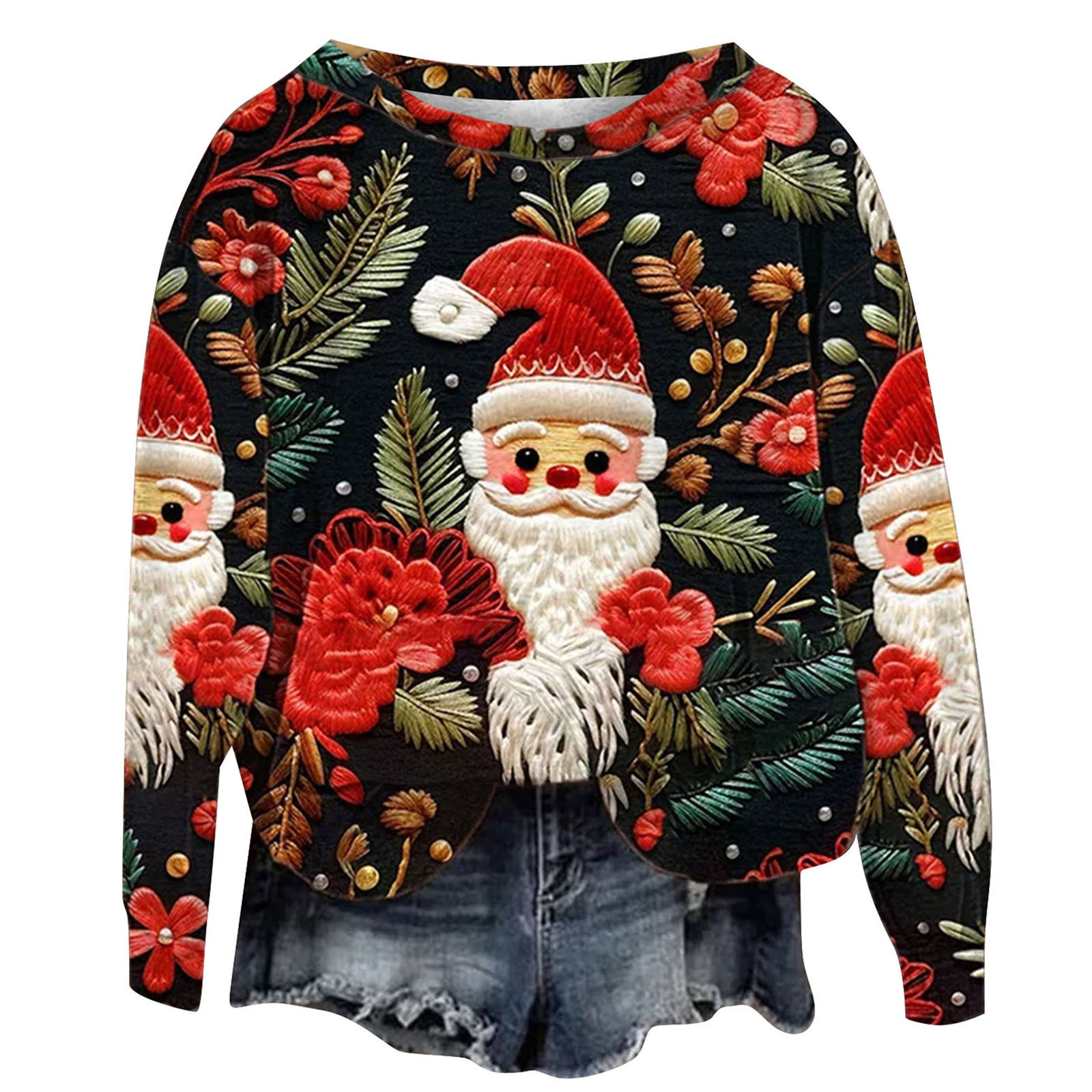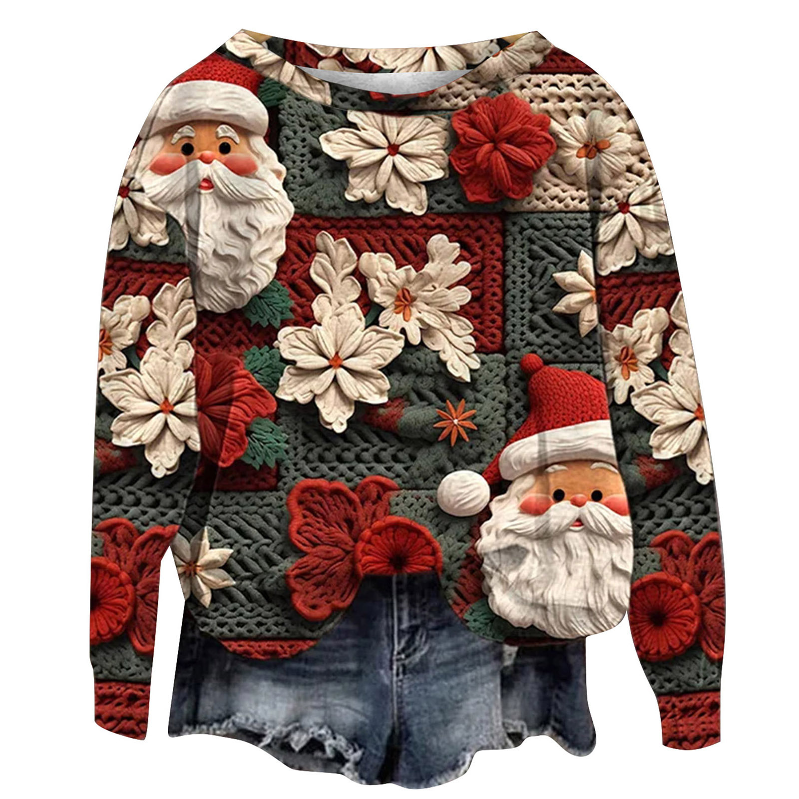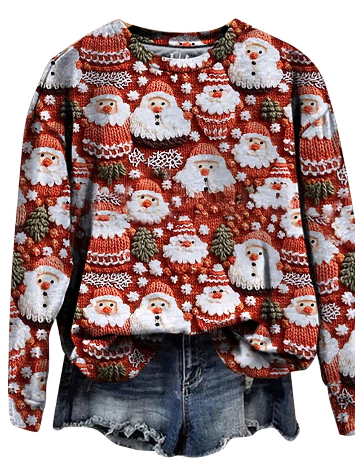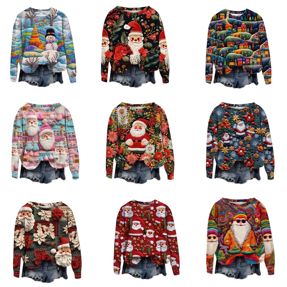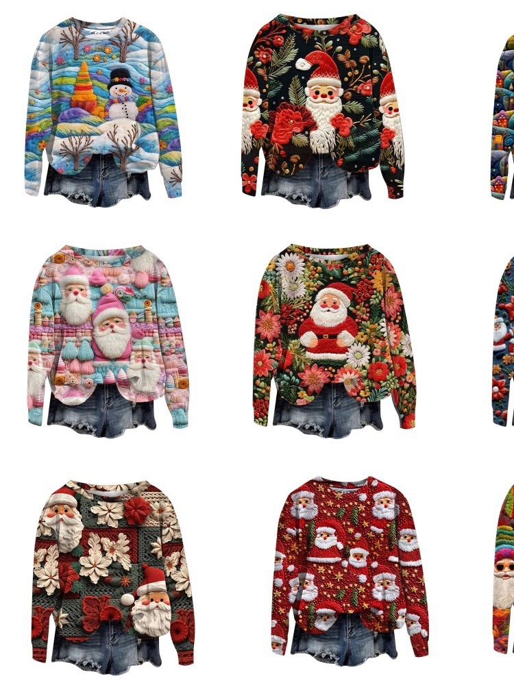 2023 трансграничный Новый рождественский тренд с круглым вырезом, свитер с 3D цифровой печатью, женский свободный свитер Санта-Клауса