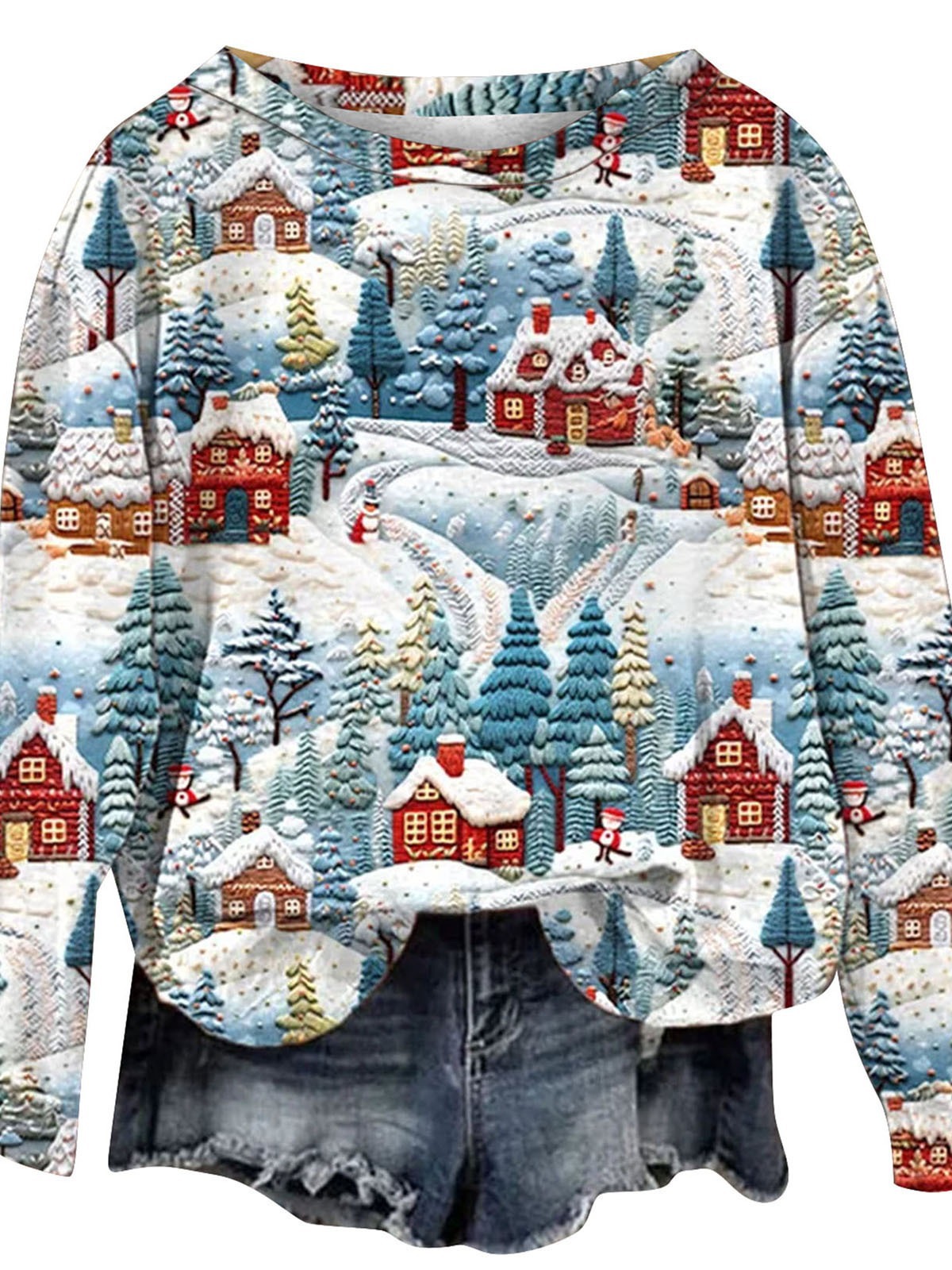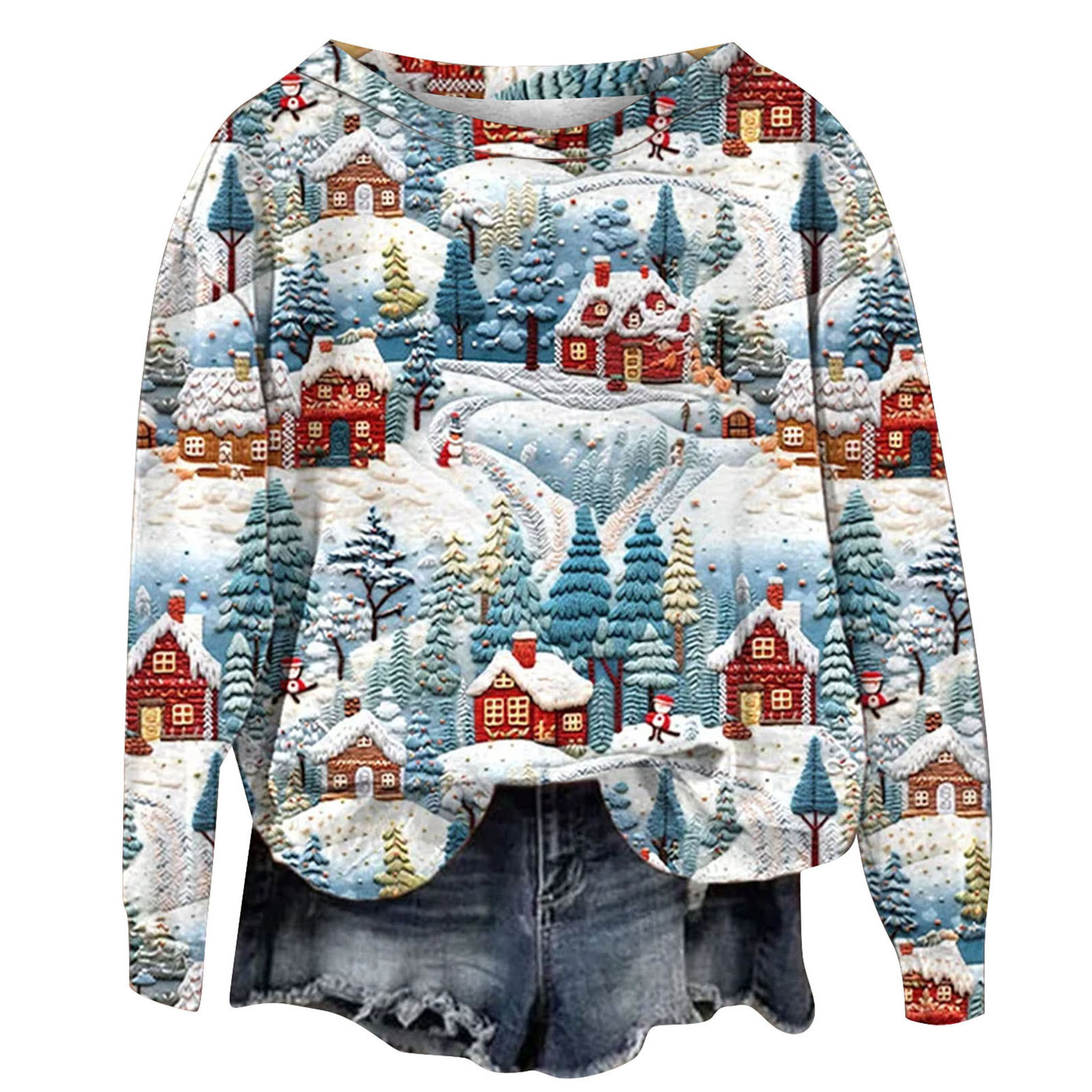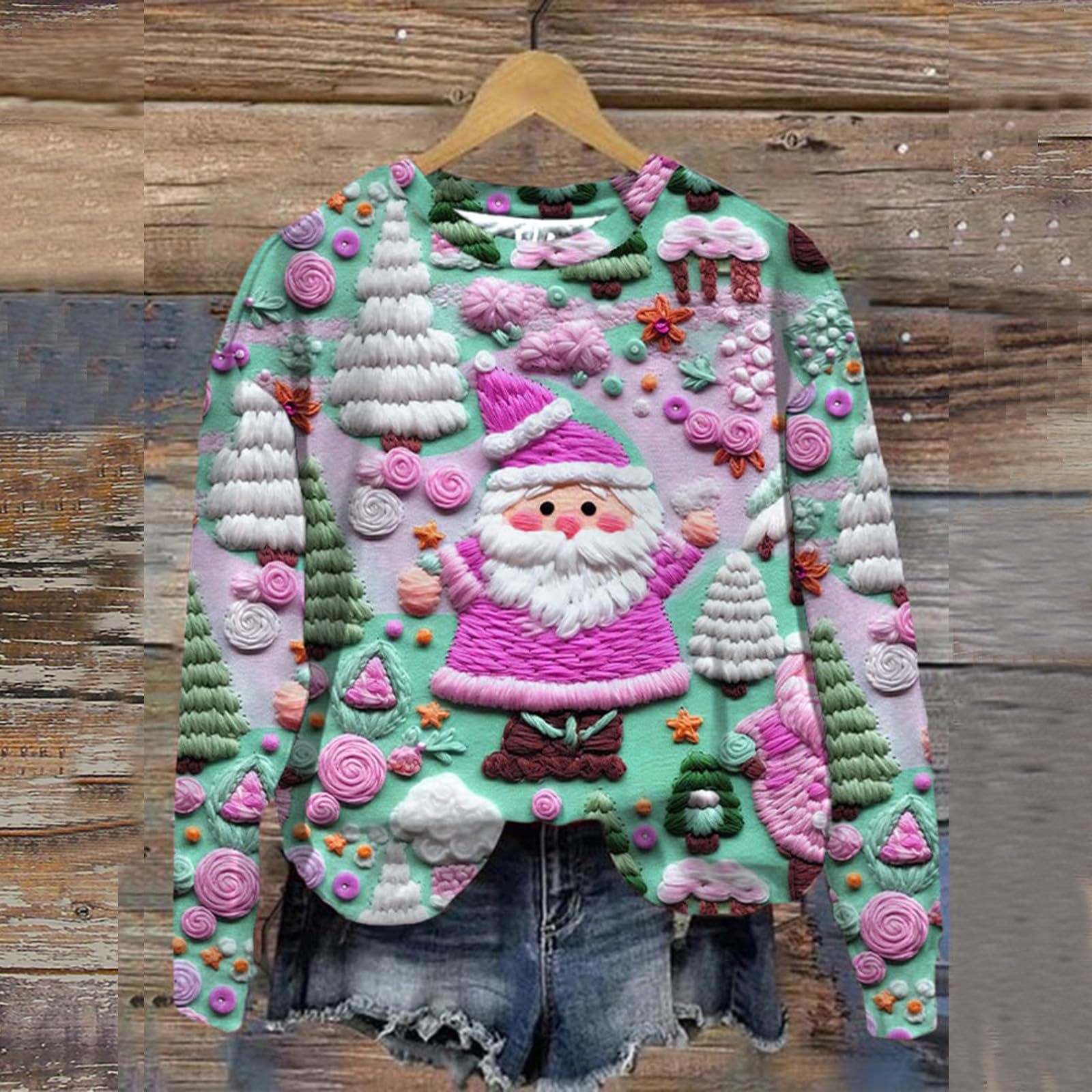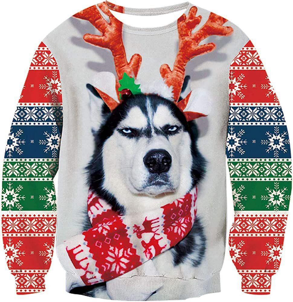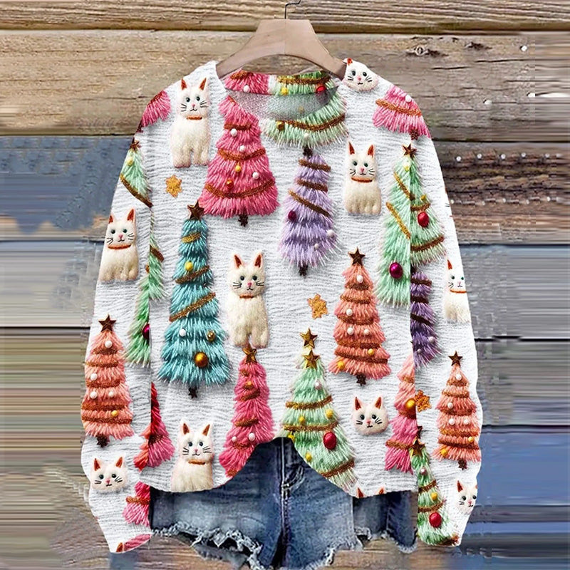2023 трансграничный Новый рождественский тренд с круглым вырезом, свитер с 3D цифровой печатью, женский свободный свитер Санта-Клауса