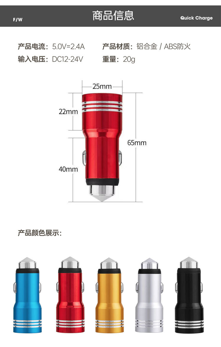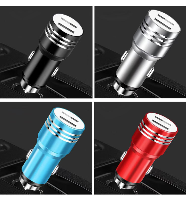 Производитель оптом безопасности молоток автомобиля зарядное устройство 2.4A автомобильный мобильный телефон зарядное устройство Double USB один-один-два-металлический автомобиль зарядное устройство