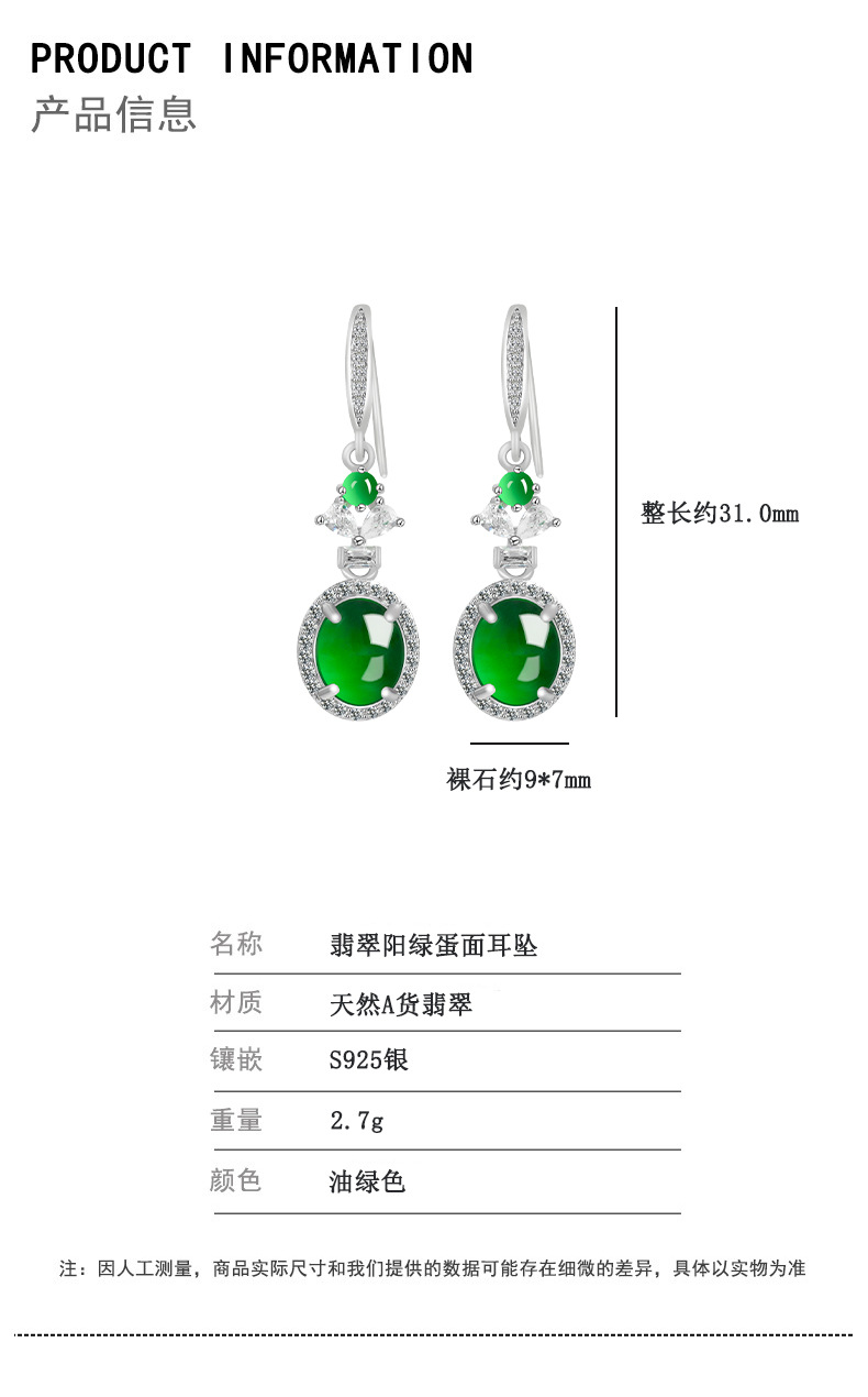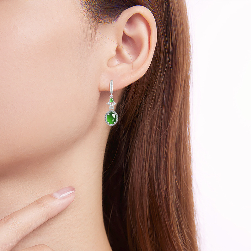 Натуральный продукт Изумрудный Ян зеленый серьги с яйцом Серьги Серьги с лапшой