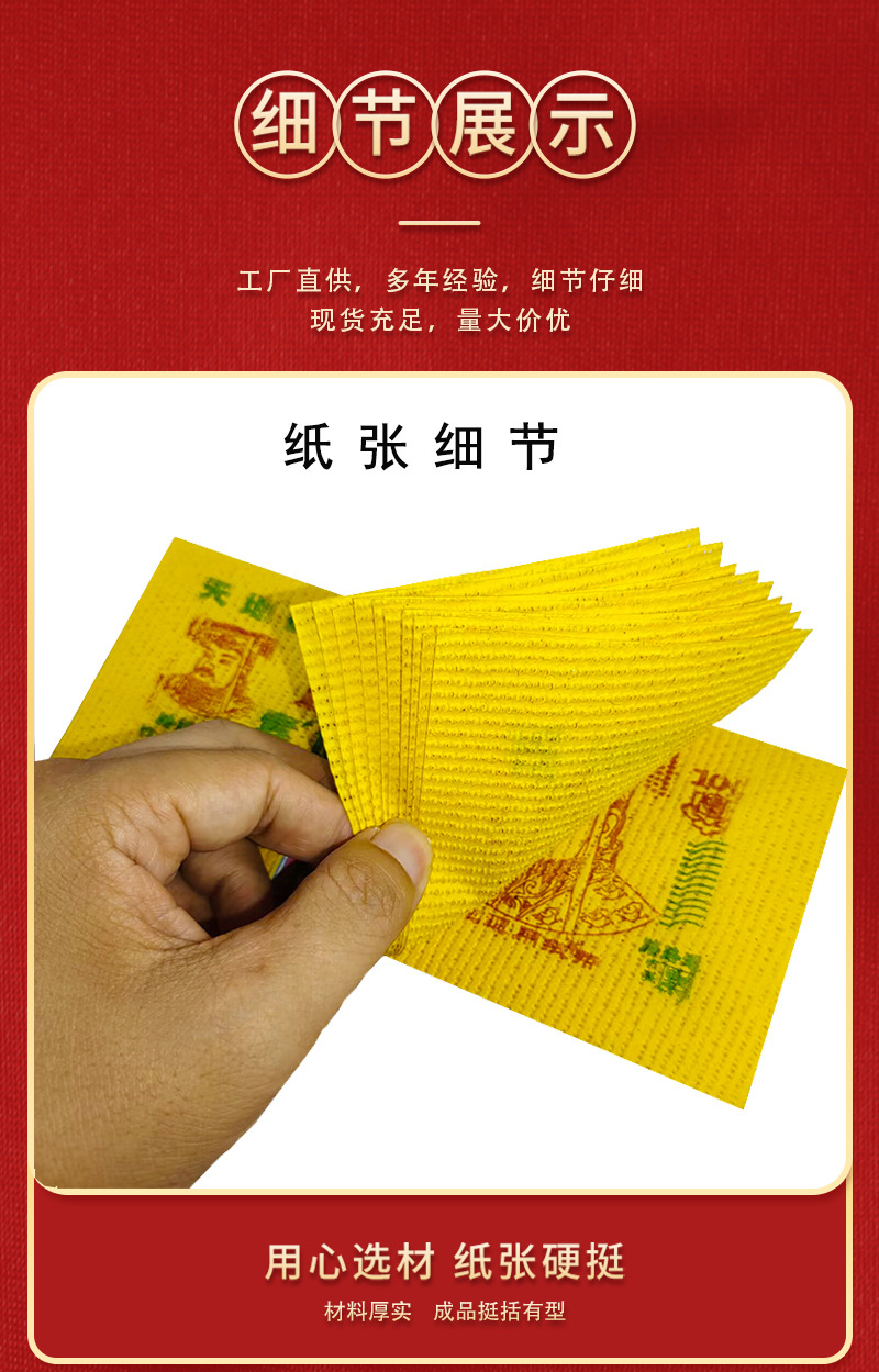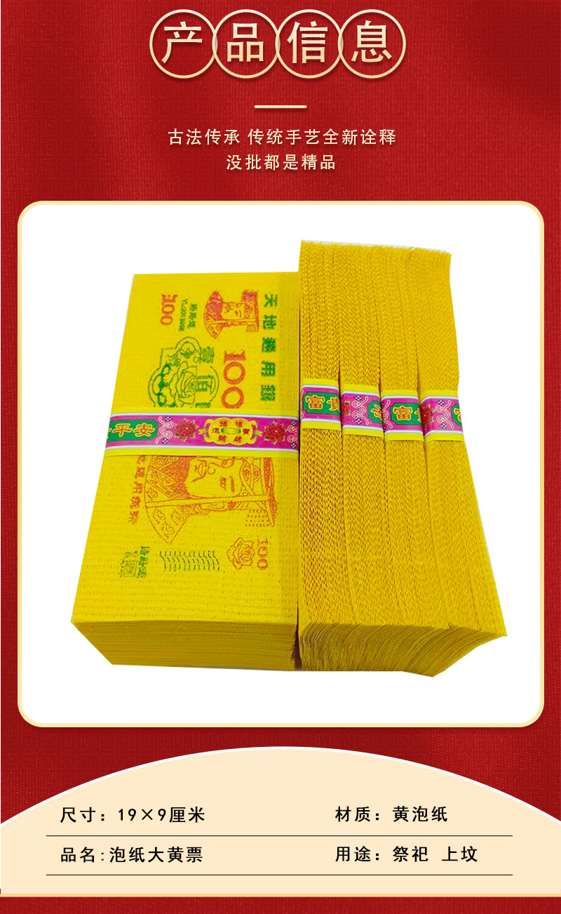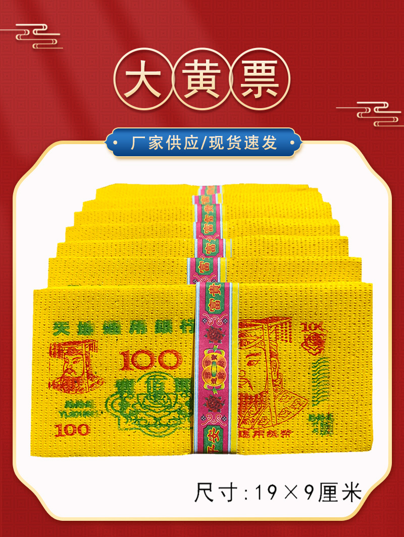 Традиционные бумажные денежные приносы, большие желтые бумажные купюры, горящая бумага, денежные знаки для духов, Фестиваль Цинмин, 1 октября, 15 июля, принадлежности для жертвоприношений, прямые продажи от производителя, бумажный материал.