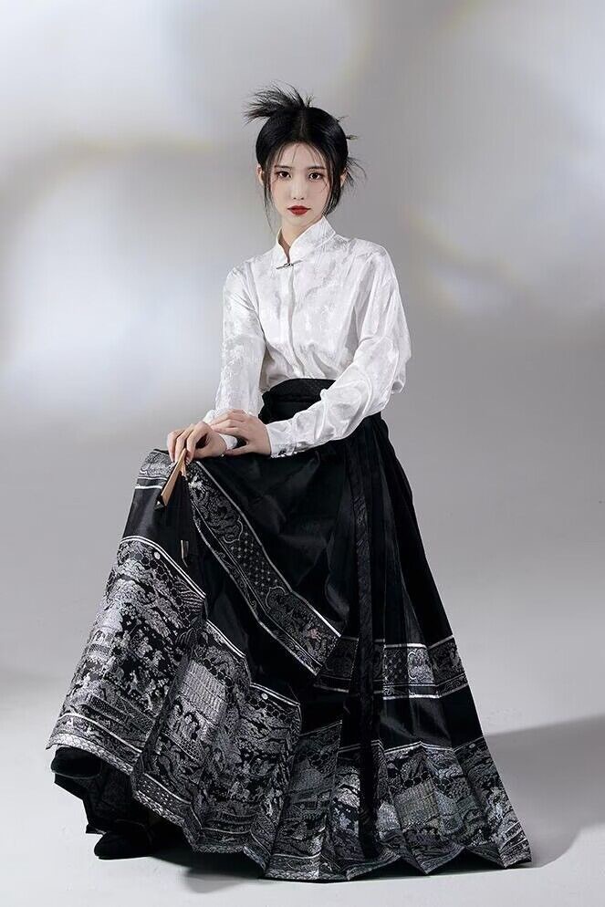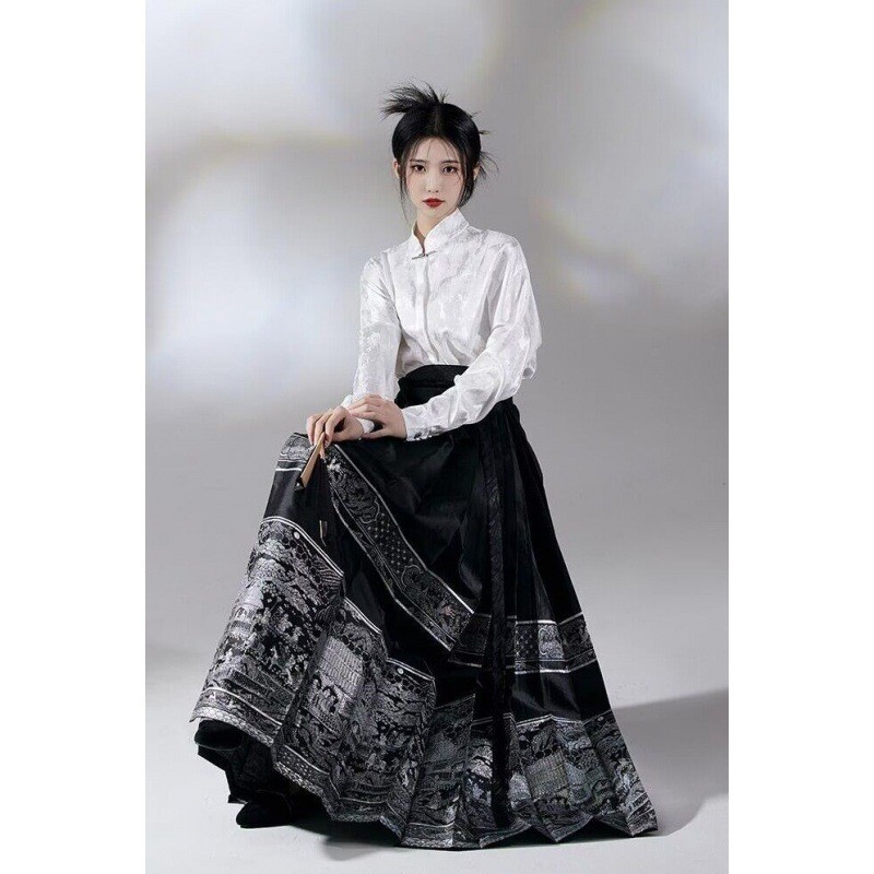 Черный топ 69007 #; Белый топ 69007 #; Лошадь юбка 69007 #