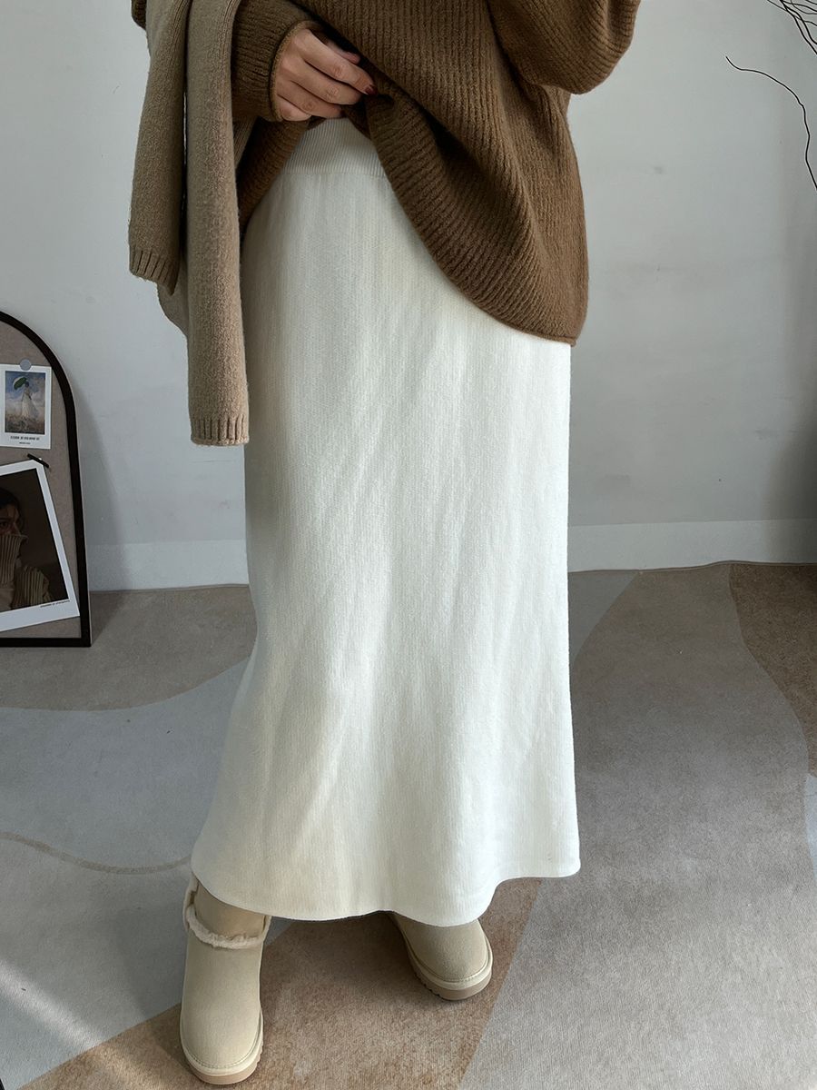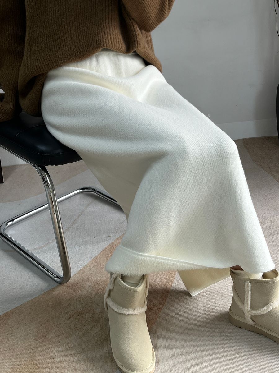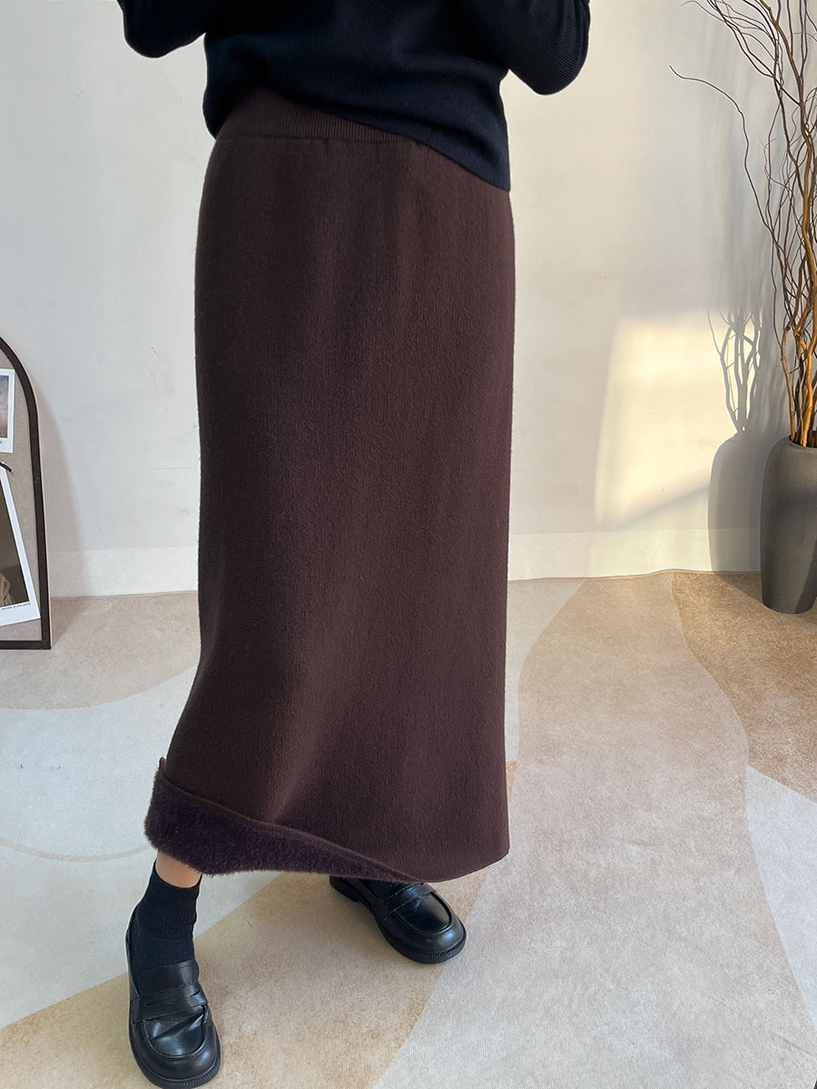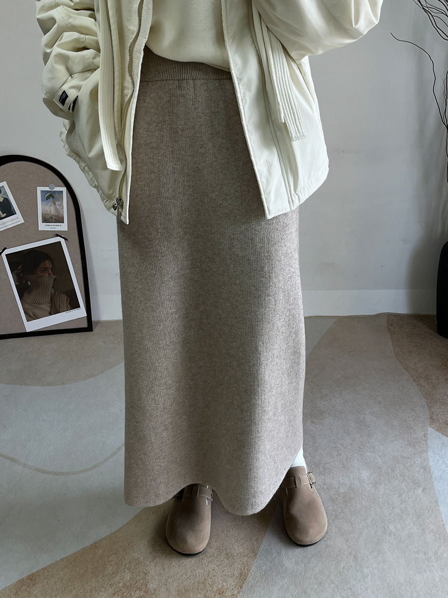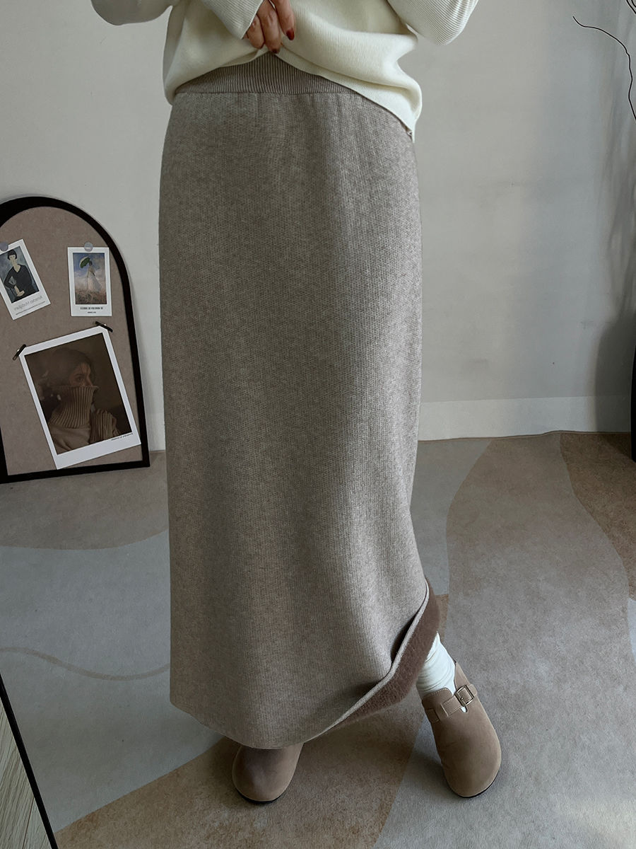 [Зимняя трикотажная юбка на флисовой подкладке] с разрезом, модная женская Свободная прямая универсальная шерстяная юбка-футляр с завышенной талией