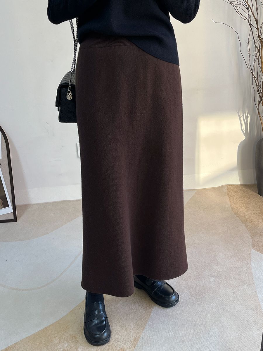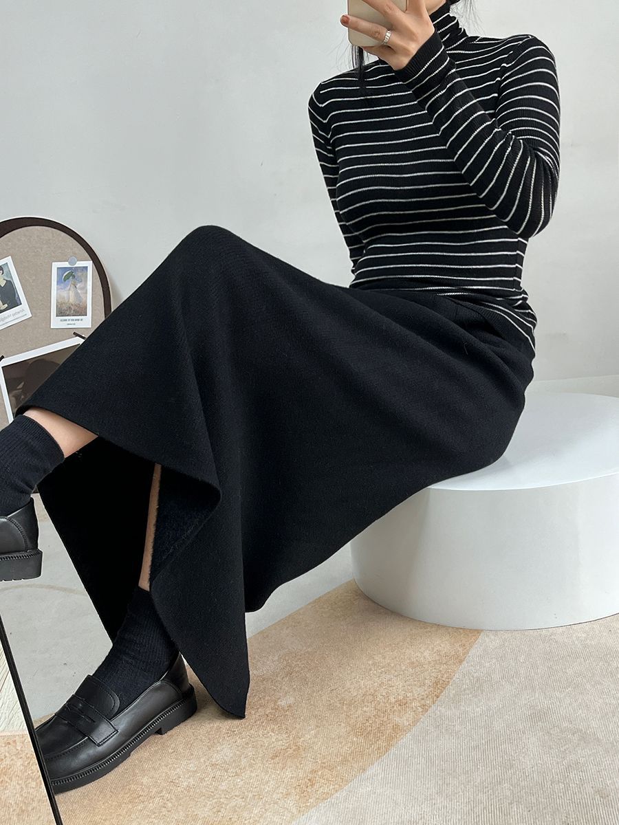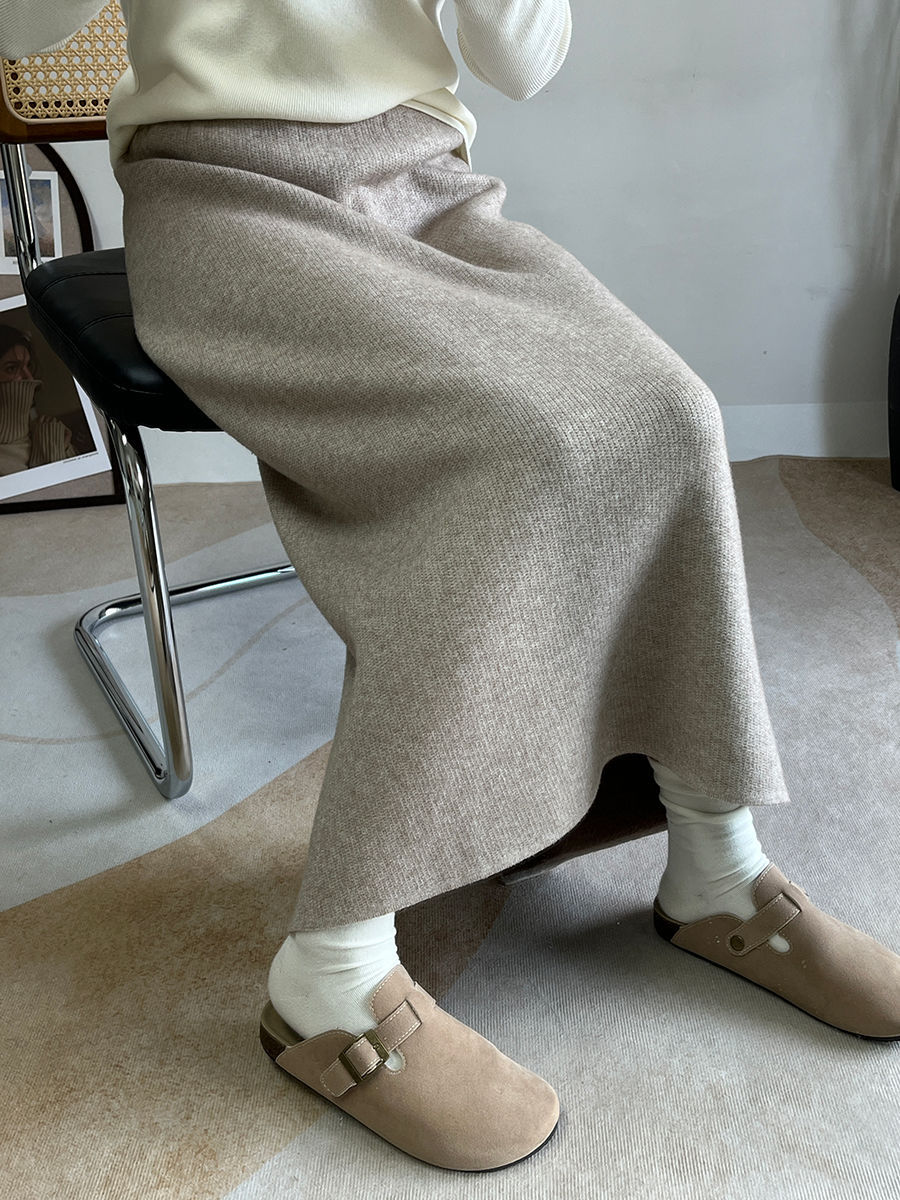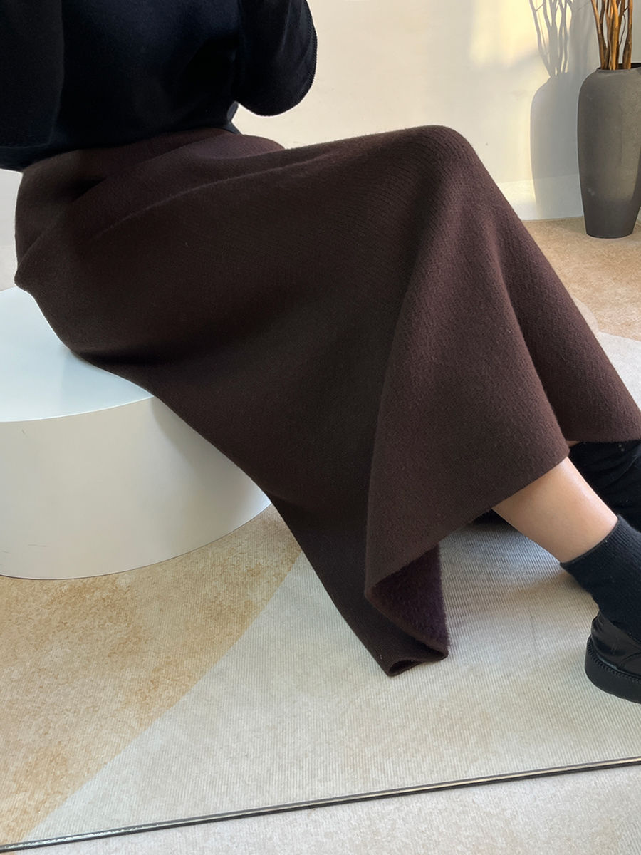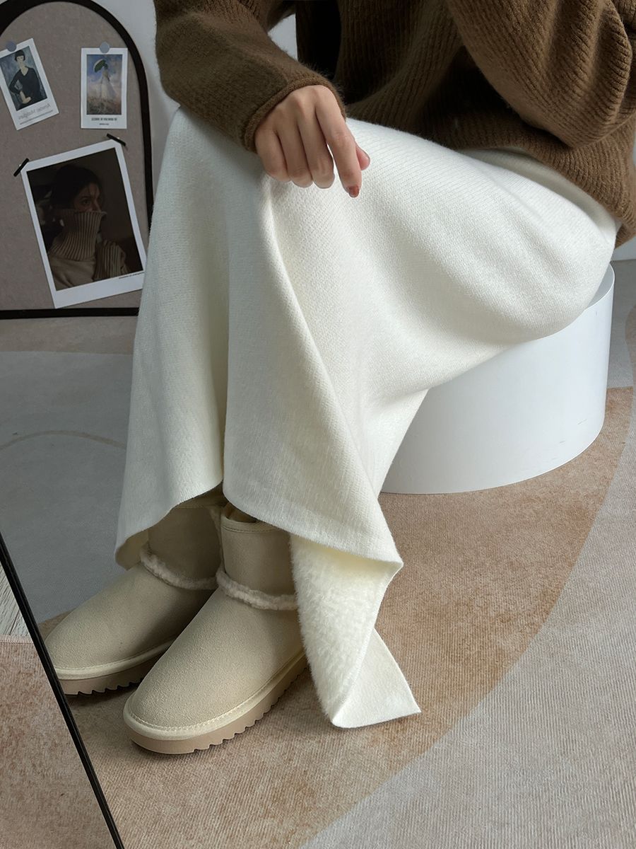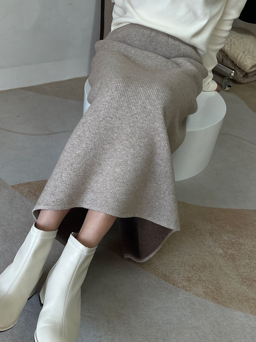 [Зимняя трикотажная юбка на флисовой подкладке] с разрезом, модная женская Свободная прямая универсальная шерстяная юбка-футляр с завышенной талией
