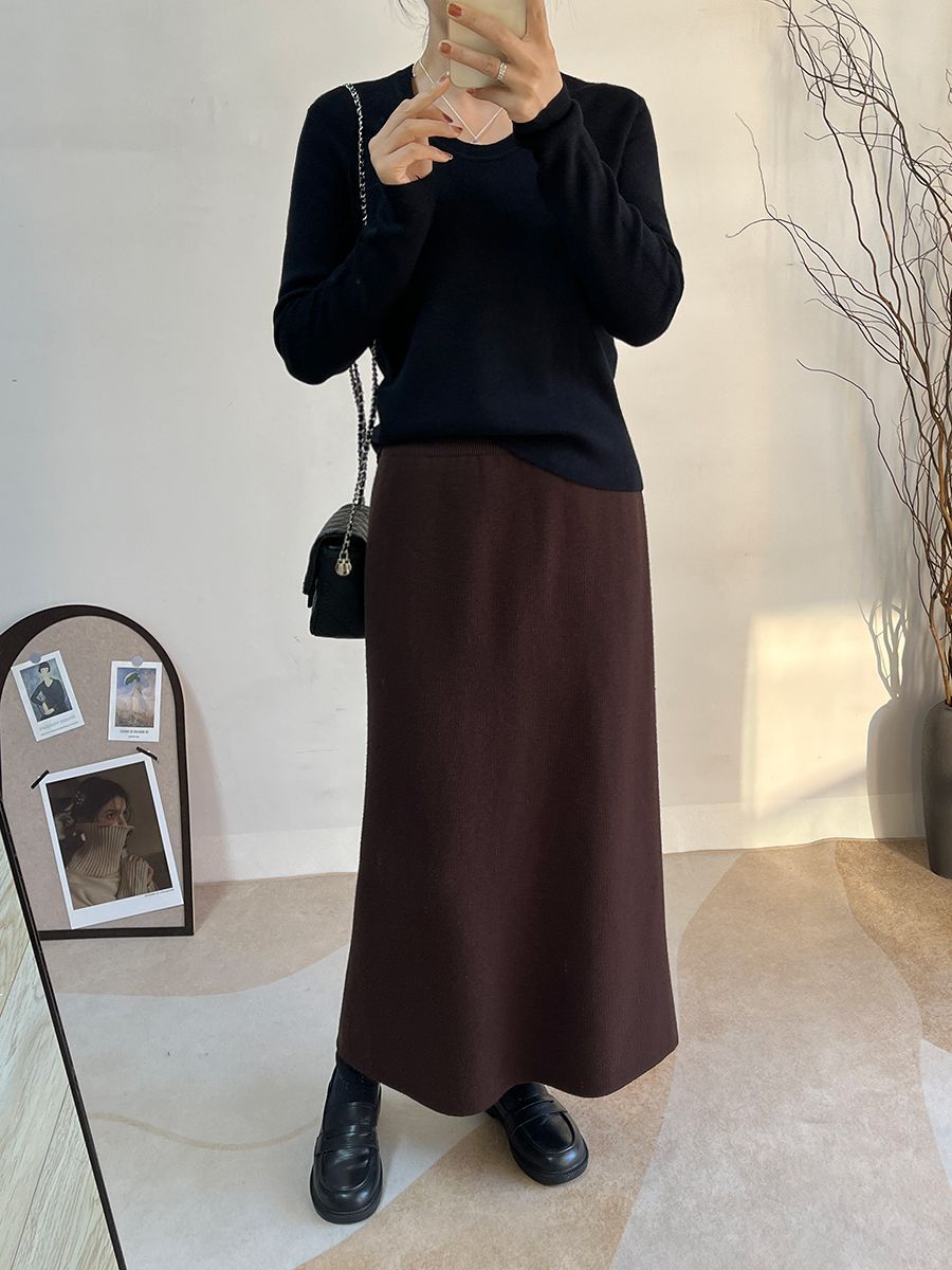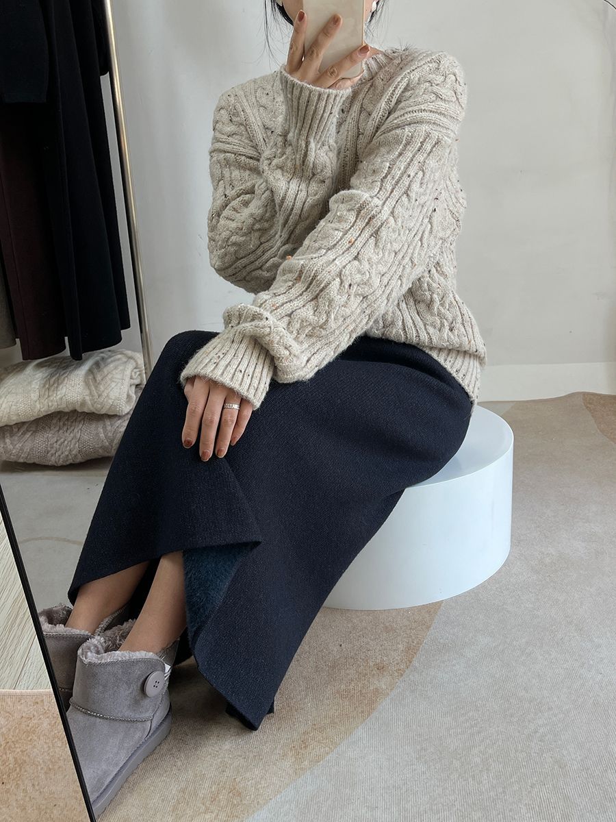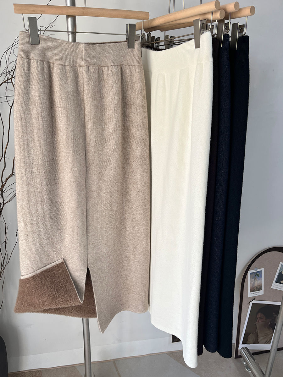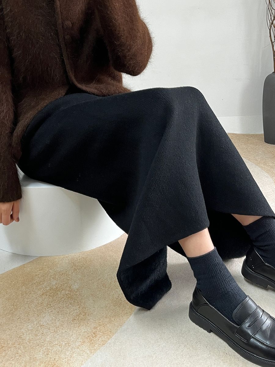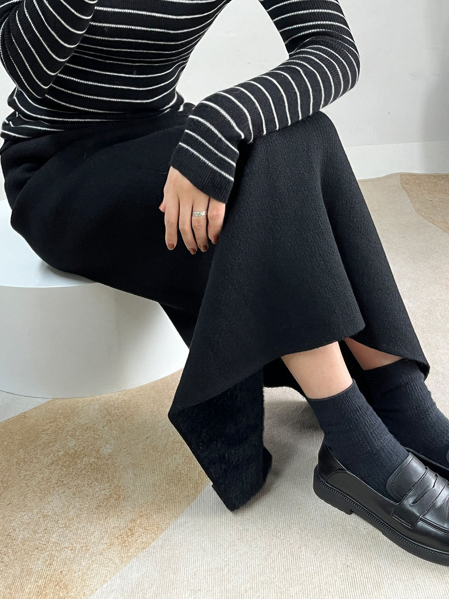 [Зимняя трикотажная юбка на флисовой подкладке] с разрезом, модная женская Свободная прямая универсальная шерстяная юбка-футляр с завышенной талией