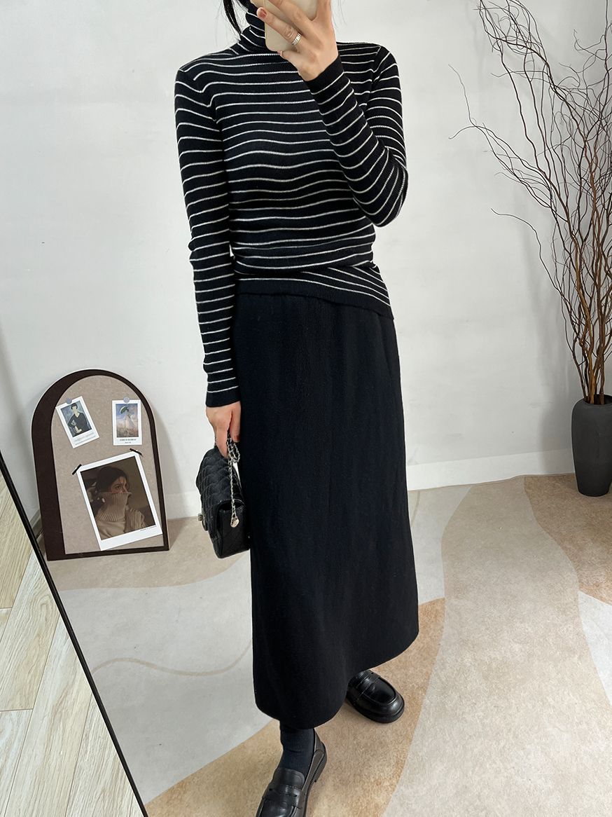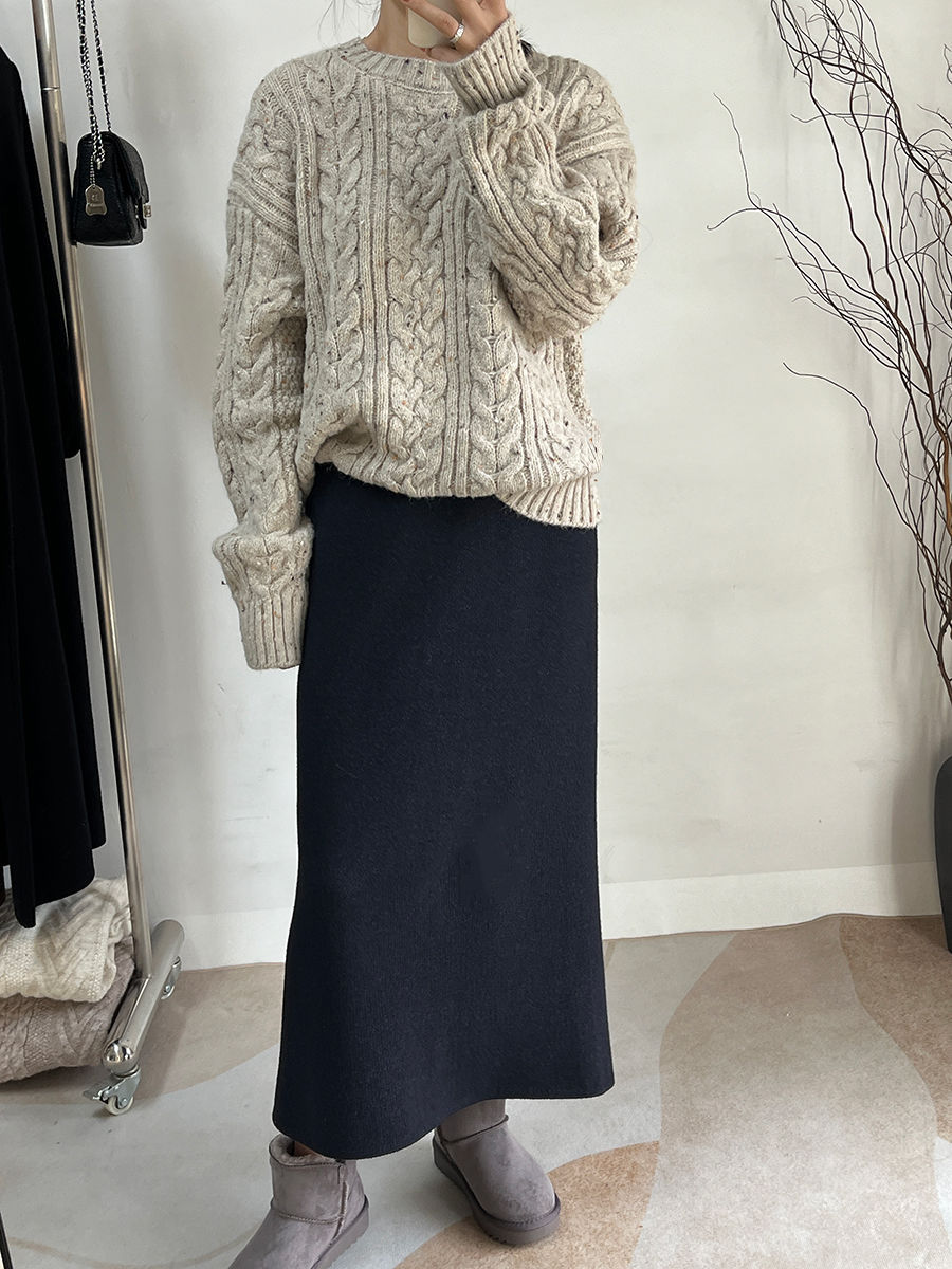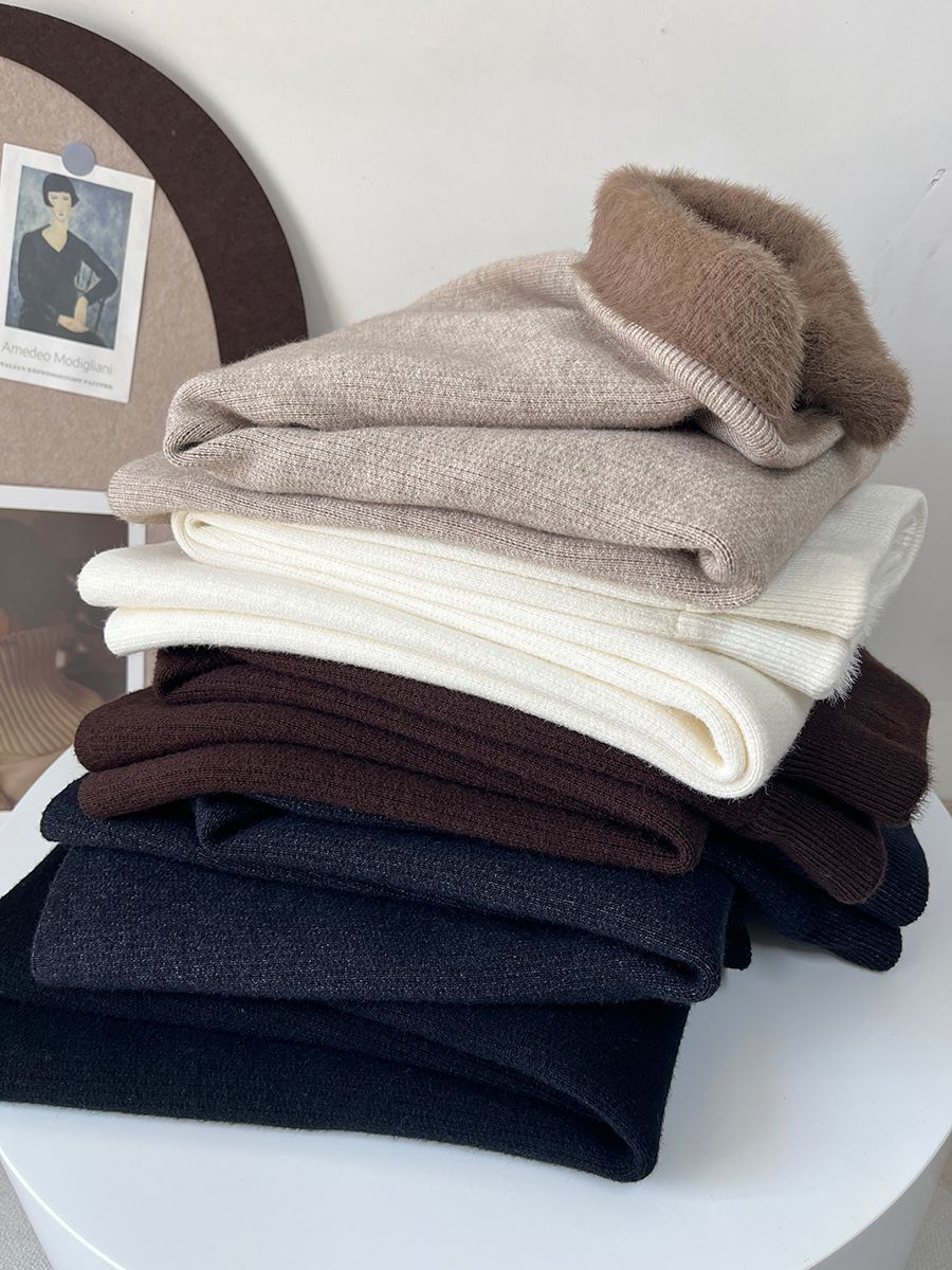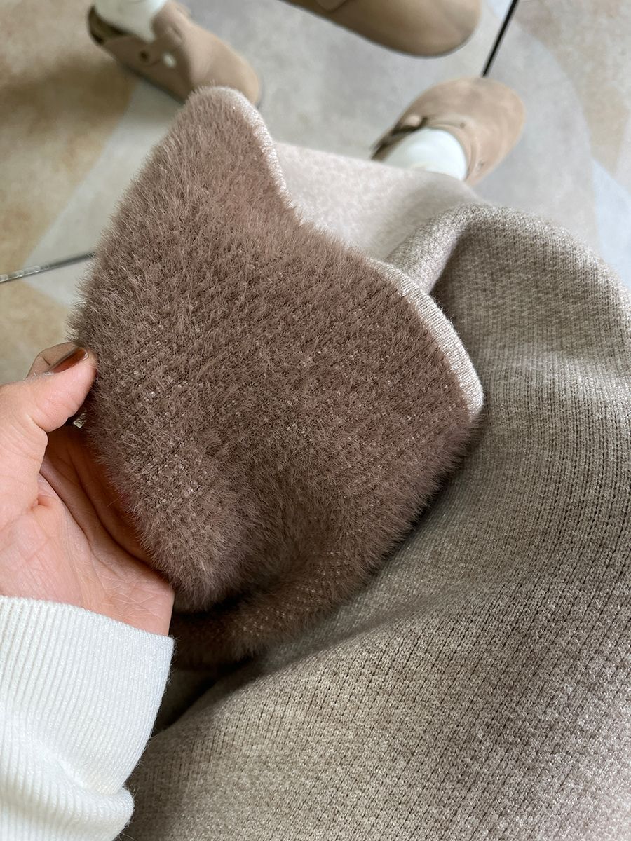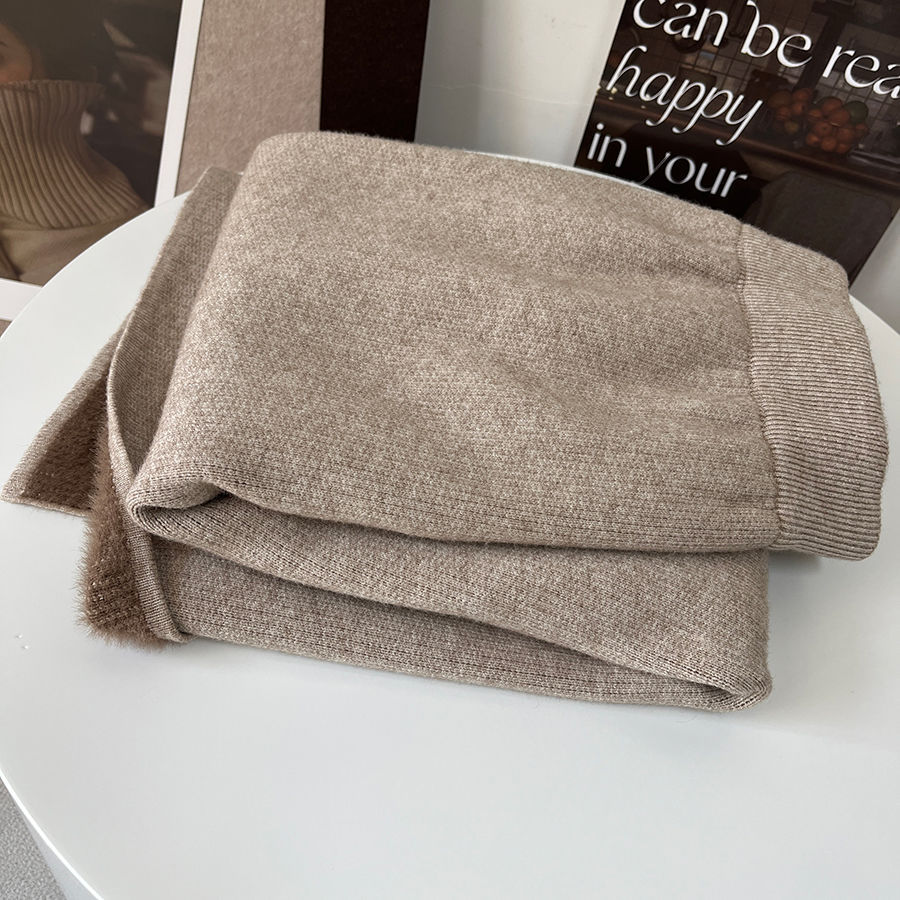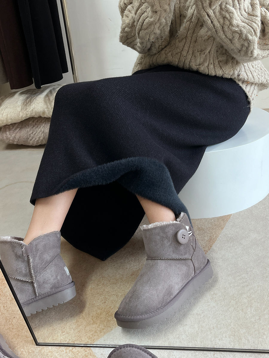 [Зимняя трикотажная юбка на флисовой подкладке] с разрезом, модная женская Свободная прямая универсальная шерстяная юбка-футляр с завышенной талией