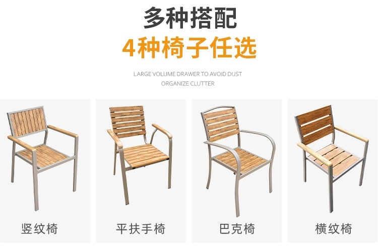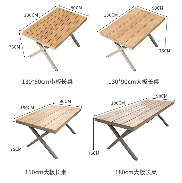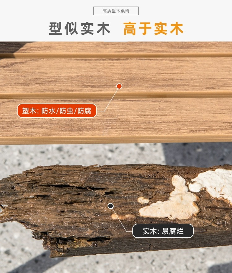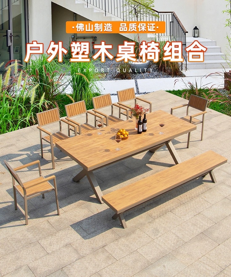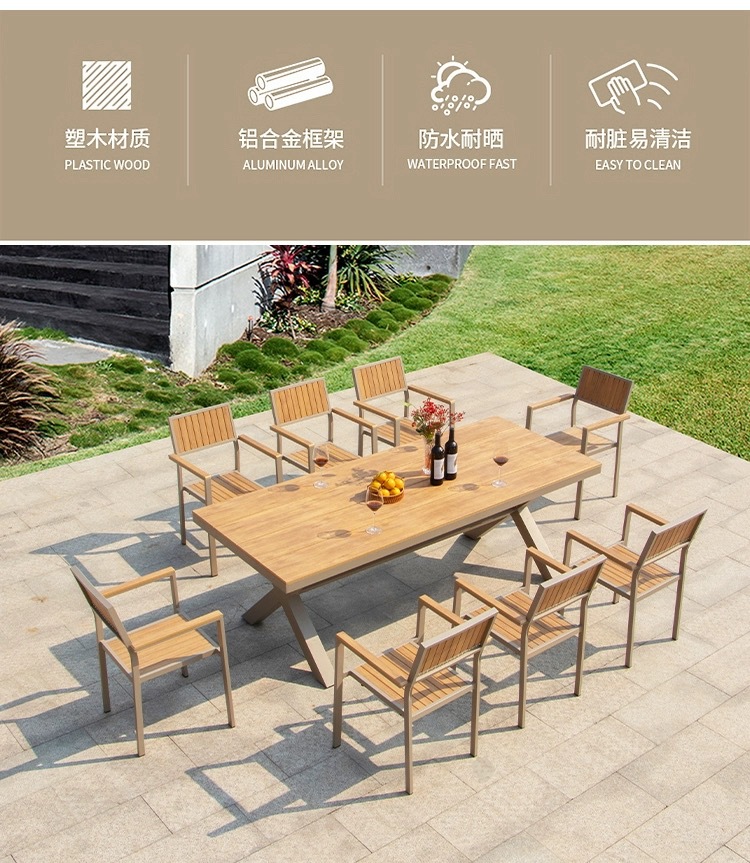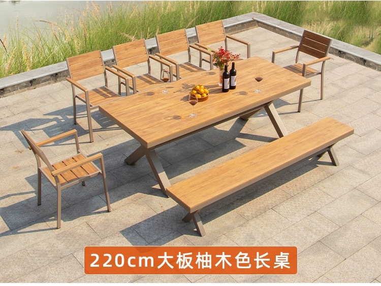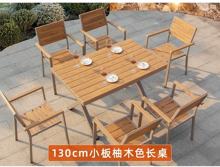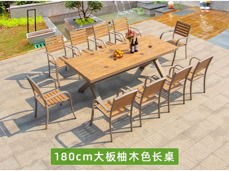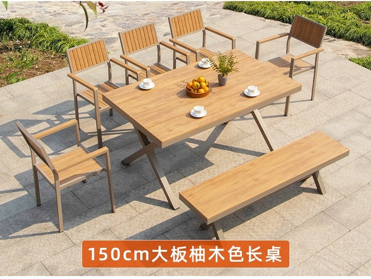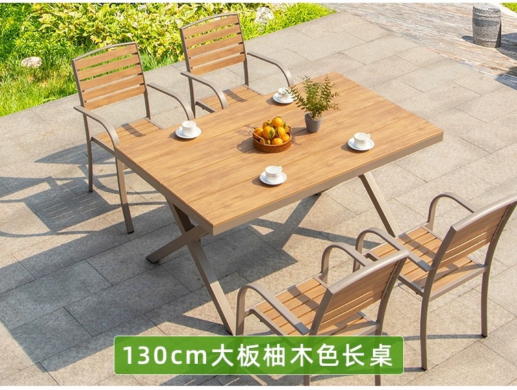 Открытый двор, пластиковый деревянный стул, садовая вилла, телескопический длинный стол, водонепроницаемый, простой, для отдыха на открытом воздухе, антикоррозийный деревянный стол и комбинация стульев