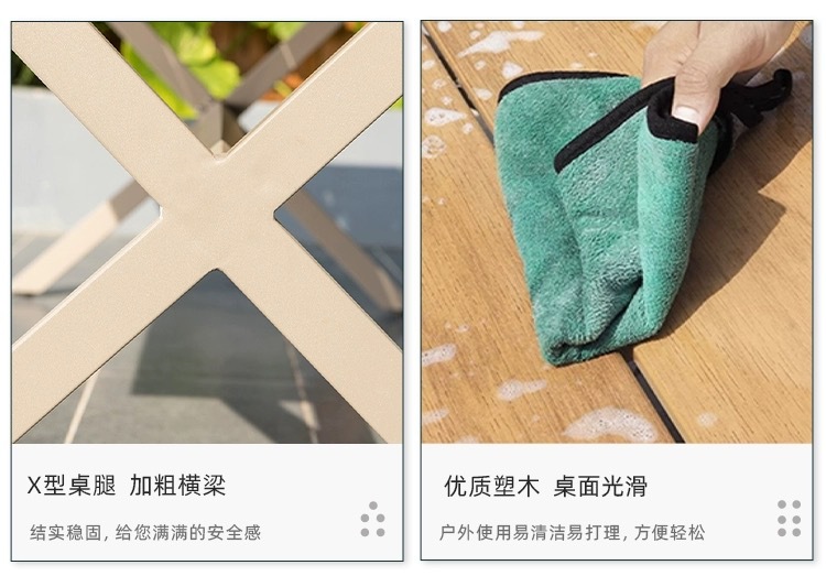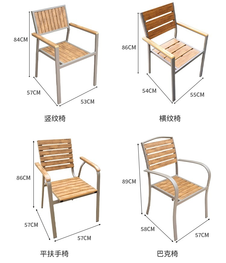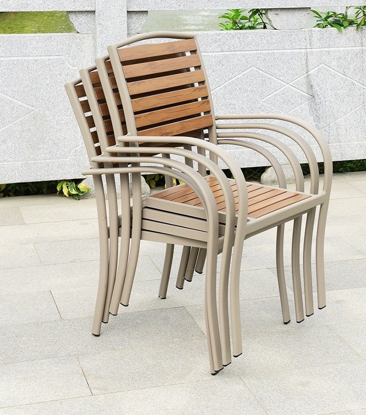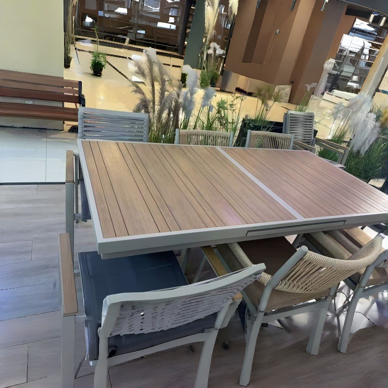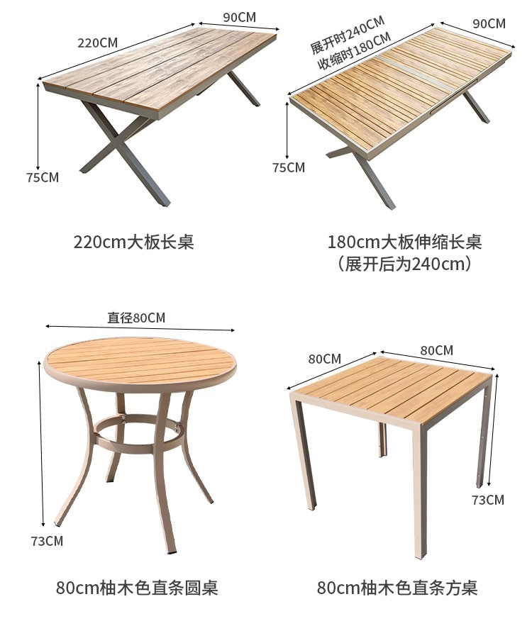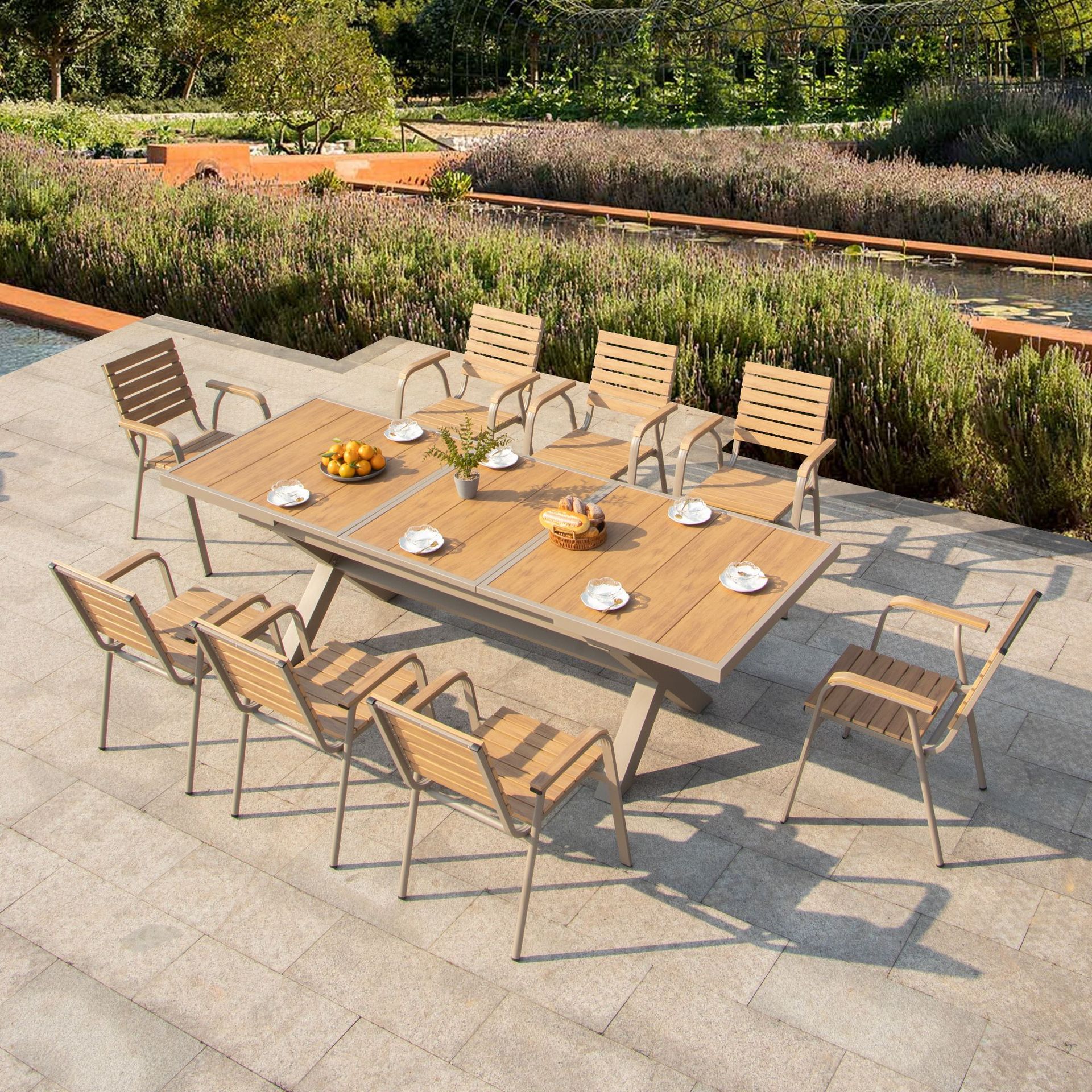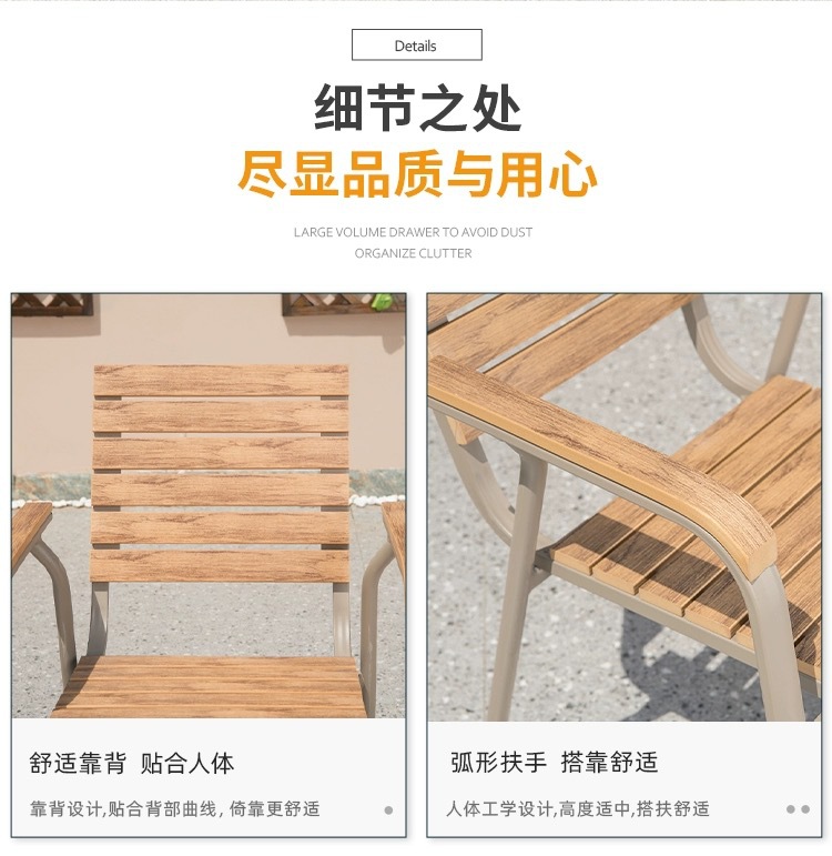 Открытый двор, пластиковый деревянный стул, садовая вилла, телескопический длинный стол, водонепроницаемый, простой, для отдыха на открытом воздухе, антикоррозийный деревянный стол и комбинация стульев