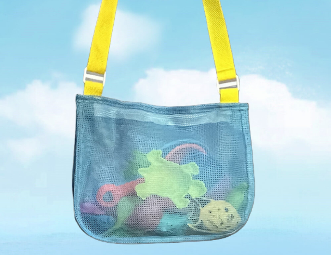 產品介紹:平常外出游玩,海边沙滩玩乐,小孩子好奇的心难免会收罗一大堆東西,挖沙工具、毛巾、衣服、玩具、都是散的拿著,非常不方便,这款沙滩收集袋通通把他們收納起來,而具网袋設計,把所有沙跟水都清除掉,冬天時還可以用於裝挖雪工具。