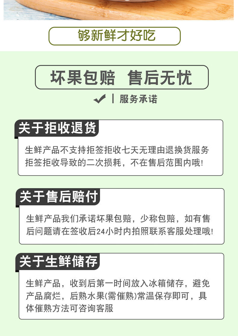 【售后】生鲜水果请及时取件,因个人原因超过24小时未及时取件而造成的坏果,不予售后!