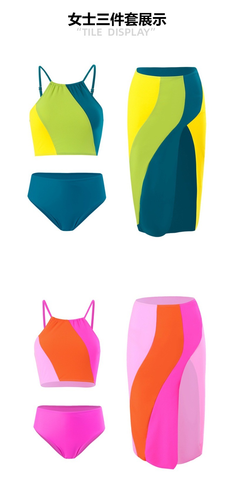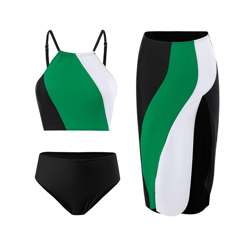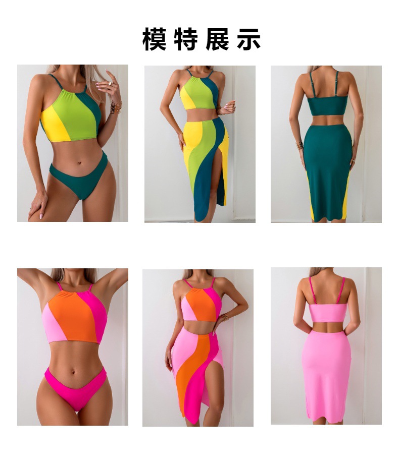 Новый европейский и американский купальник из трех частей Женская юбка 2024 нейлоновый цвет разделенные европейские и американские купальники завод спот оптом