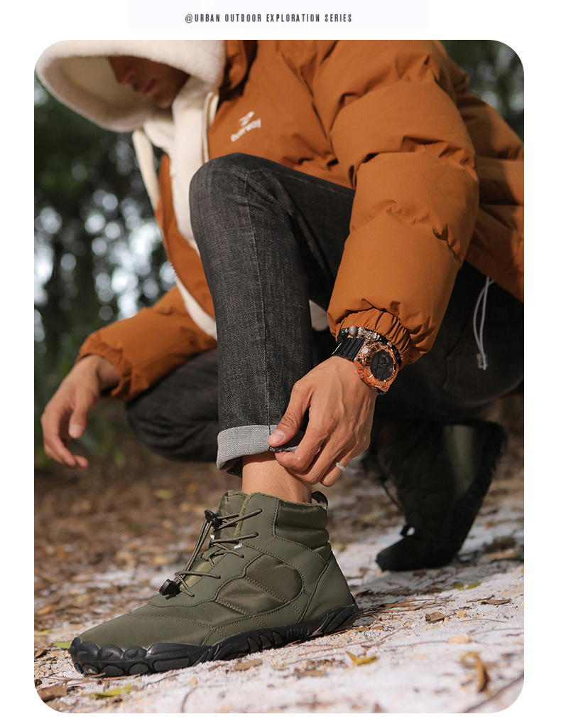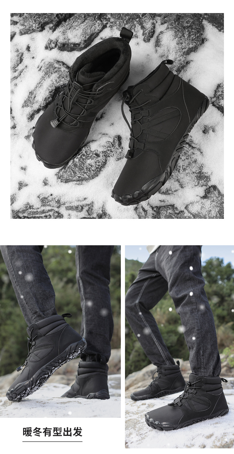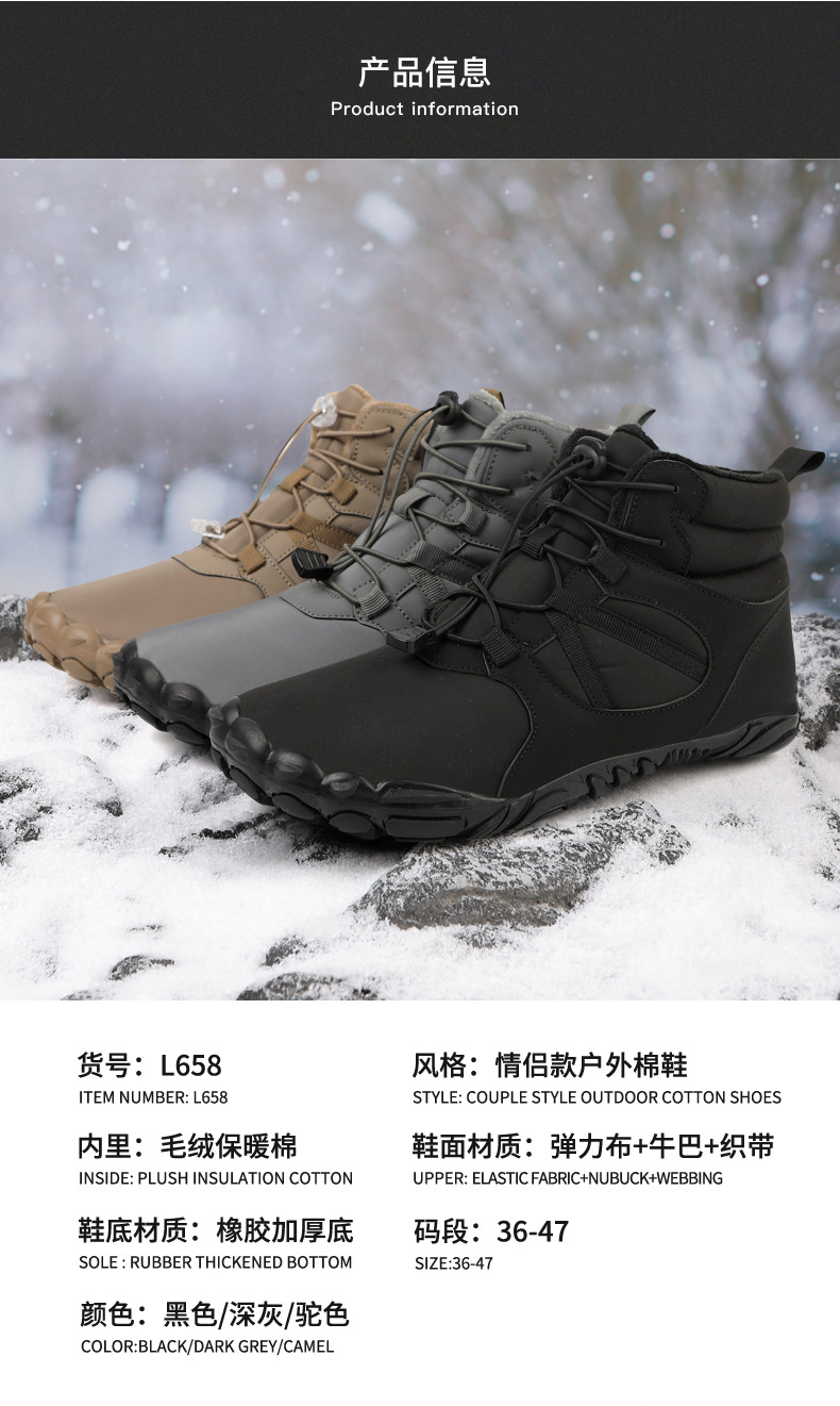 Зимние зимние сапоги, Мужская походная обувь, мужская походная обувь, утолщенная хлопчатобумажная обувь на флисовой подкладке, обувь с пятью пальцами, водонепроницаемая Нескользящая спортивная обувь больших размеров