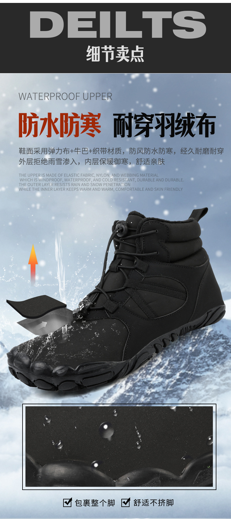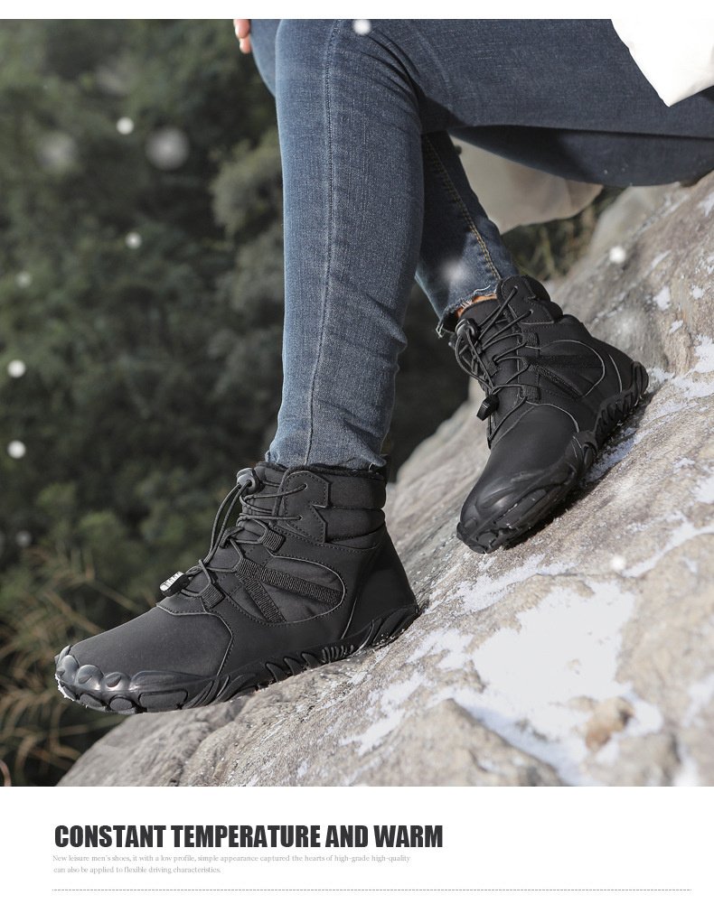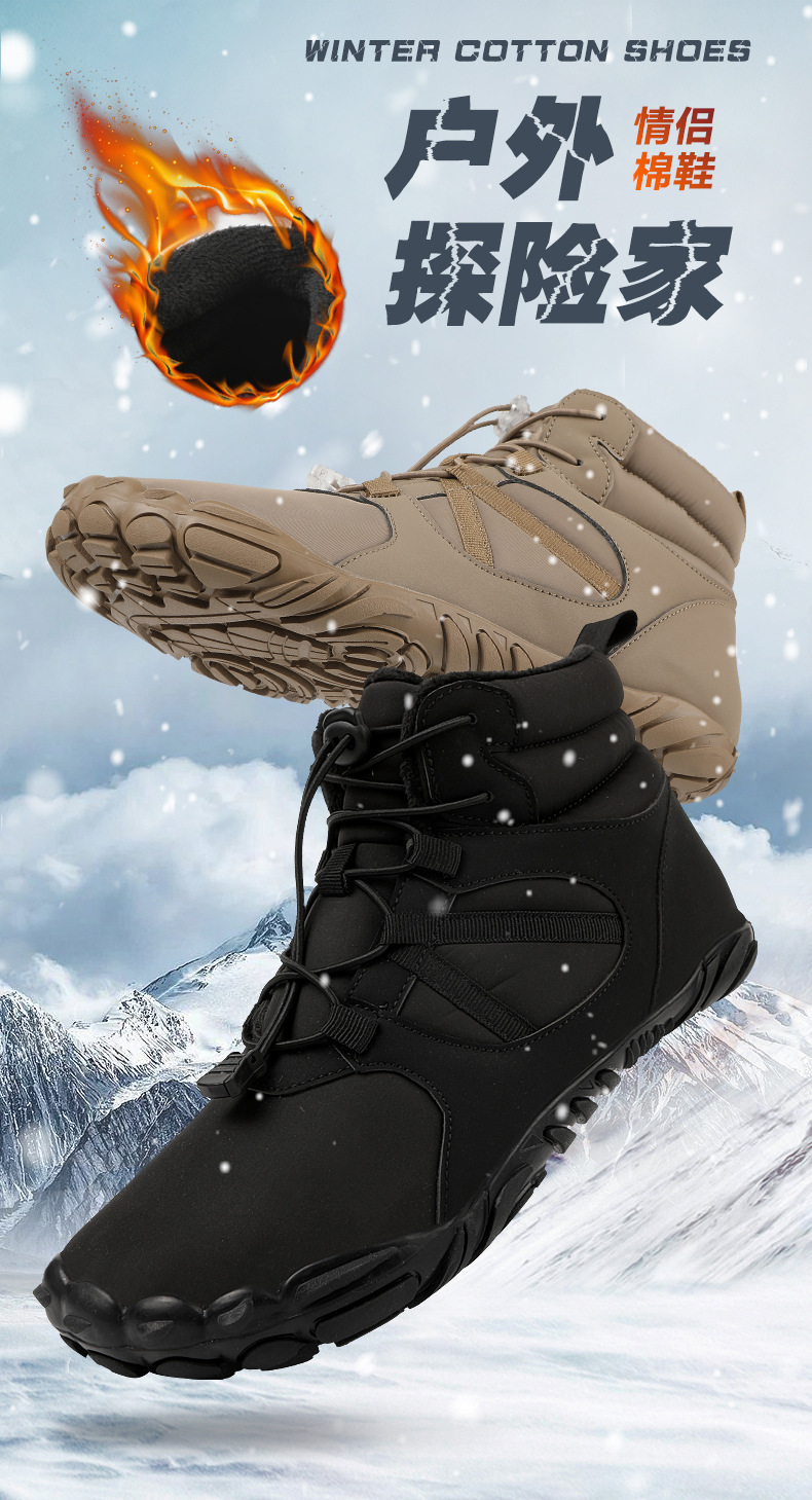 Зимние зимние сапоги, Мужская походная обувь, мужская походная обувь, утолщенная хлопчатобумажная обувь на флисовой подкладке, обувь с пятью пальцами, водонепроницаемая Нескользящая спортивная обувь больших размеров